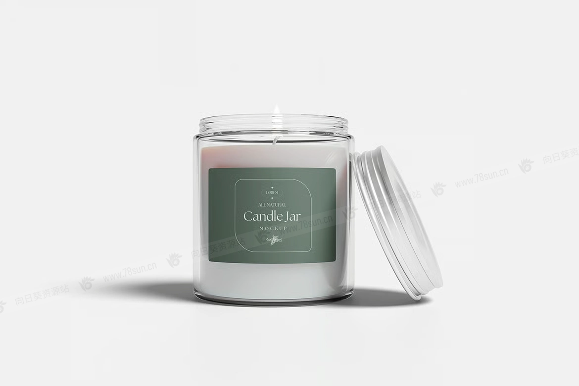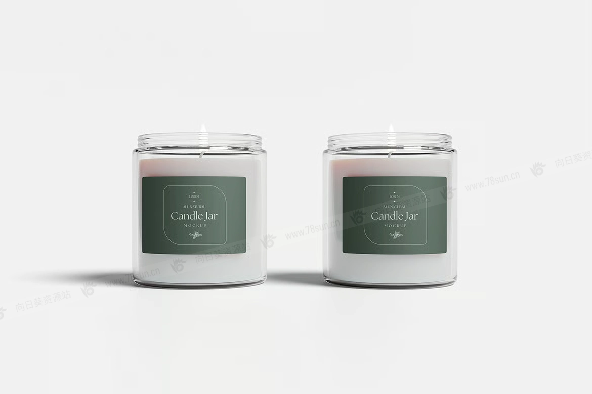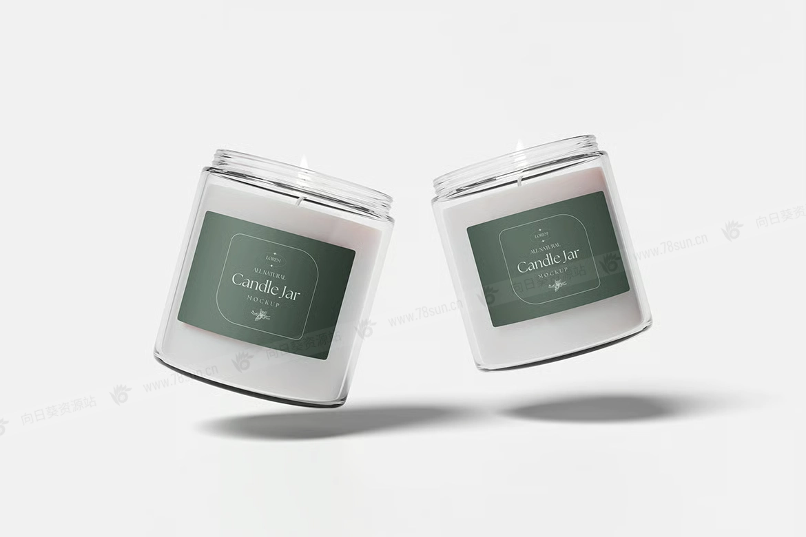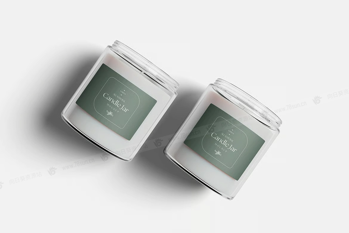蜡烛香薰罐玻璃罐品牌VI效果图展示智能贴图psd设计样机。你可以用智能物体功能轻松快速地替换设计。提供PSD Photoshop格式,并具备智能对象功能,帮助你在几秒钟内用自己的设计替换现有设计。