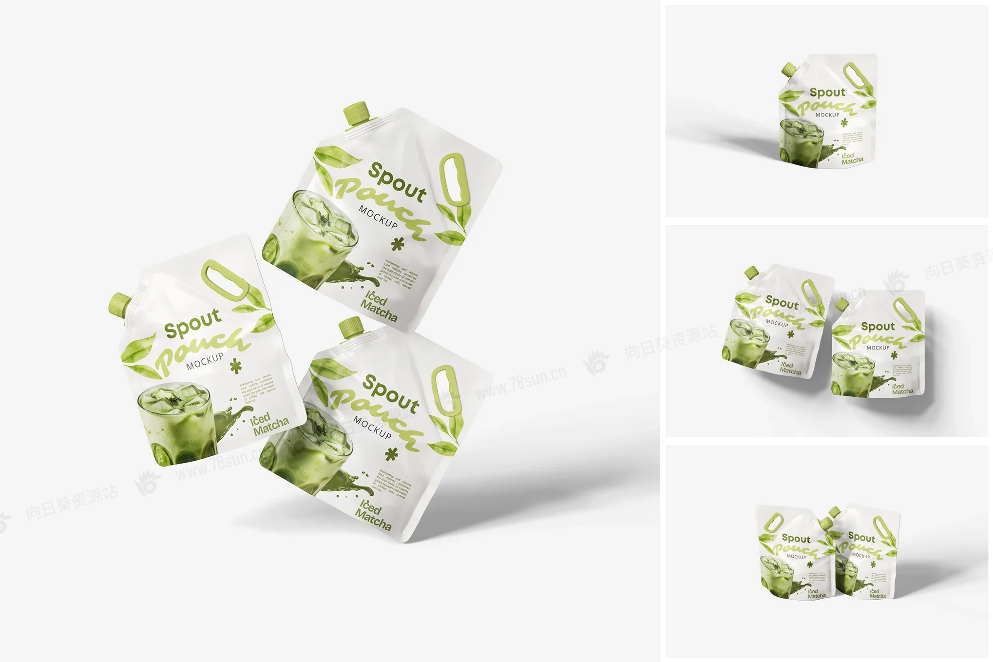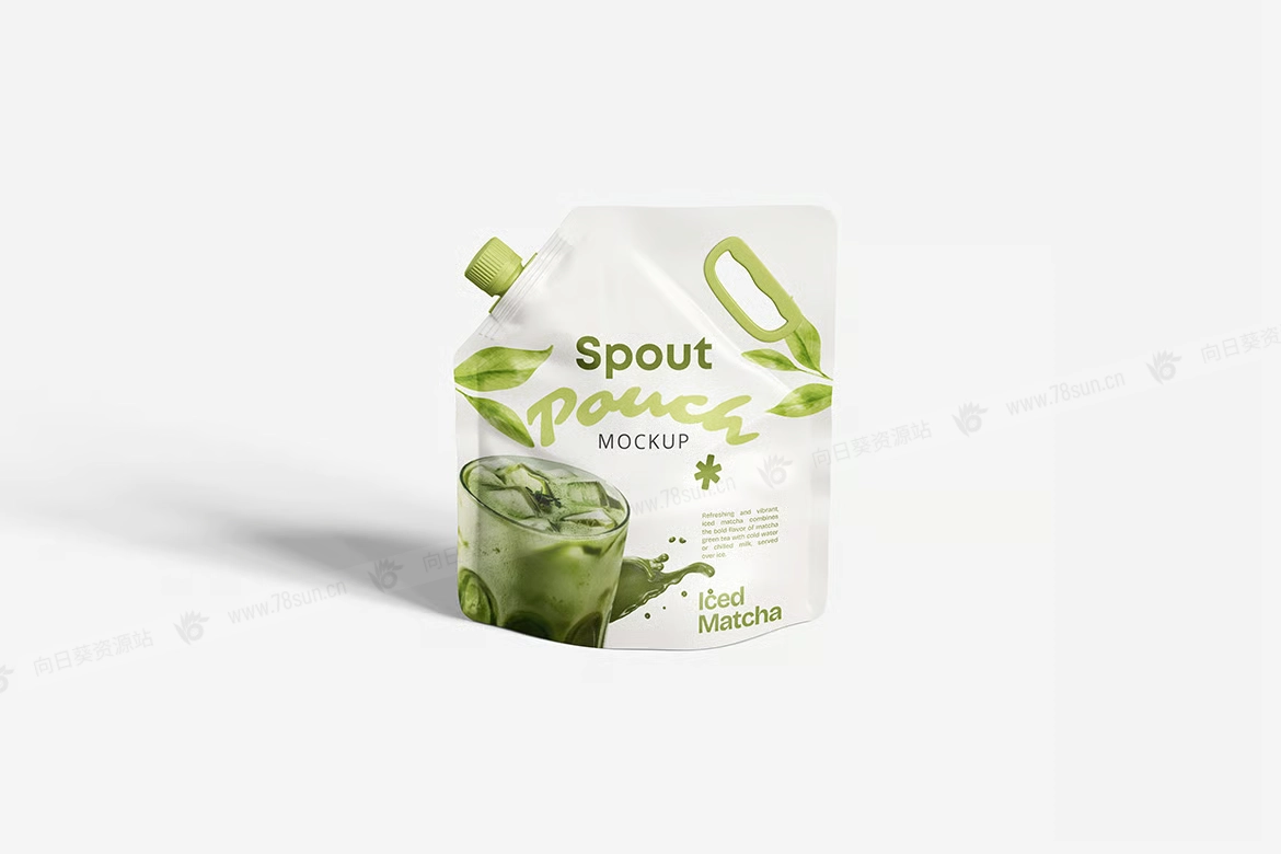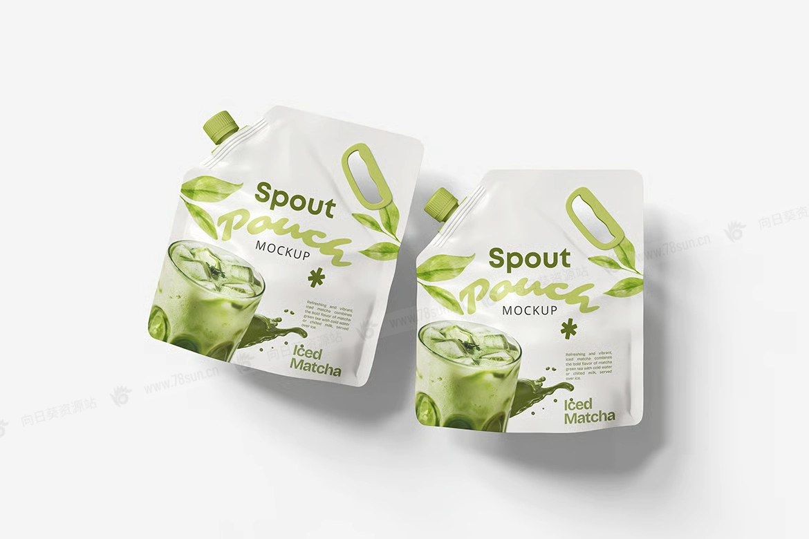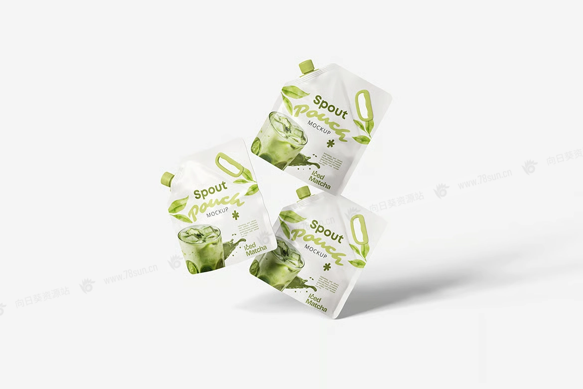 食品化妆品吸嘴袋品牌VI效果图展示智能贴图psd设计样机。用智能对象轻松替换你的设计,双击智能图层,复制粘贴你的艺术作品,保存完毕!