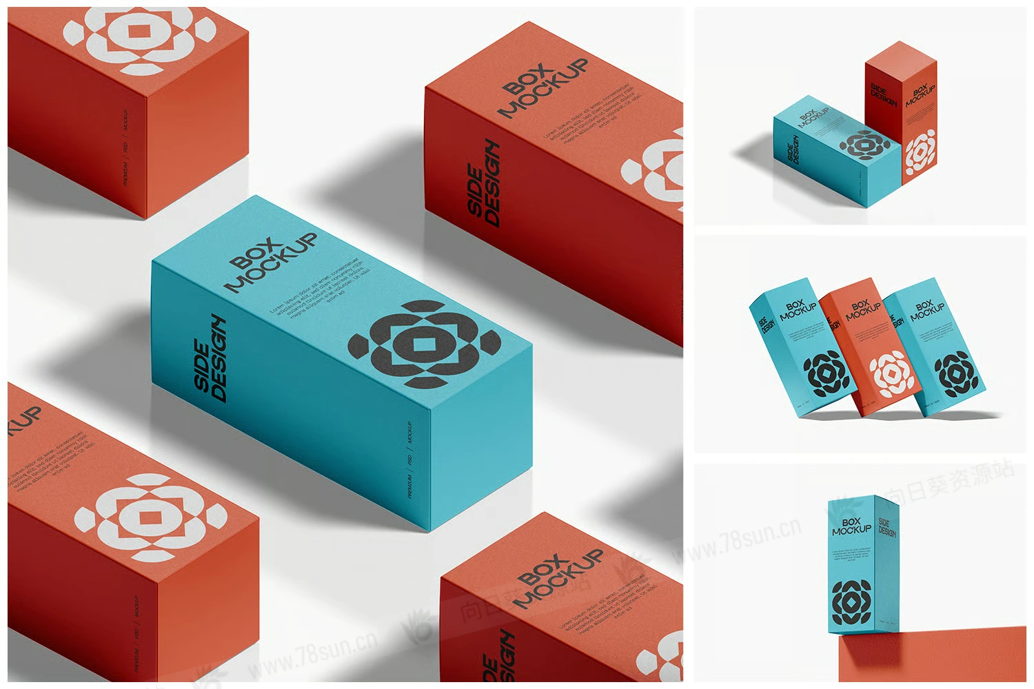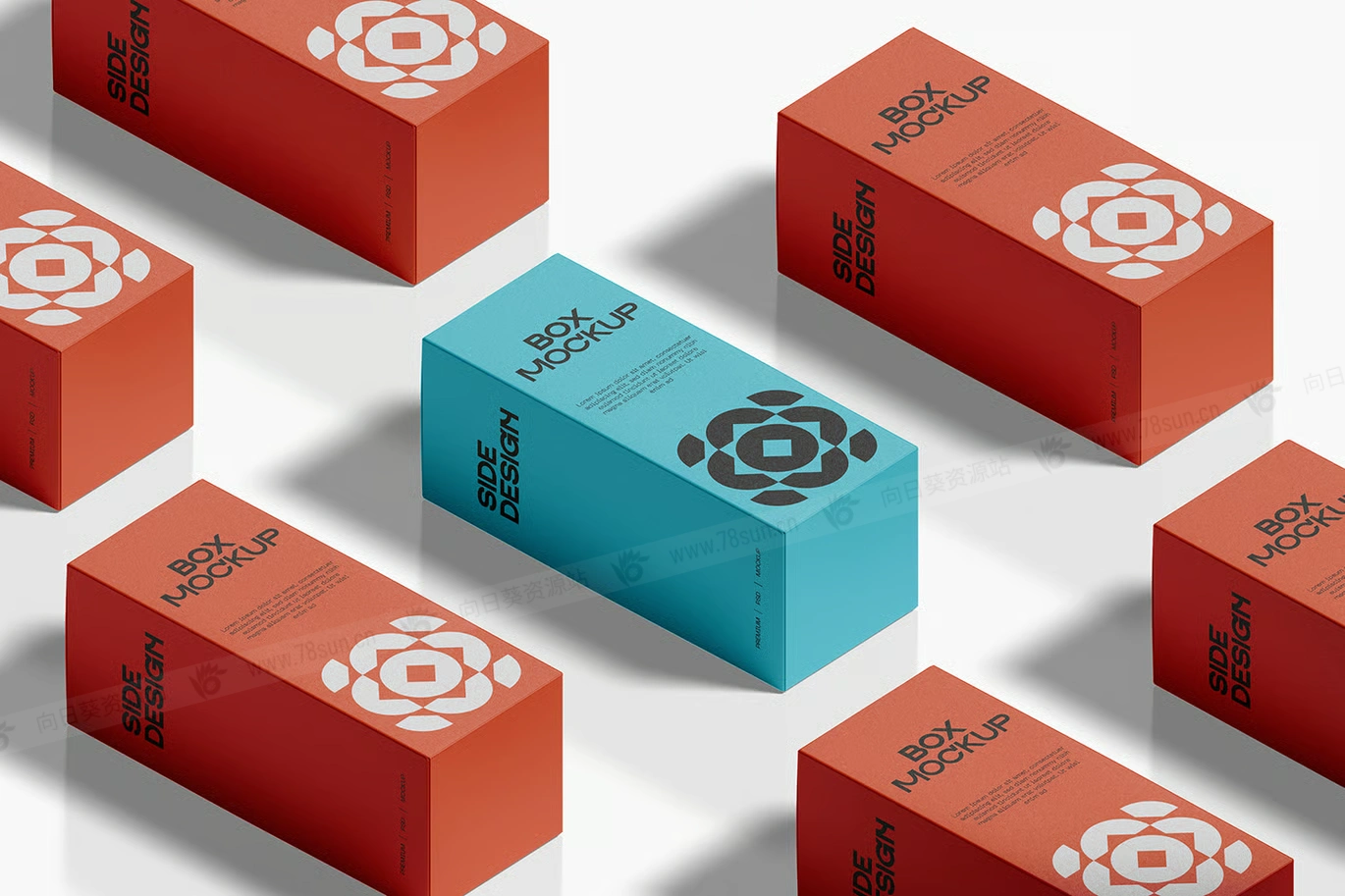 长方形包装纸盒品牌VI效果图展示智能贴图psd设计样机,