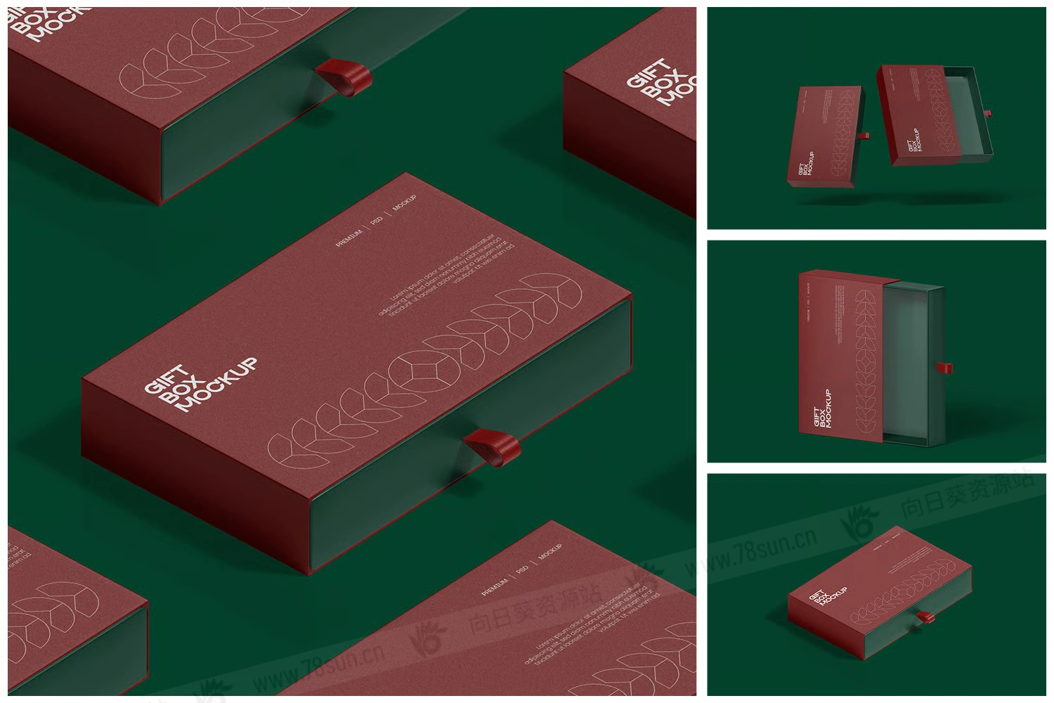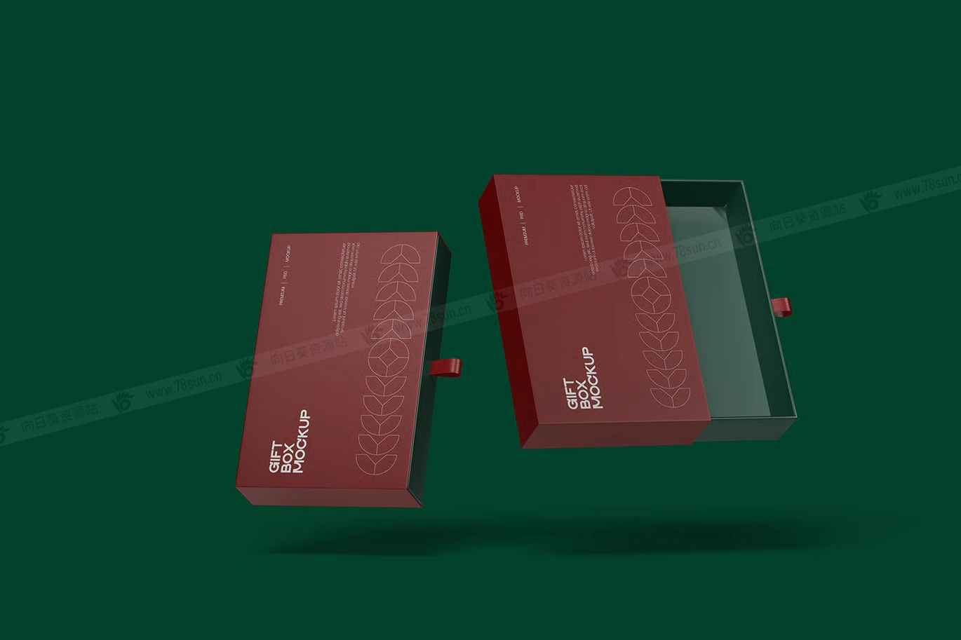 滑盒滑动抽屉礼品纸盒子品牌VI效果图展示智能贴图psd设计样机,