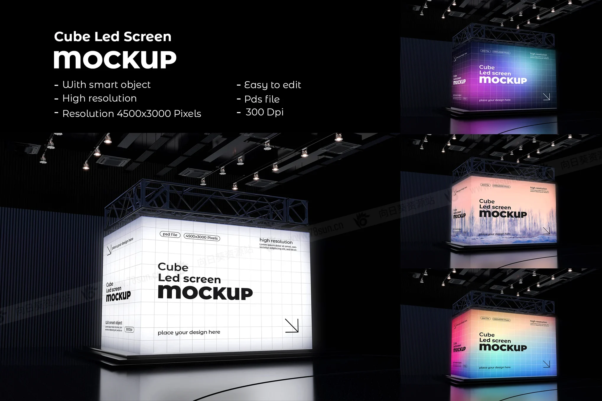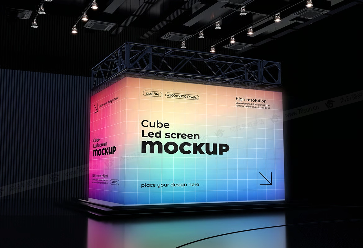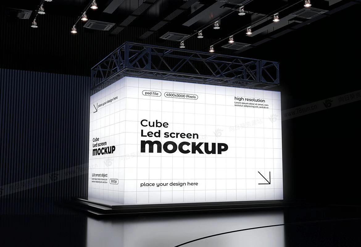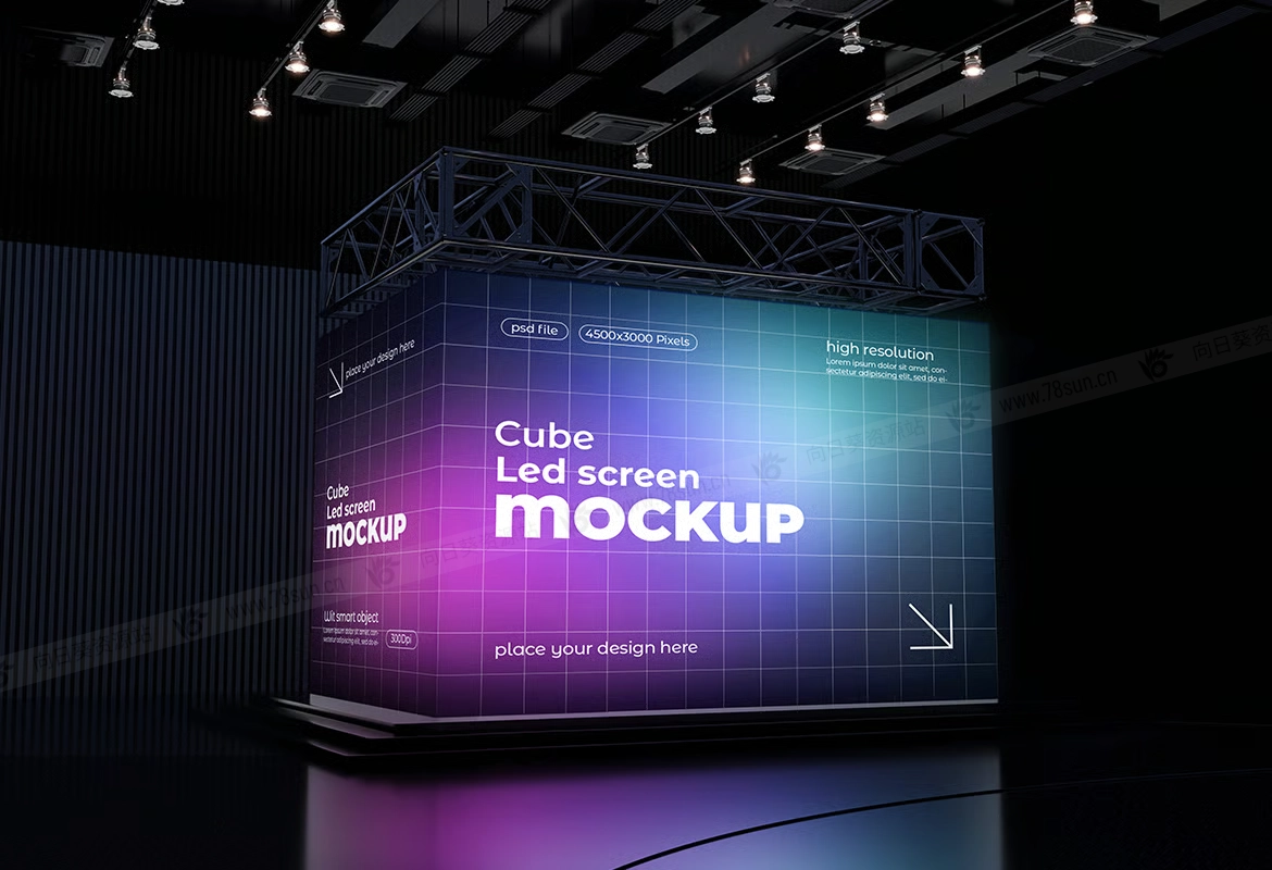 立方体LED屏幕品牌VI效果图展示智能贴图psd设计样机,并通过Photoshop中的智能对象轻松展示。 而且看起来很棒。 你只需要复制你的作品,粘贴并保存。很快就完成了。