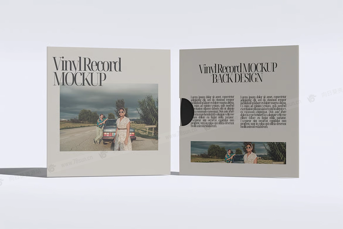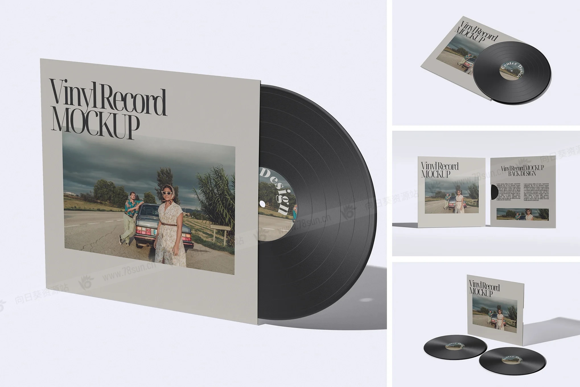 黑胶唱片品牌VI效果图展示智能贴图psd设计样机。这个模型包含4个带有分层良好的PSD文件的物品,并且还采用了智能对象功能,这意味着你可以在几秒钟内轻松快速地用自己的设计替换当前设计。