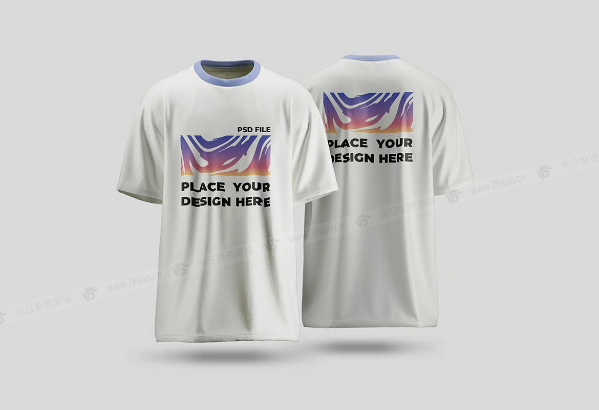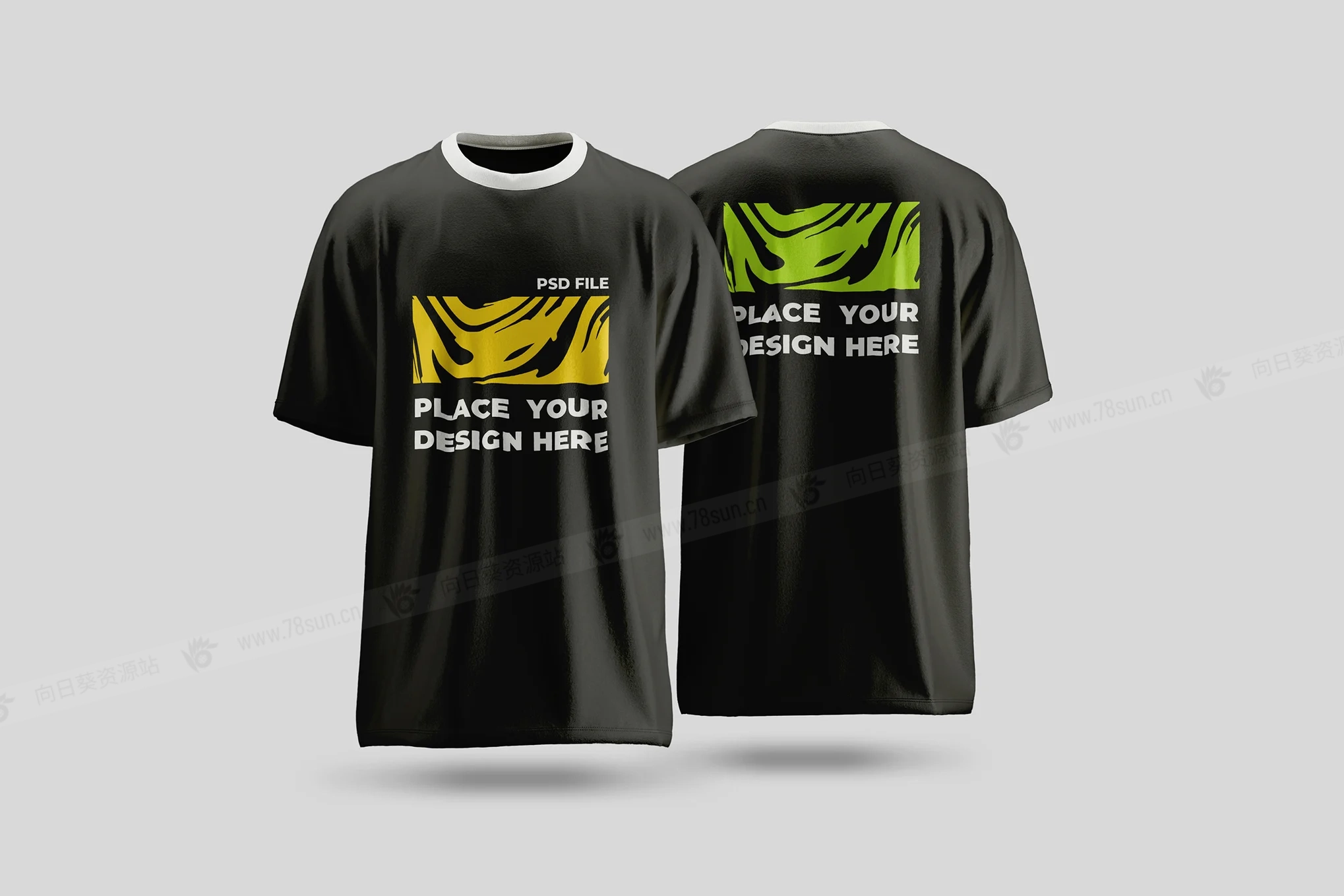 圆领短袖T恤服装品牌VI效果图展示智能贴图psd设计样机,