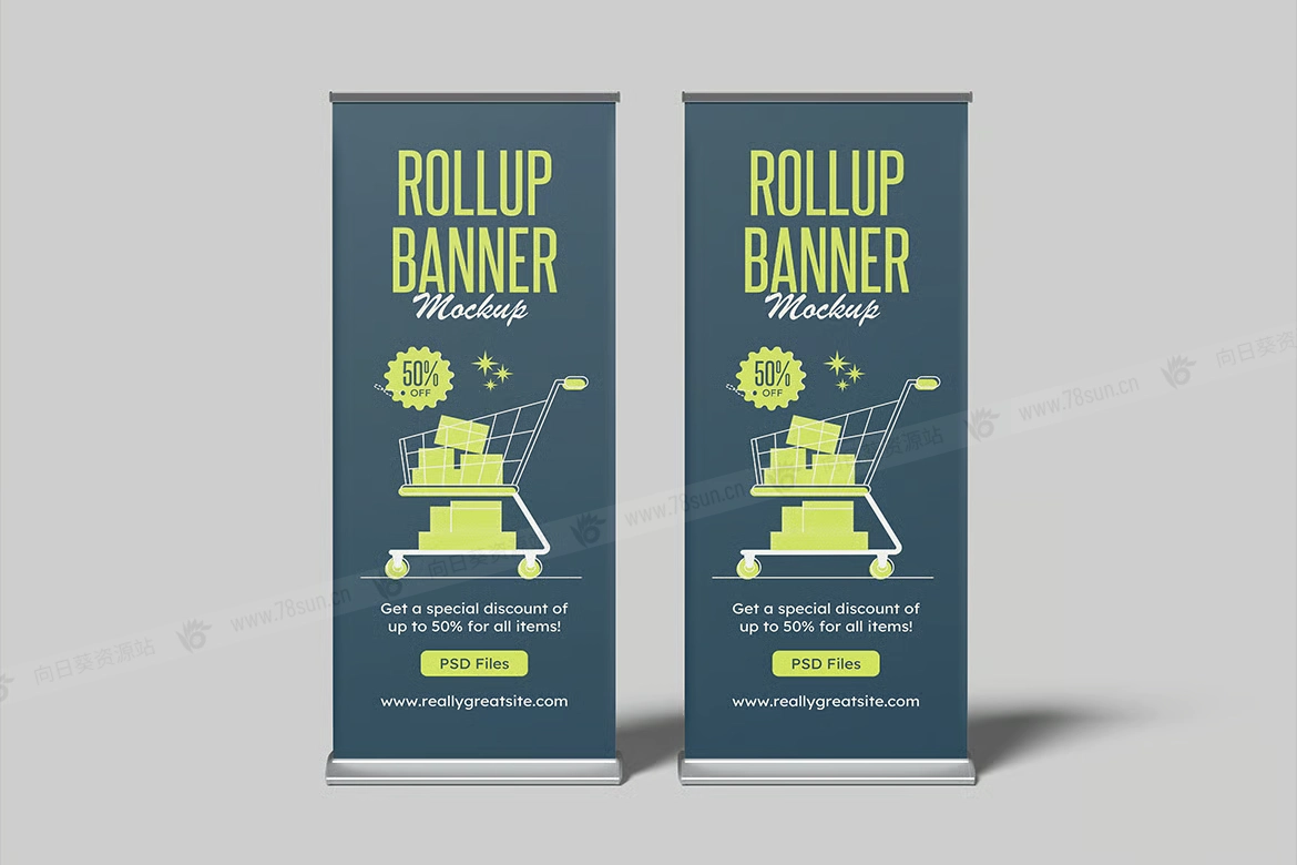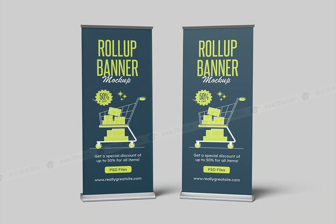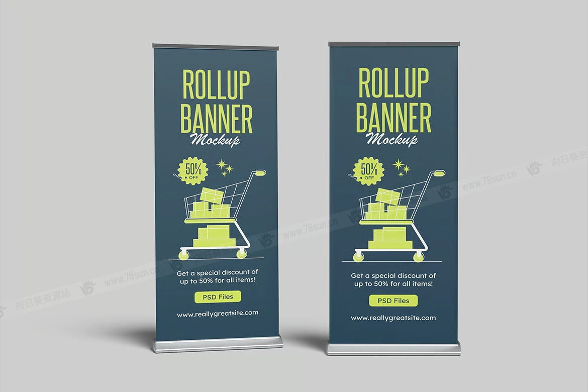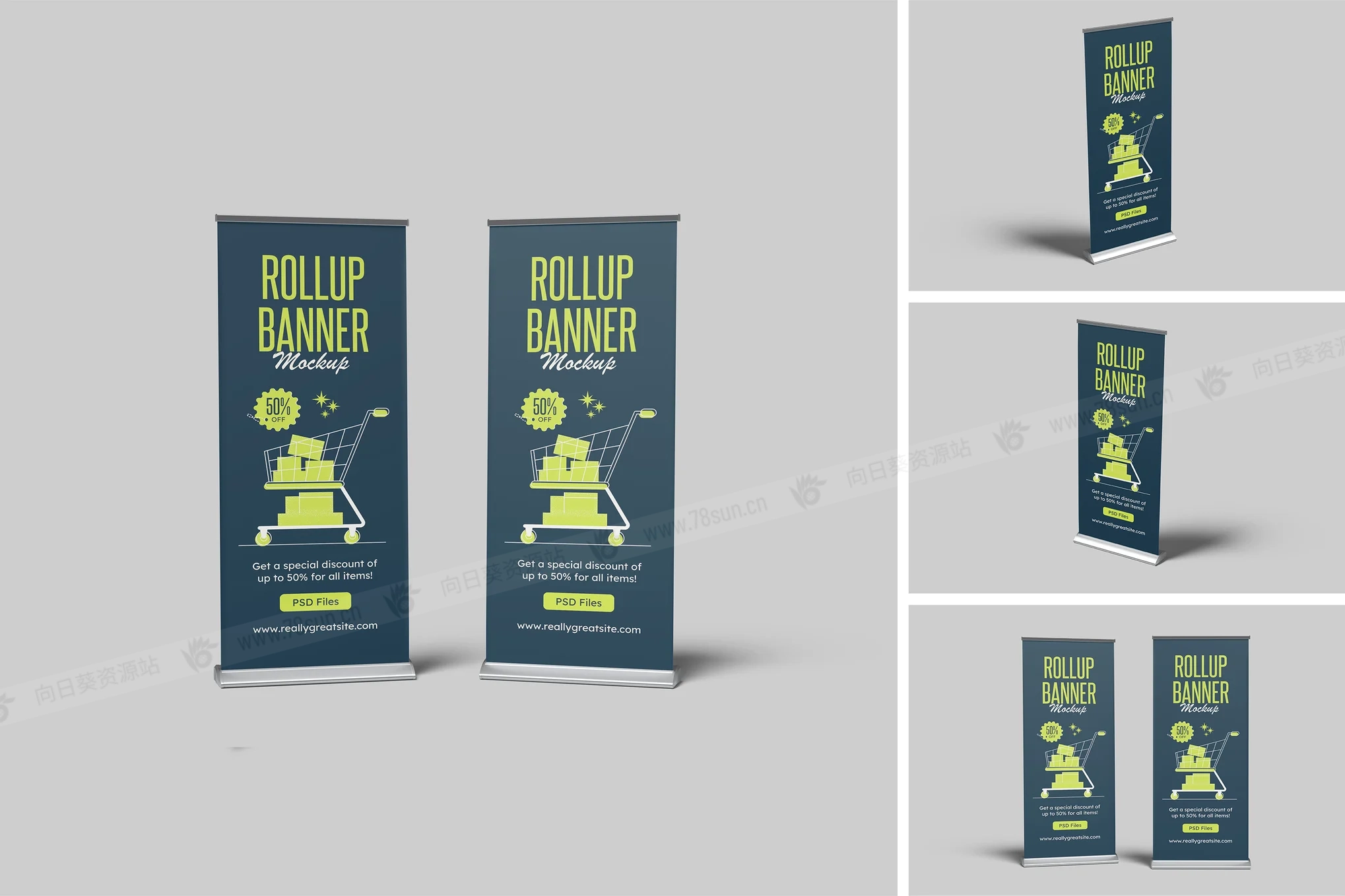 展架易拉宝品牌VI效果图展示智能贴图psd设计样机,该模型包含06个配有分层良好的PSD文件,并且还采用了智能对象功能,这意味着你可以在几秒内轻松快速地用自己的设计替换当前设计。