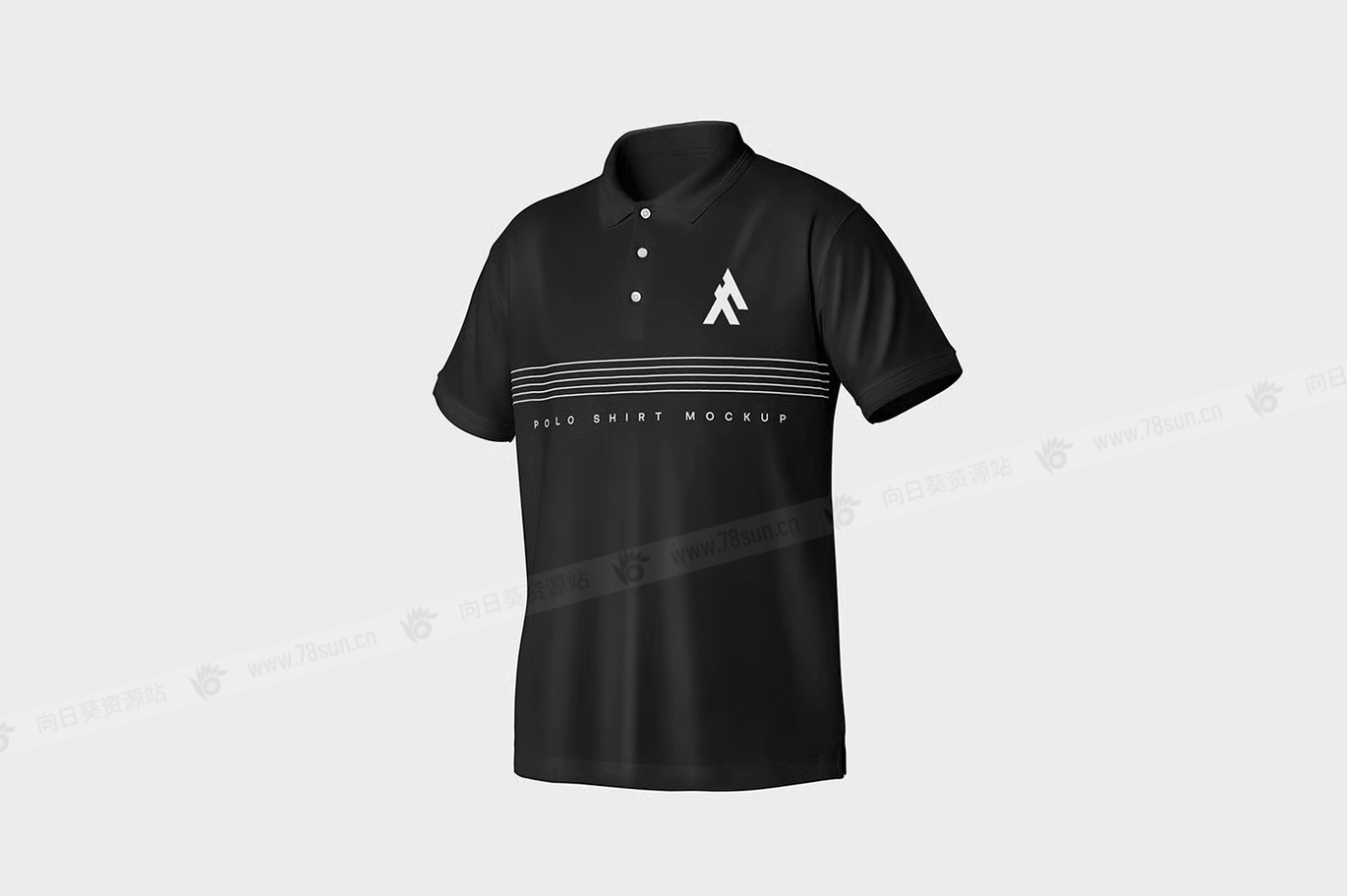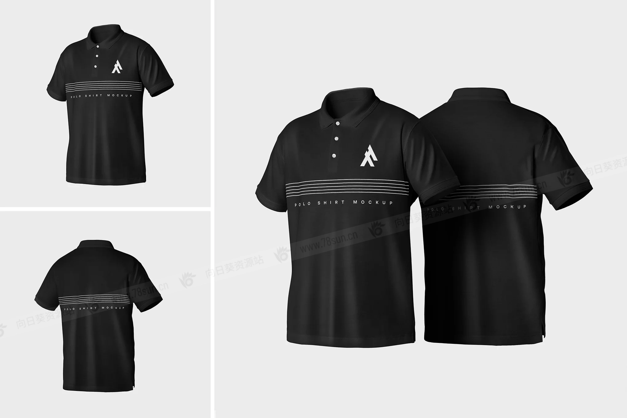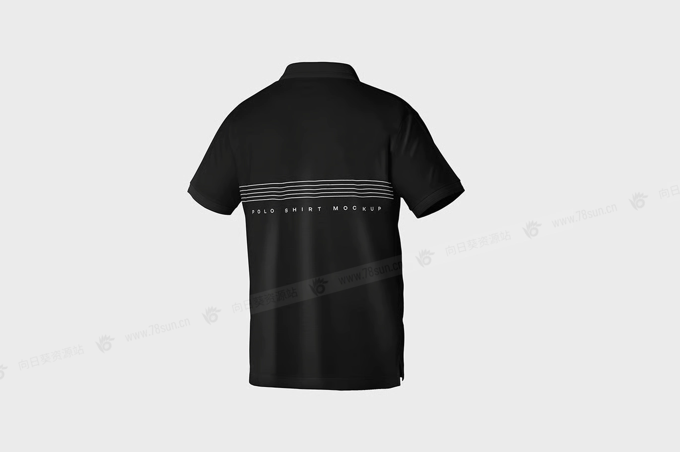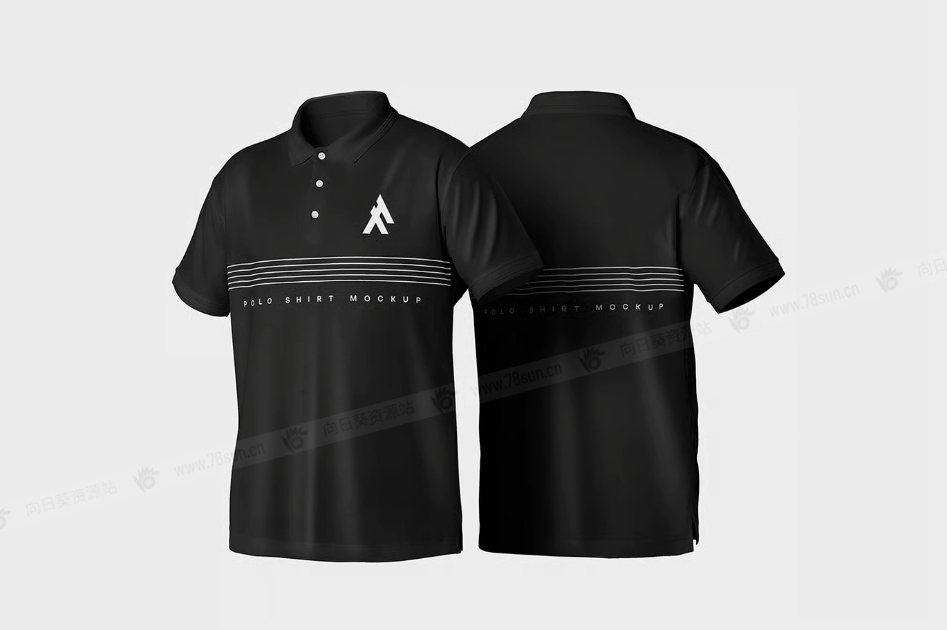 Polo衫T恤服装品牌VI效果图展示智能贴图psd设计样机。这款Polo衫模型拥有逼真的面料纹理、自然褶皱和便捷的智能对象编辑功能。