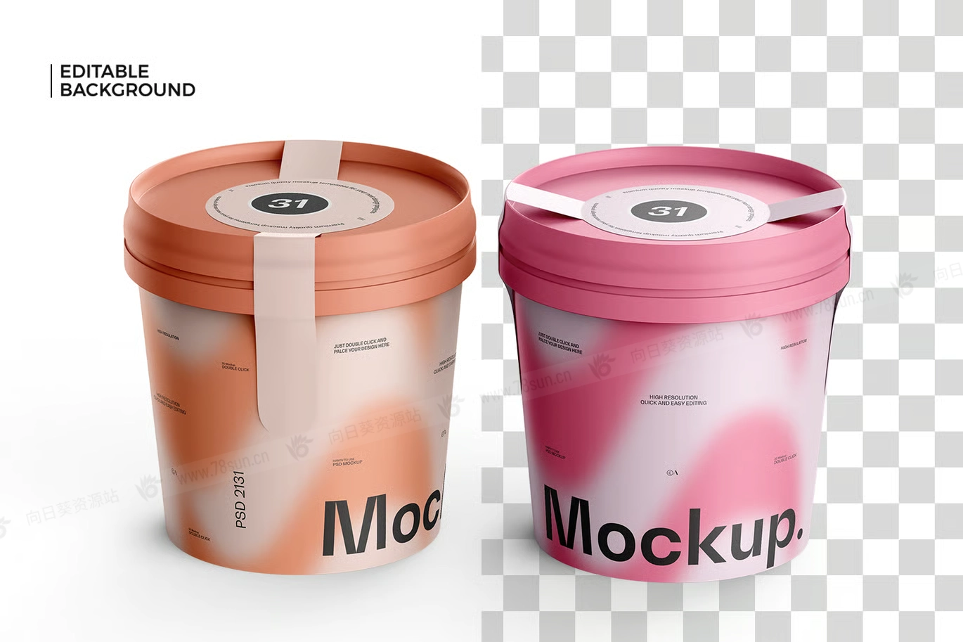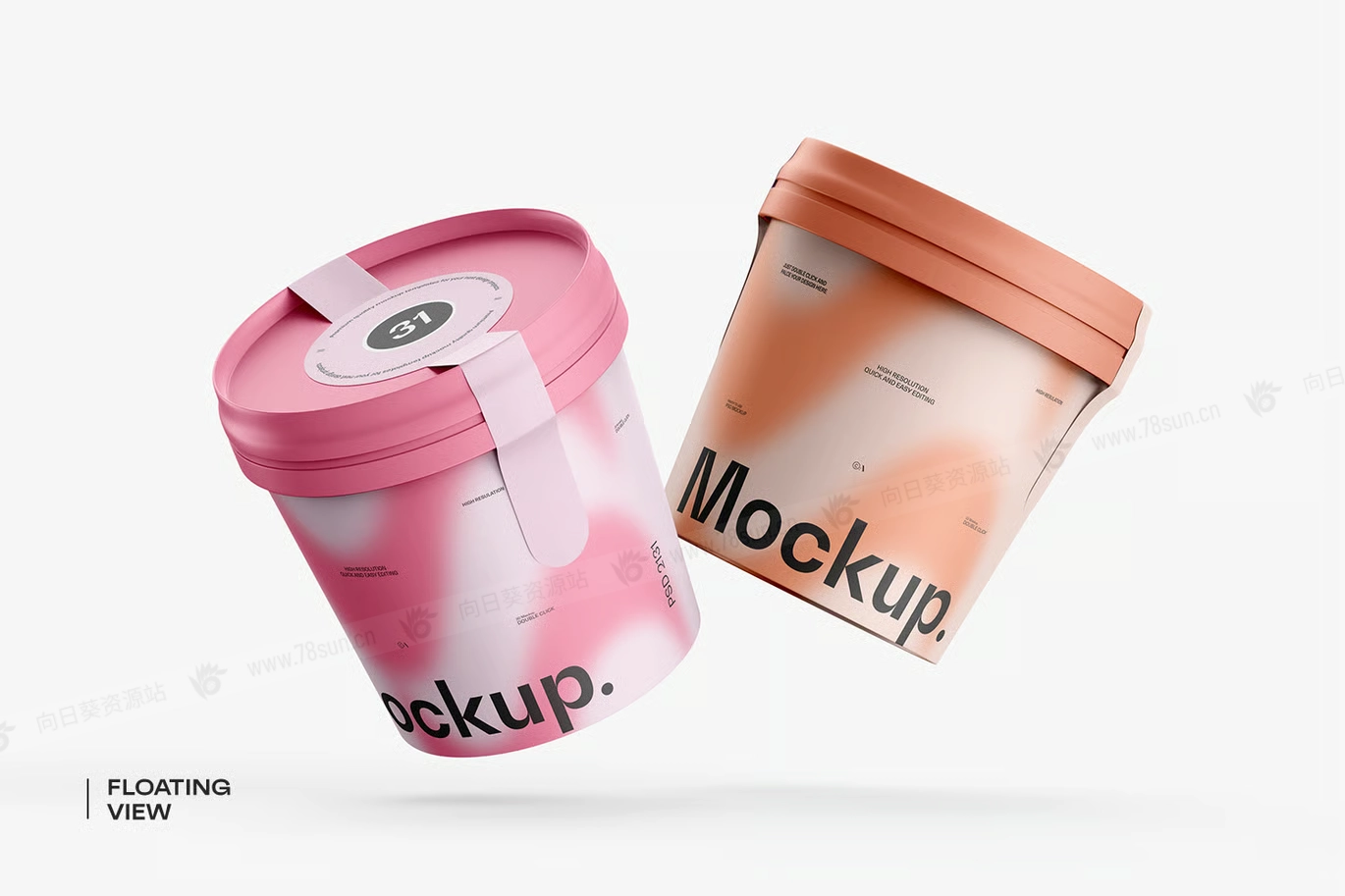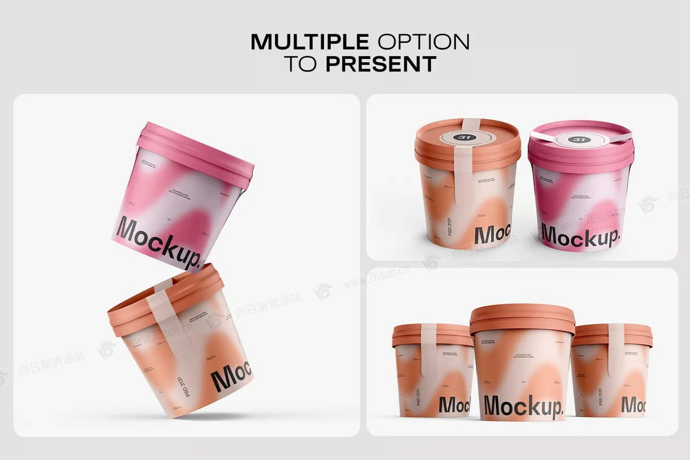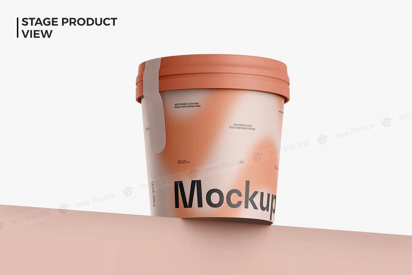 桶装冰淇淋纸杯品牌VI效果图展示智能贴图psd设计样机。 它为Photoshop设计,包含智能图层,方