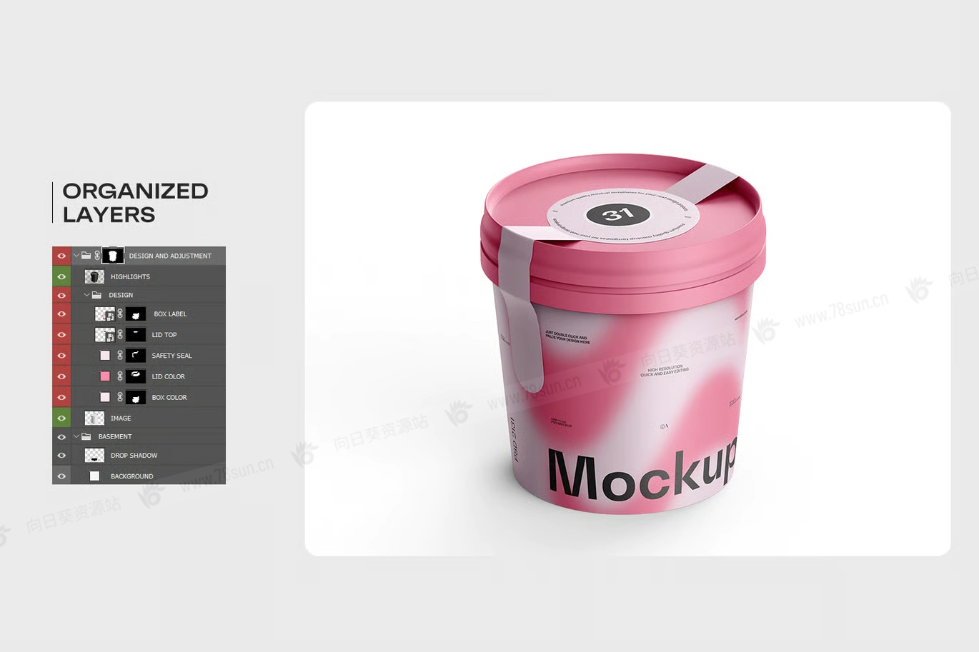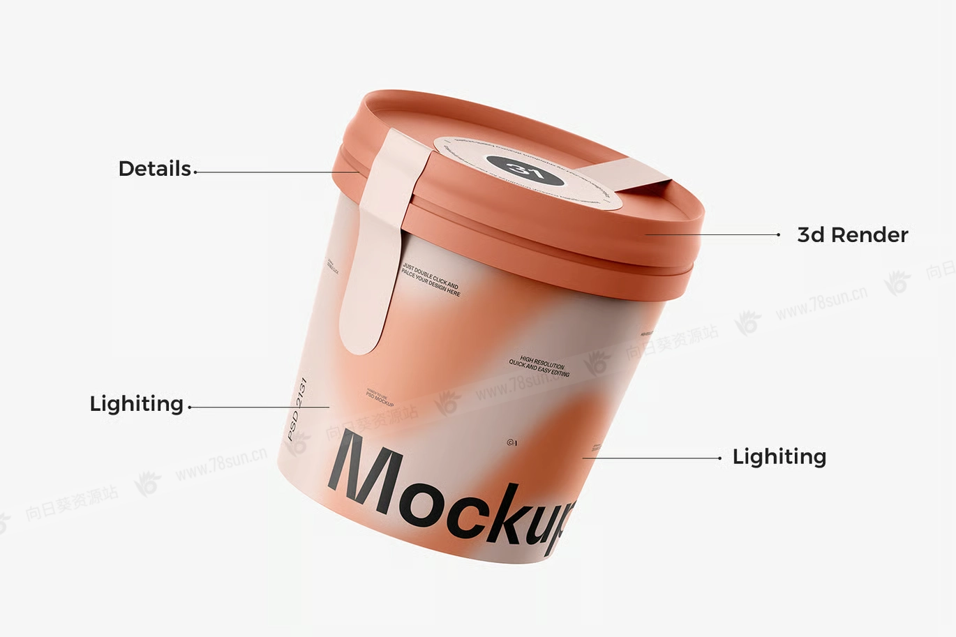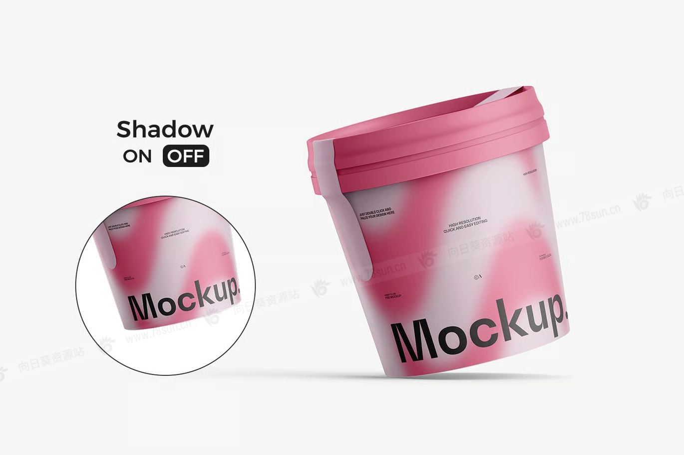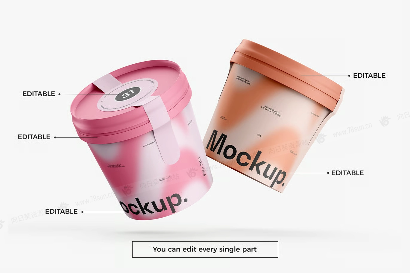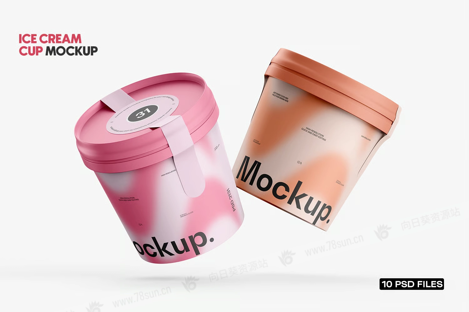 桶装冰淇淋纸杯品牌VI效果图展示智能贴图psd设计样机。 它为Photoshop设计,包含智能图层,方