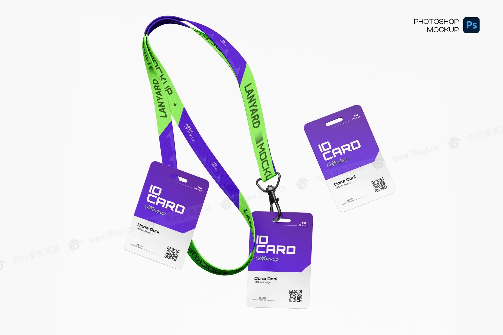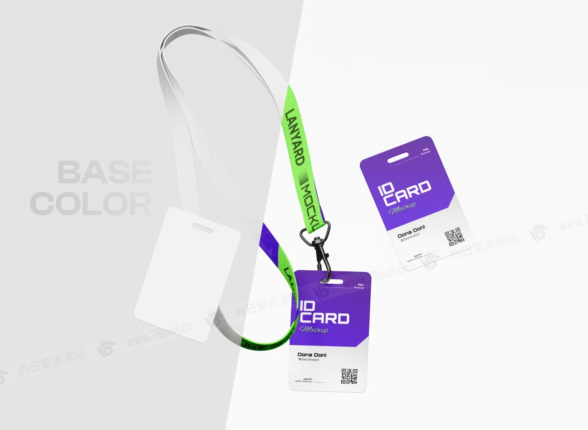 带挂绳工作证工卡ID卡门禁卡品牌VI效果图展示智能贴图psd设计样机。文件包含颜色对象和背景的独立图层。标签的智能图层帮助你应用设计,且易于使用。