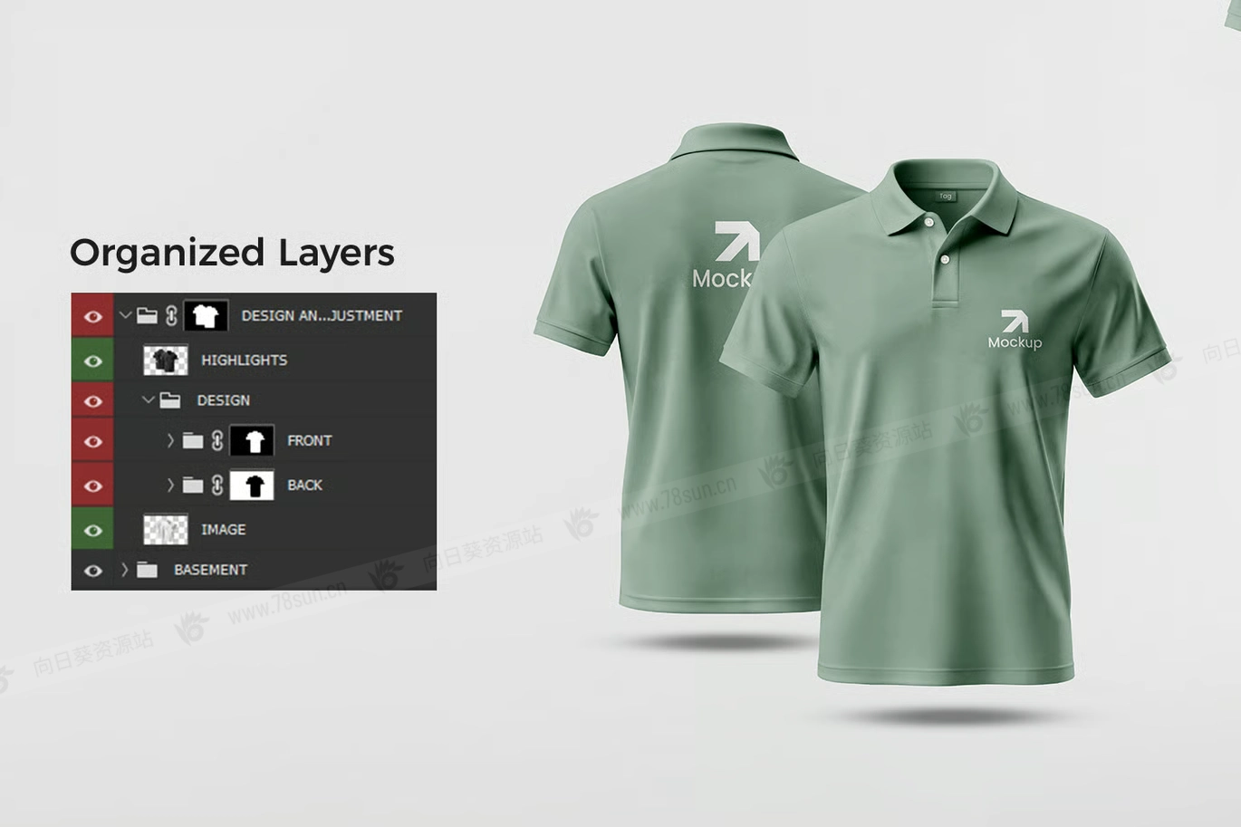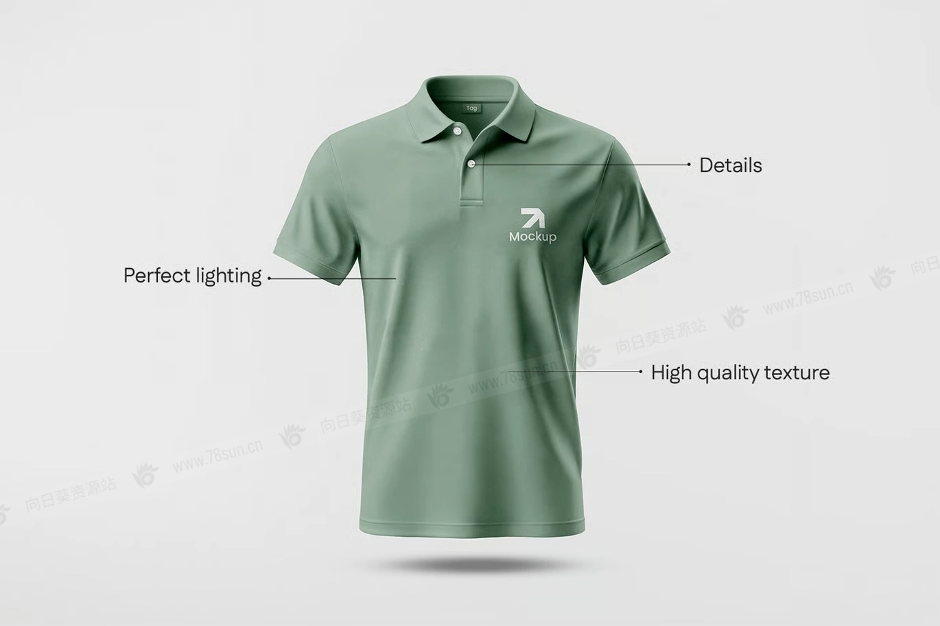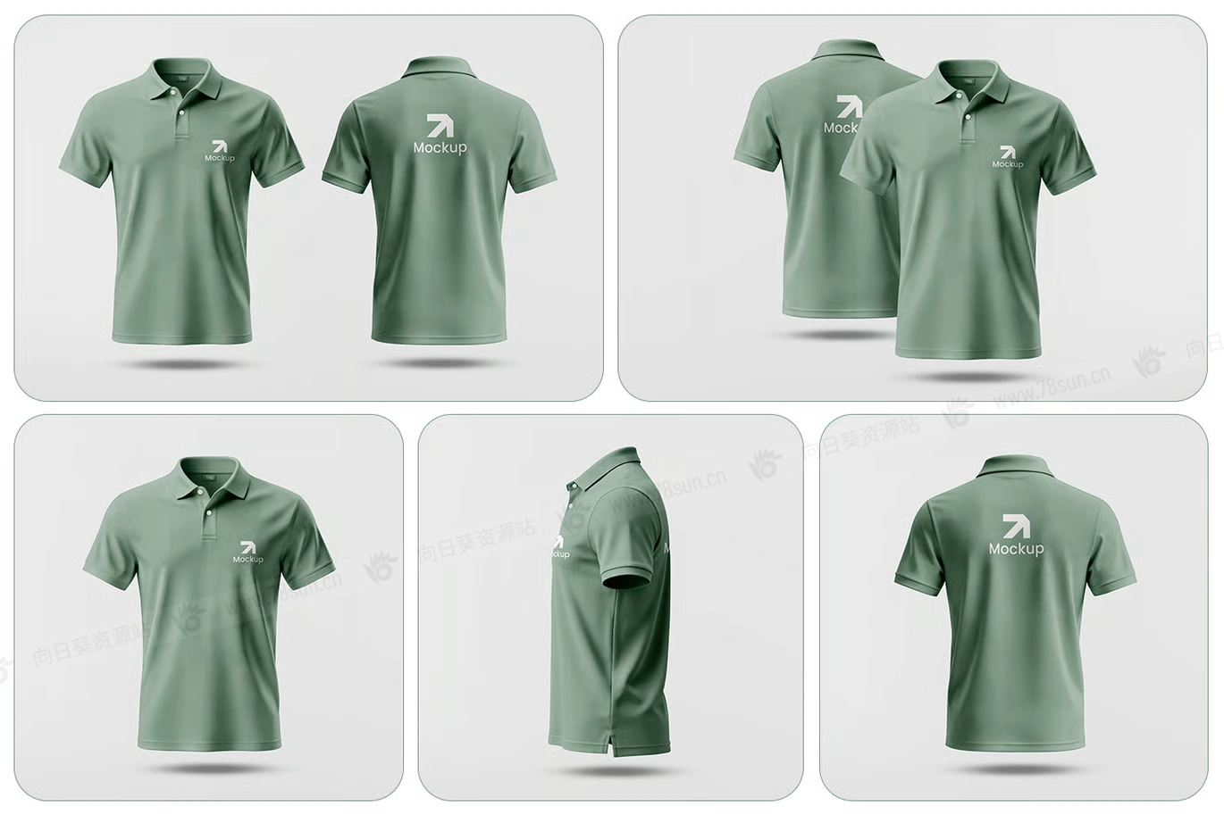 Polo衫T恤服装品牌VI效果图展示智能贴图psd设计样机,以组织良好的PSD格式呈现,包含智能对象图层,使编辑变得快速高效,