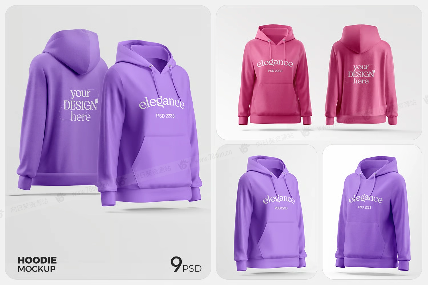 女性连帽衫卫衣品牌VI效果图展示智能贴图psd设计样机,这个可编辑的PSD模板每次都能带来高质量的呈现。 凭借智能物品层次、完美的面料质感和逼真的光影,