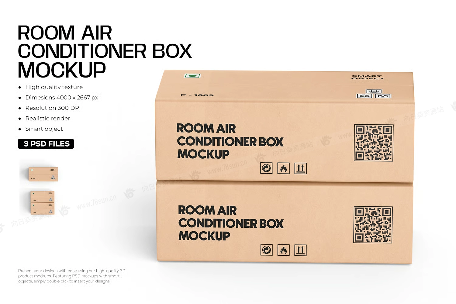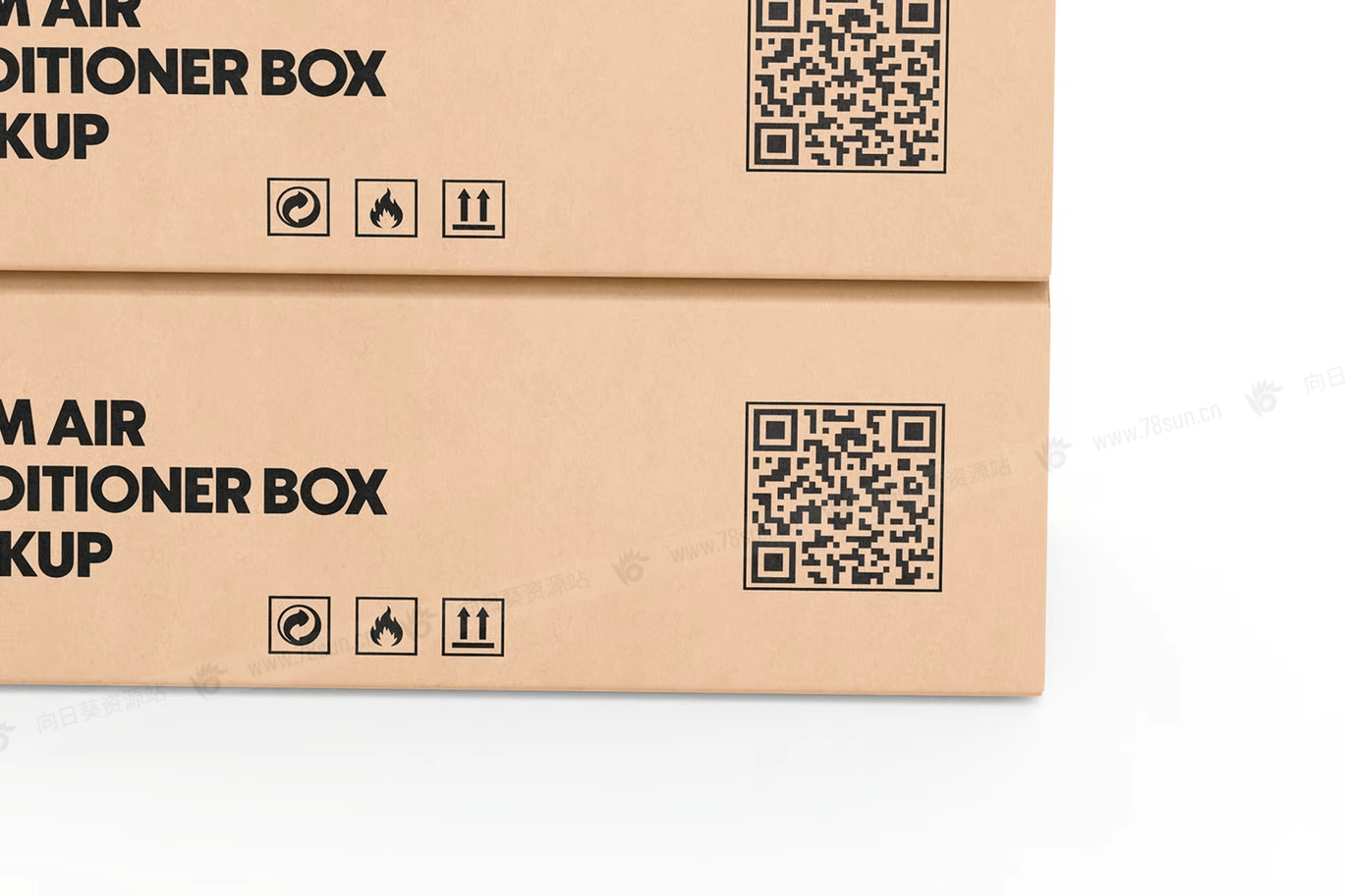 纸板箱运输包装纸盒品牌VI效果图展示智能贴图psd设计样机。凭借精细的3D渲染和可定制的智能物体图层,你可以轻松地将品牌、标志和包装设计添加到纸箱中
