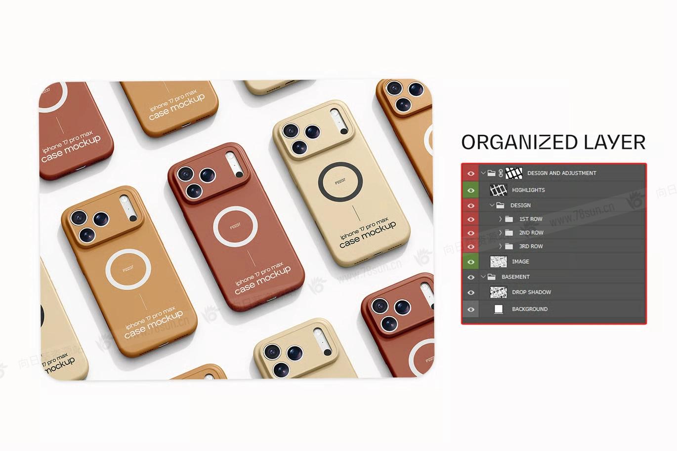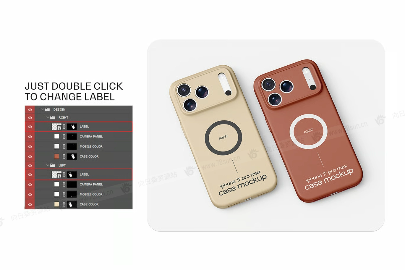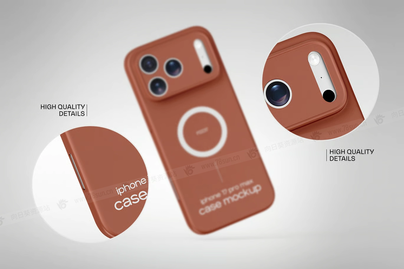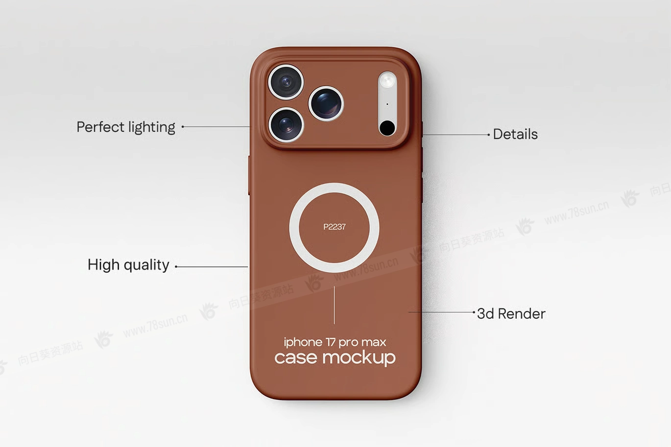 高分辨率iPhone 17苹果保护壳手机壳品牌VI效果图展示智能贴图psd设计样机,完美融合了逼真的光影、高端质感和简约呈现
