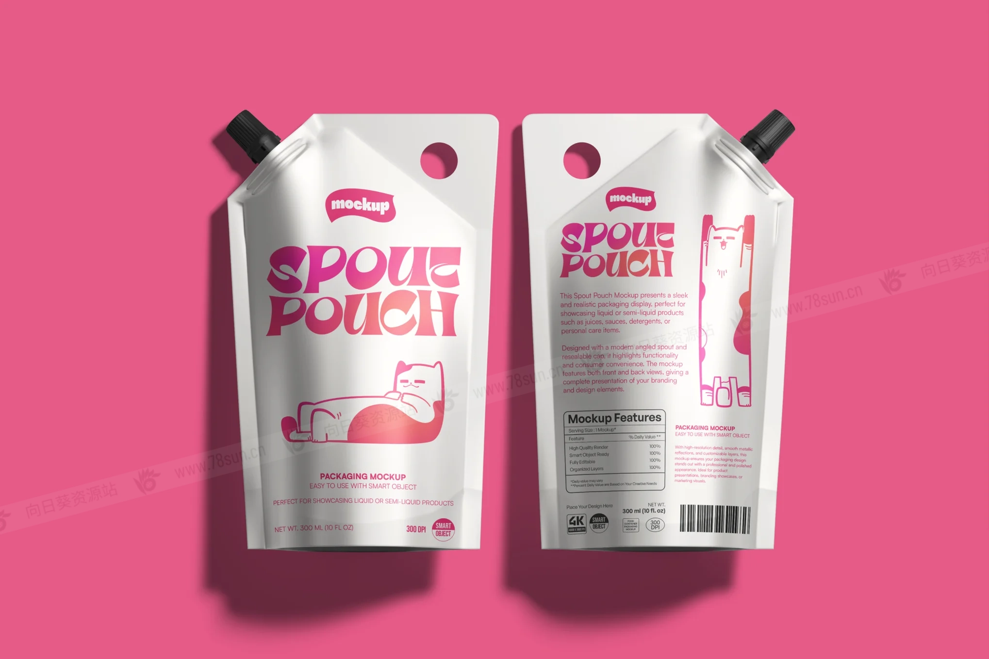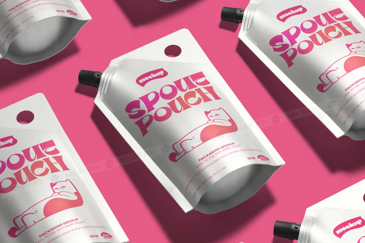 食品化妆品吸嘴袋品牌VI效果图展示智能贴图psd设计样机,通过易于编辑的图层,你可以完全个性化设计、颜色和背景,以满足项目需求。