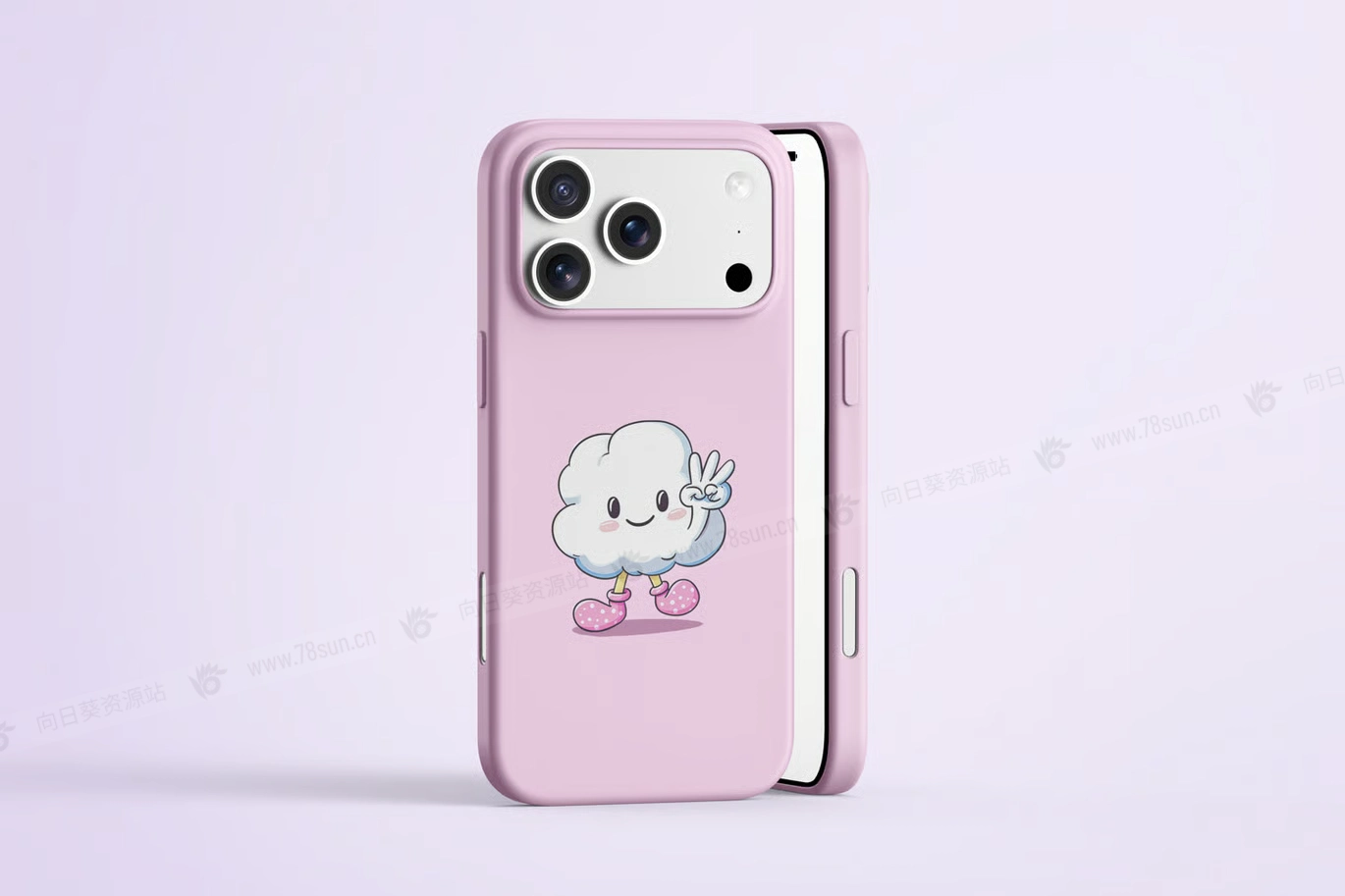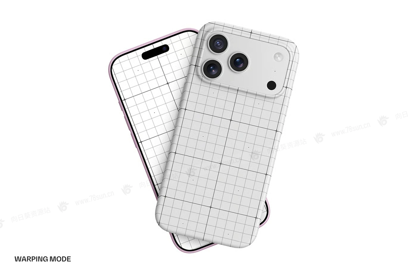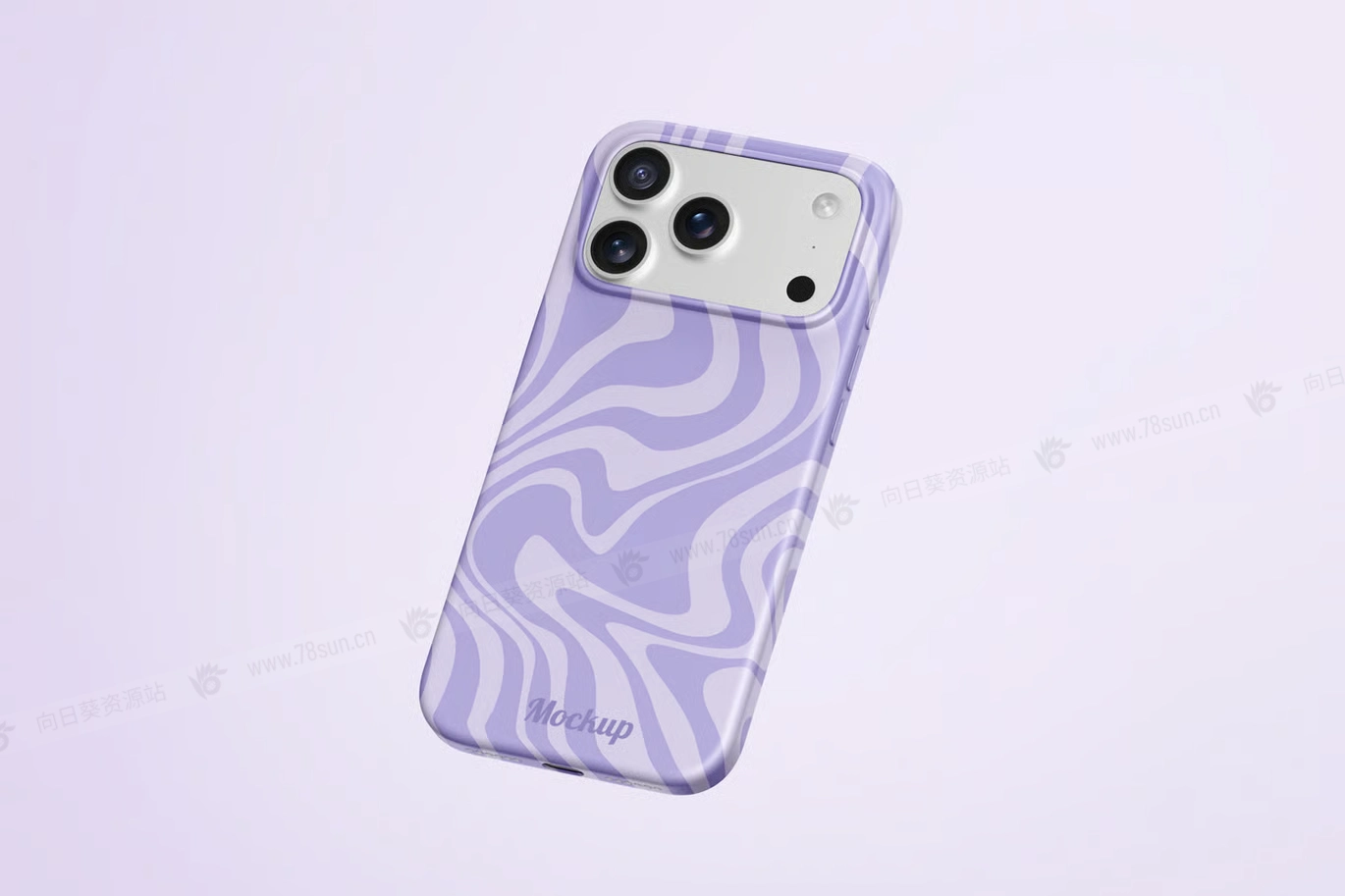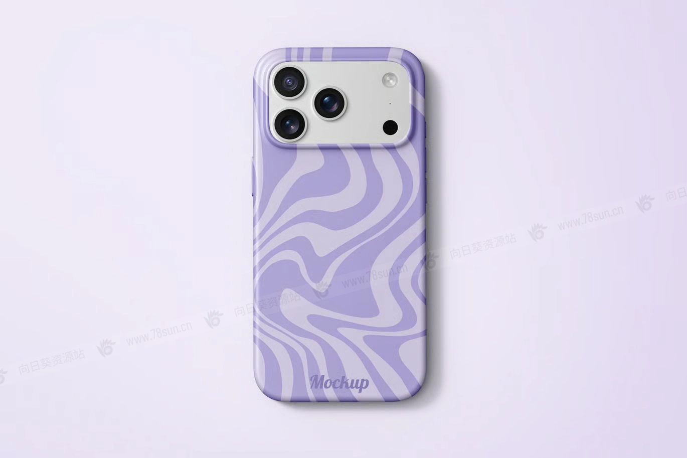 iPhone 17苹果手机壳保护壳品牌VI效果图展示智能贴图psd设计样机。完全可编辑的PSD允许完全自定义,包括颜色、纹理和艺术品布局,确保你的设计与设备的轮廓无缝融合。