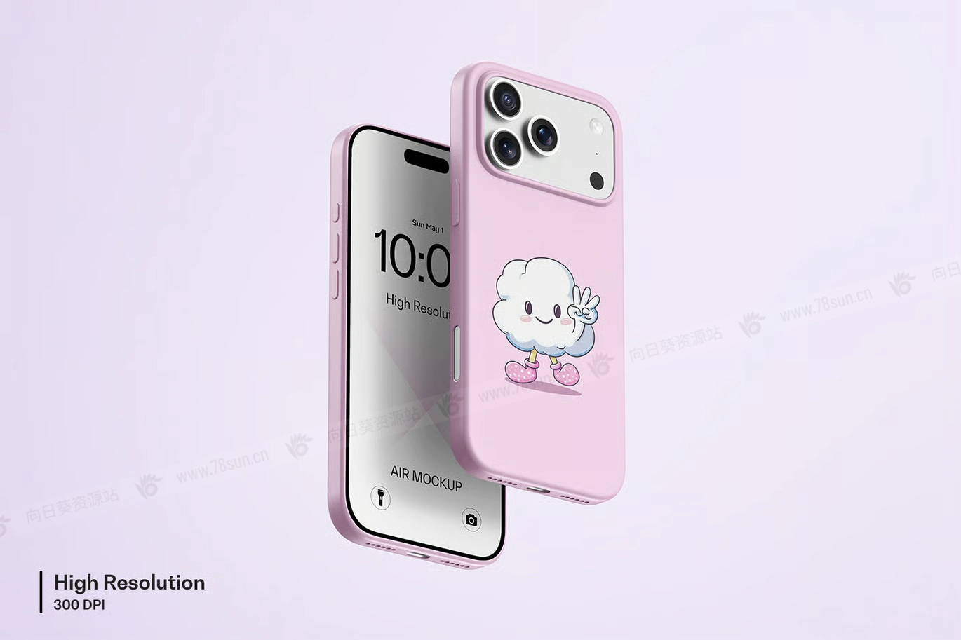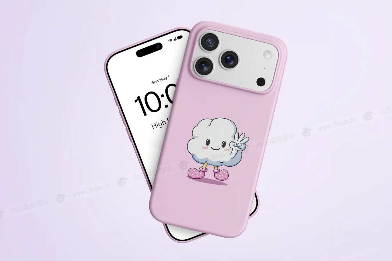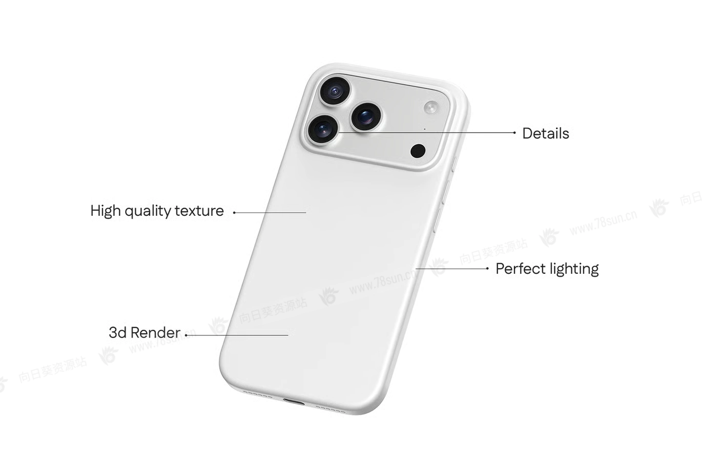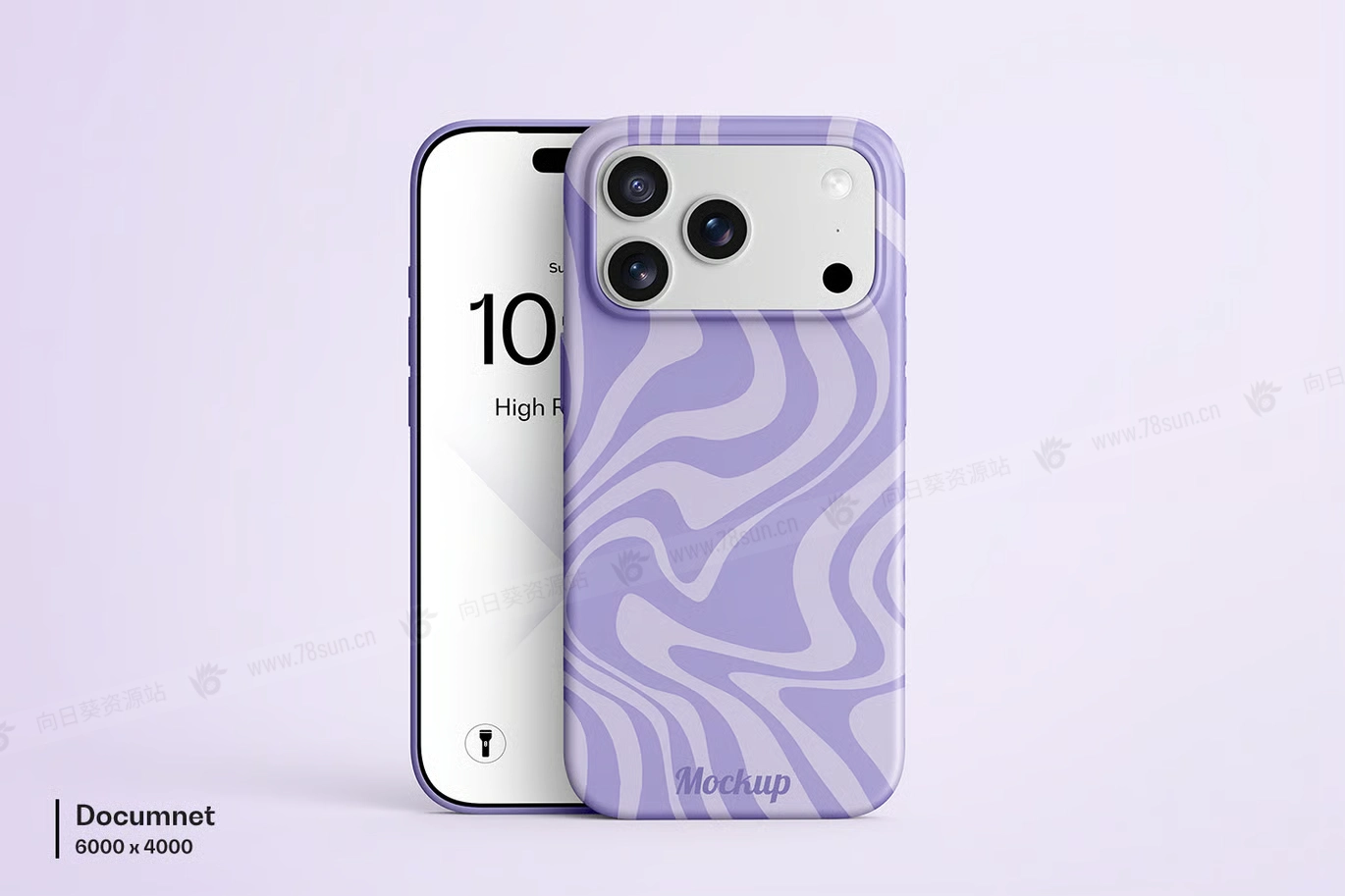 iPhone 17苹果手机壳保护壳品牌VI效果图展示智能贴图psd设计样机。完全可编辑的PSD允许完全自定义,包括颜色、纹理和艺术品布局,确保你的设计与设备的轮廓无缝融合。