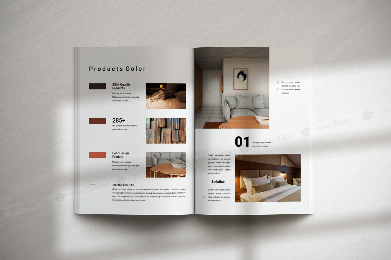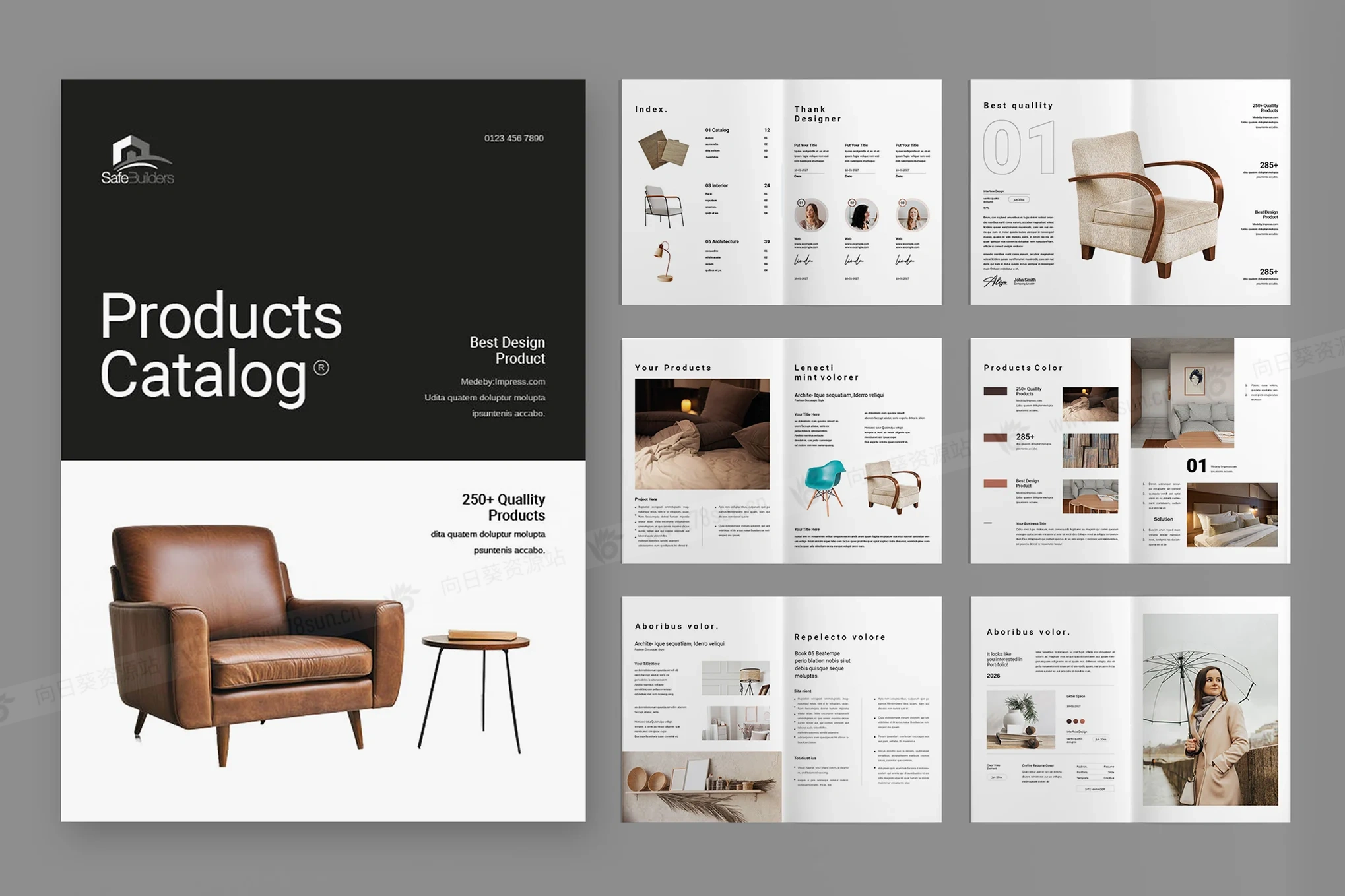 室内设计家具产品目录小册子杂志宣传册画册indd设计模板,添加标志和图片,编辑品牌颜色和排版,