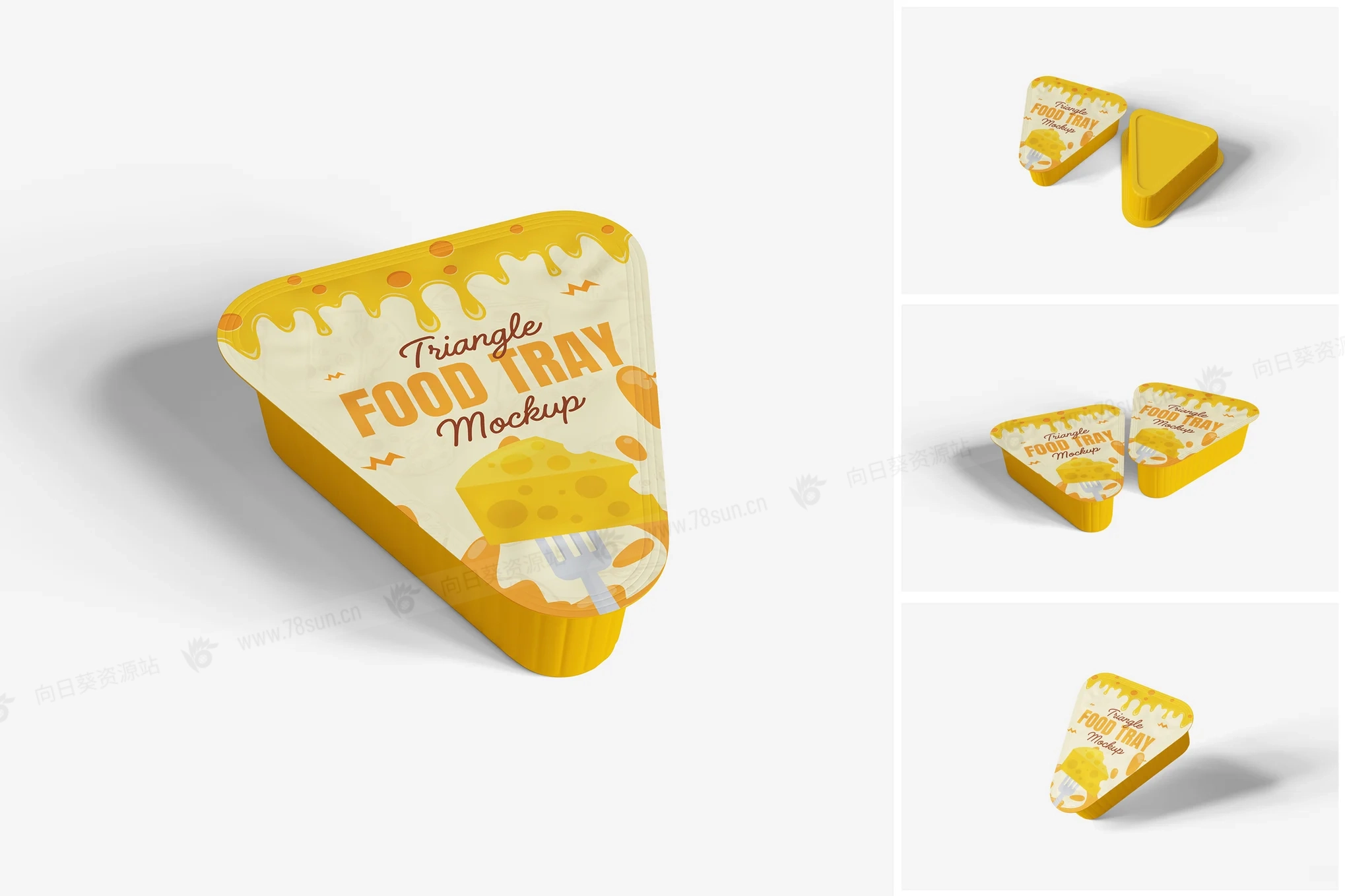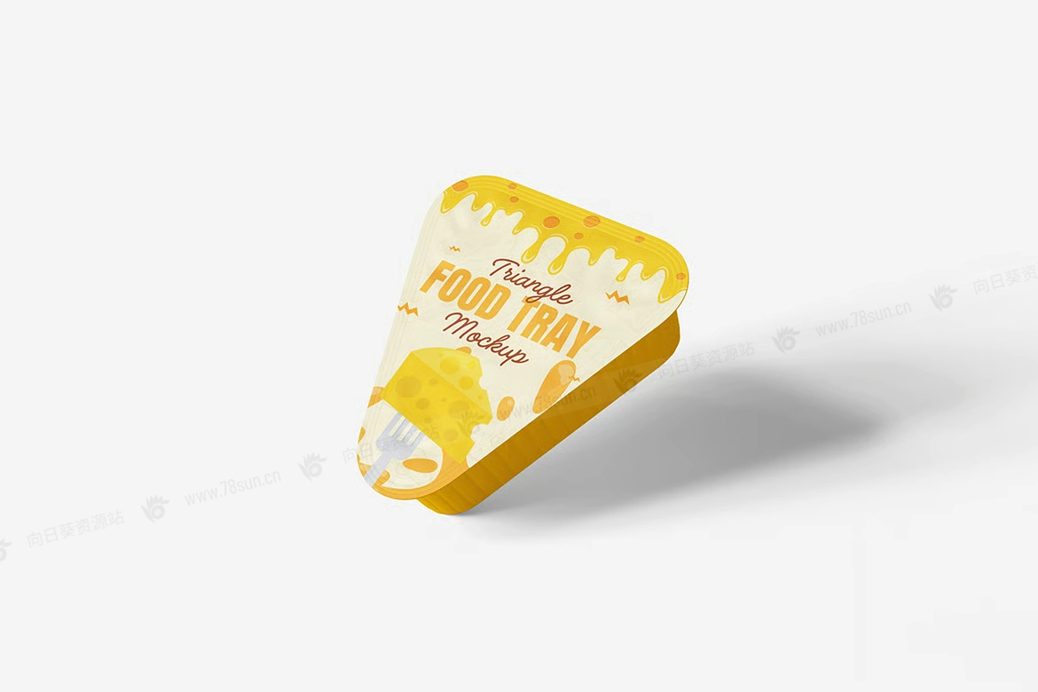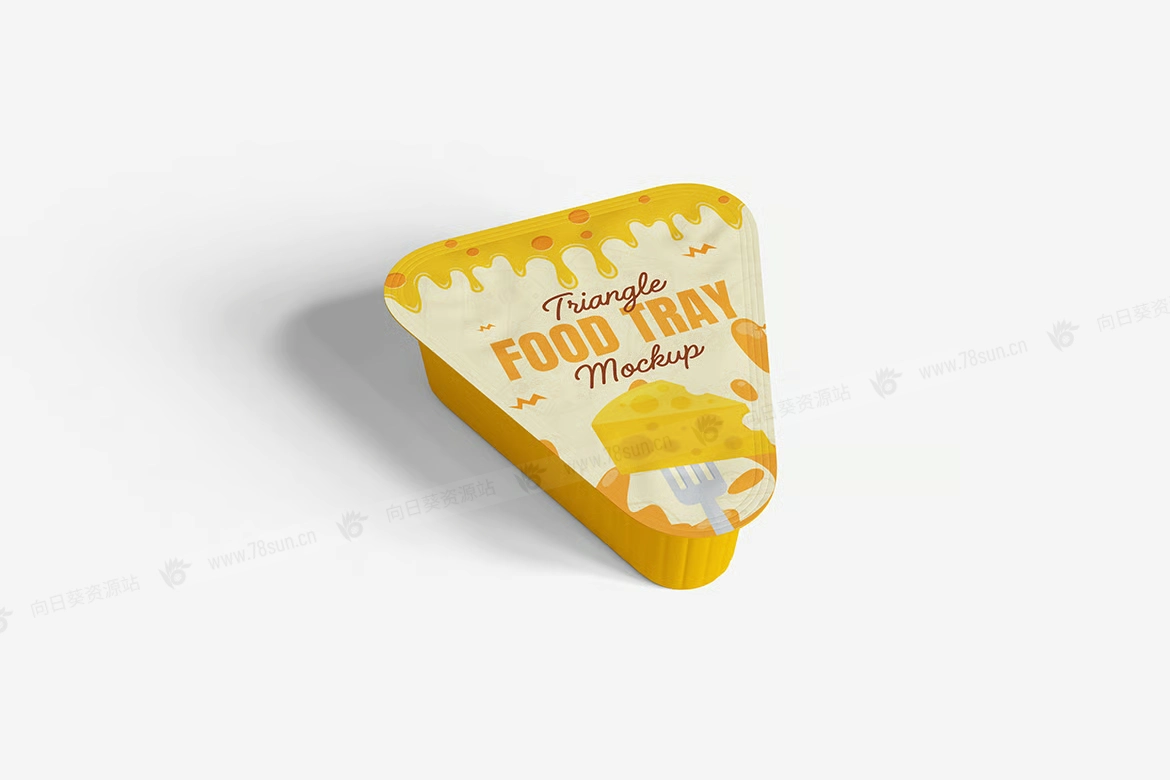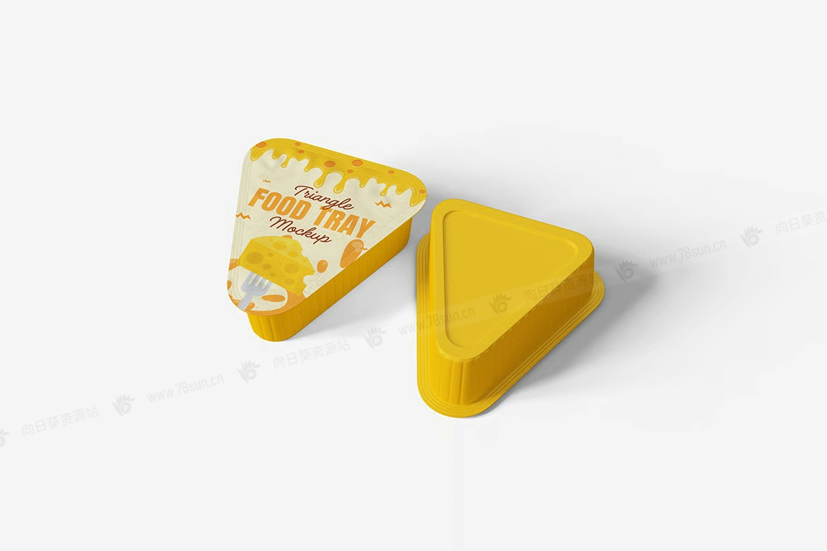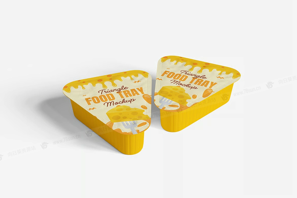 三角形蘸酱包食品塑料盒品牌VI效果图展示智能贴图psd设计样机。用智能对象轻松替换你的设计,双击智能图层,复制粘贴你的艺术作品,保存完毕!