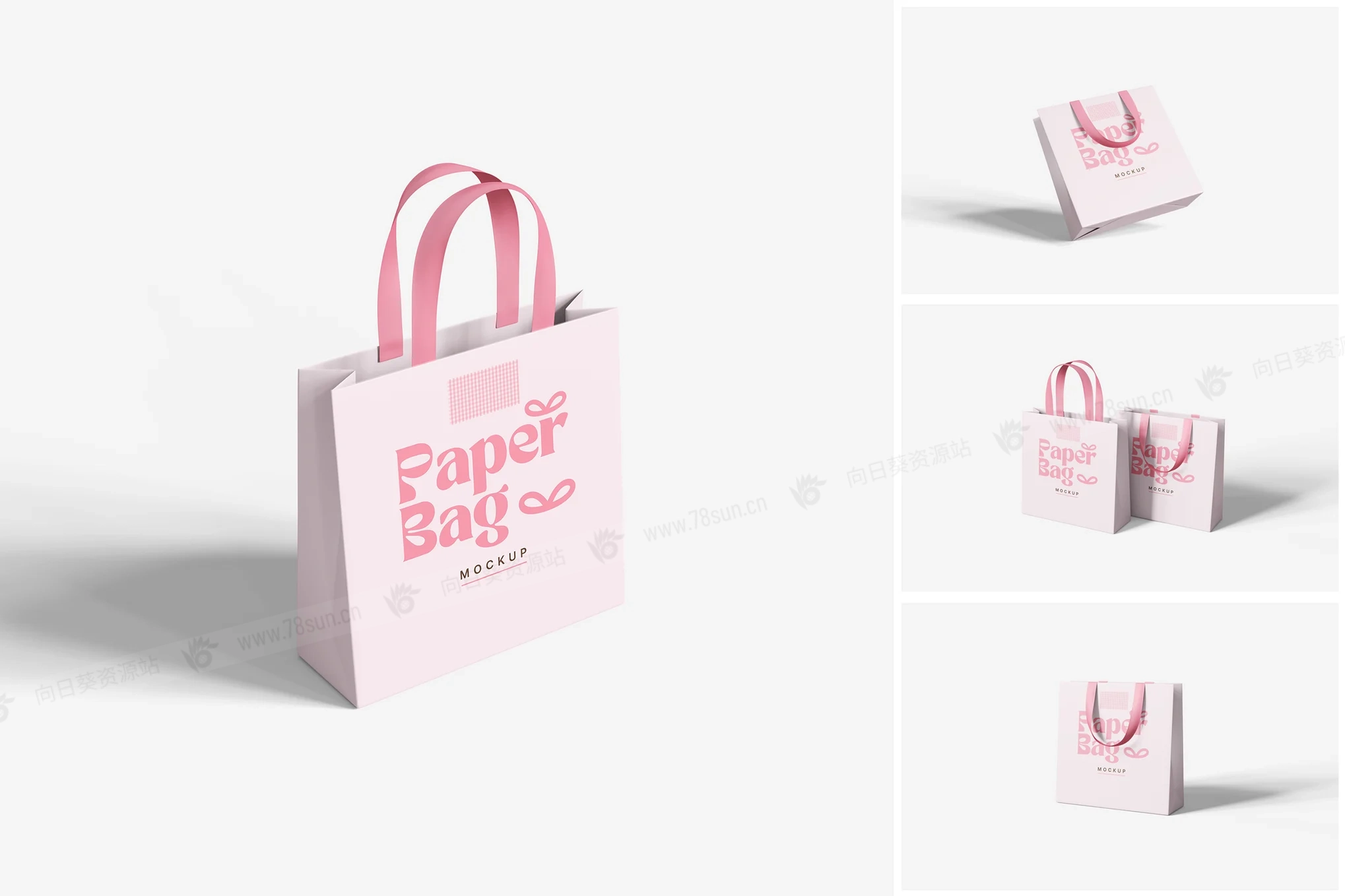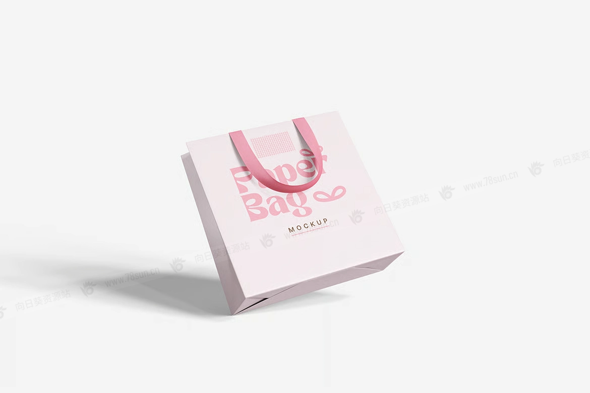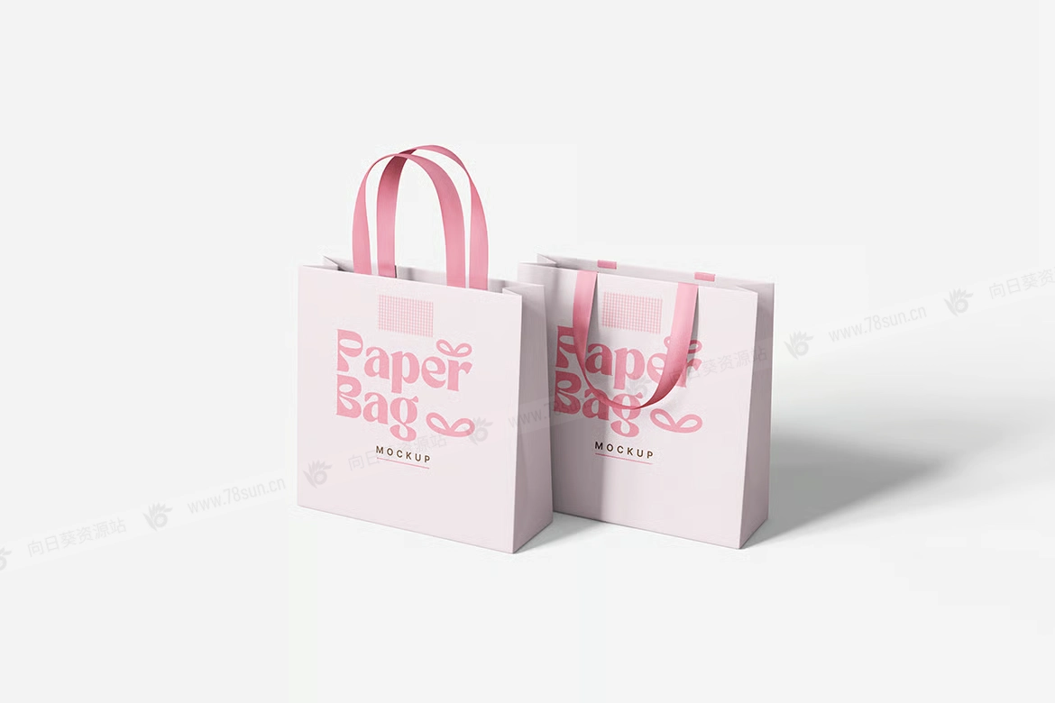 纸质手提袋购物袋品牌VI效果图展示智能贴图psd设计样机。用智能对象轻松替换你的设计,双击智能图层,复制粘贴你的艺术作品,保存完毕!