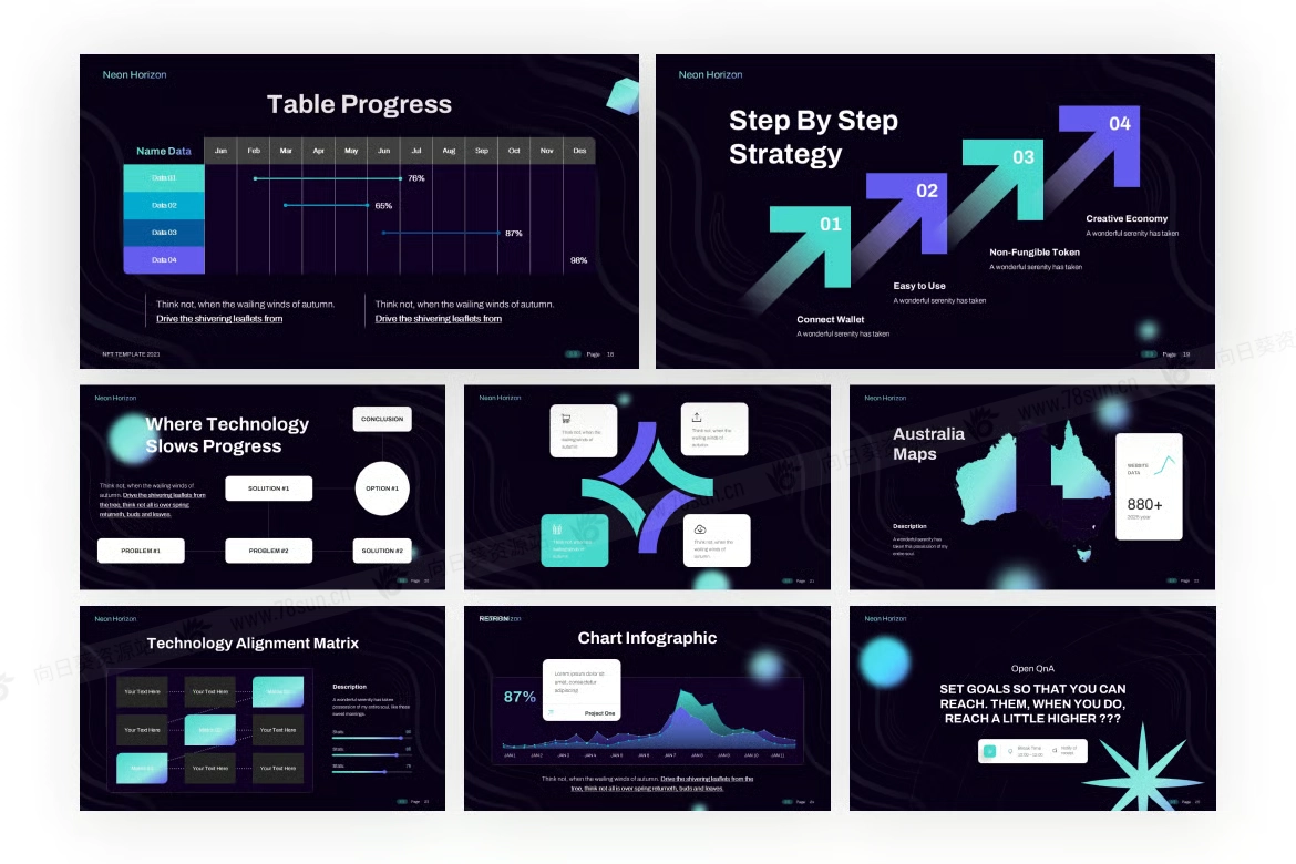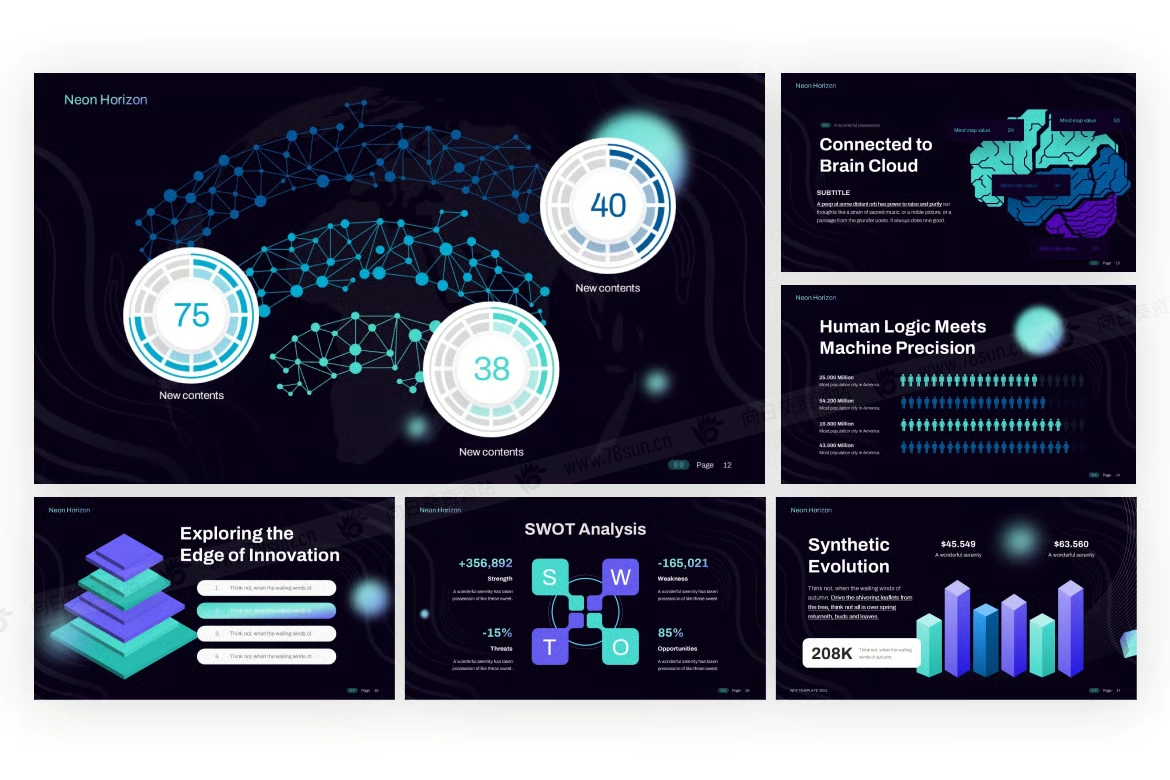 适合:科幻推介、未来科技演示、霓虹幻灯片模板、AI初创PPT、创新路线图幻灯片、元宇宙演示文稿设计、区块链简报、数字未来幻灯片、现代科技主题演讲、科技投资者推介、渐变暗幻灯片、初创启动演示文稿、NFT幻灯片、未来用户体验模板、企业技术布局、人工智能幻灯片、创新叙事演示文稿、深度科技视觉设计, 未来商业提案,数据驱动的技术幻灯片。
