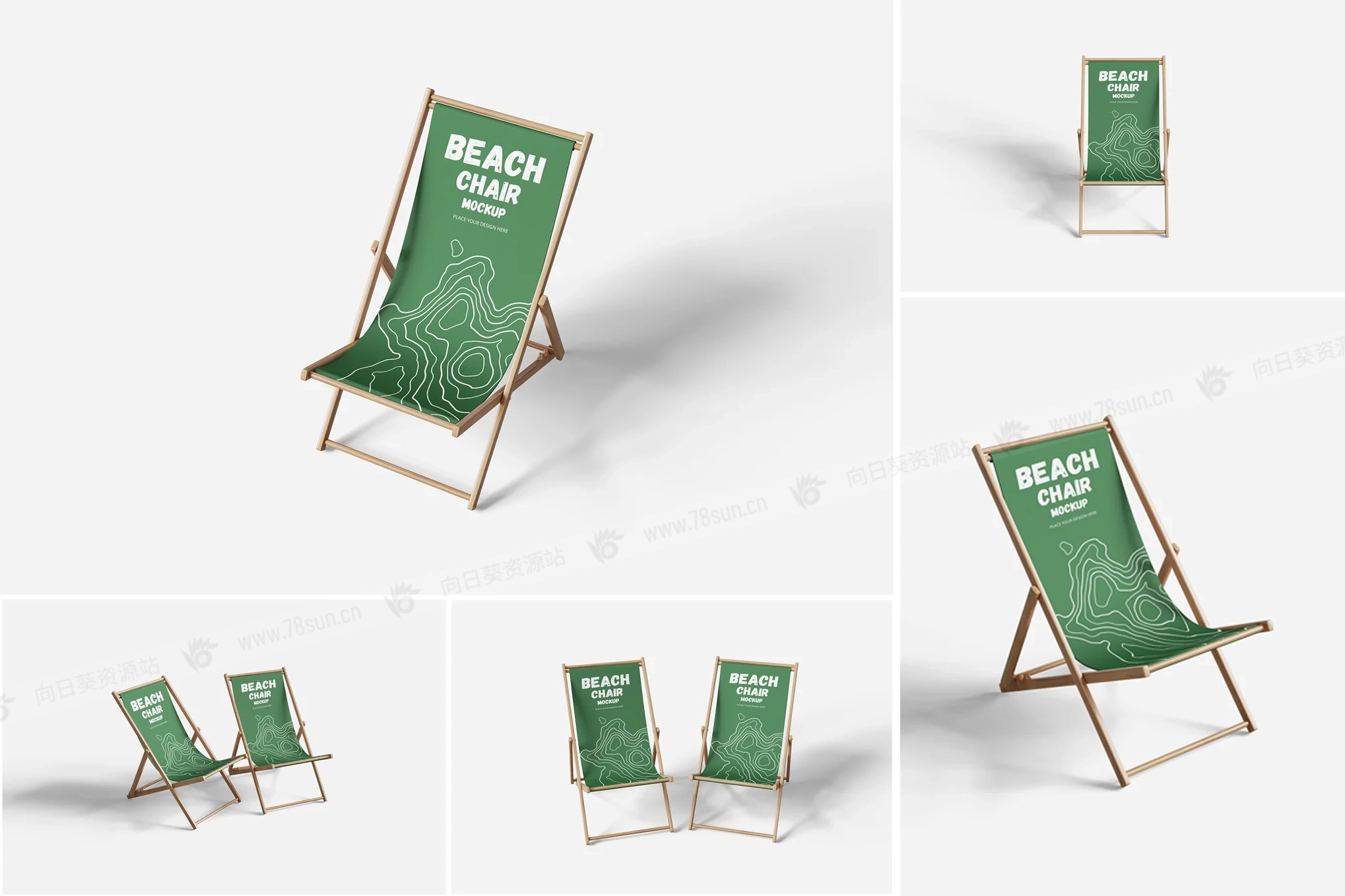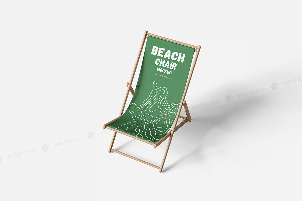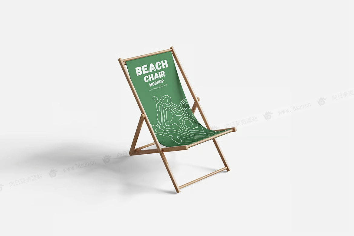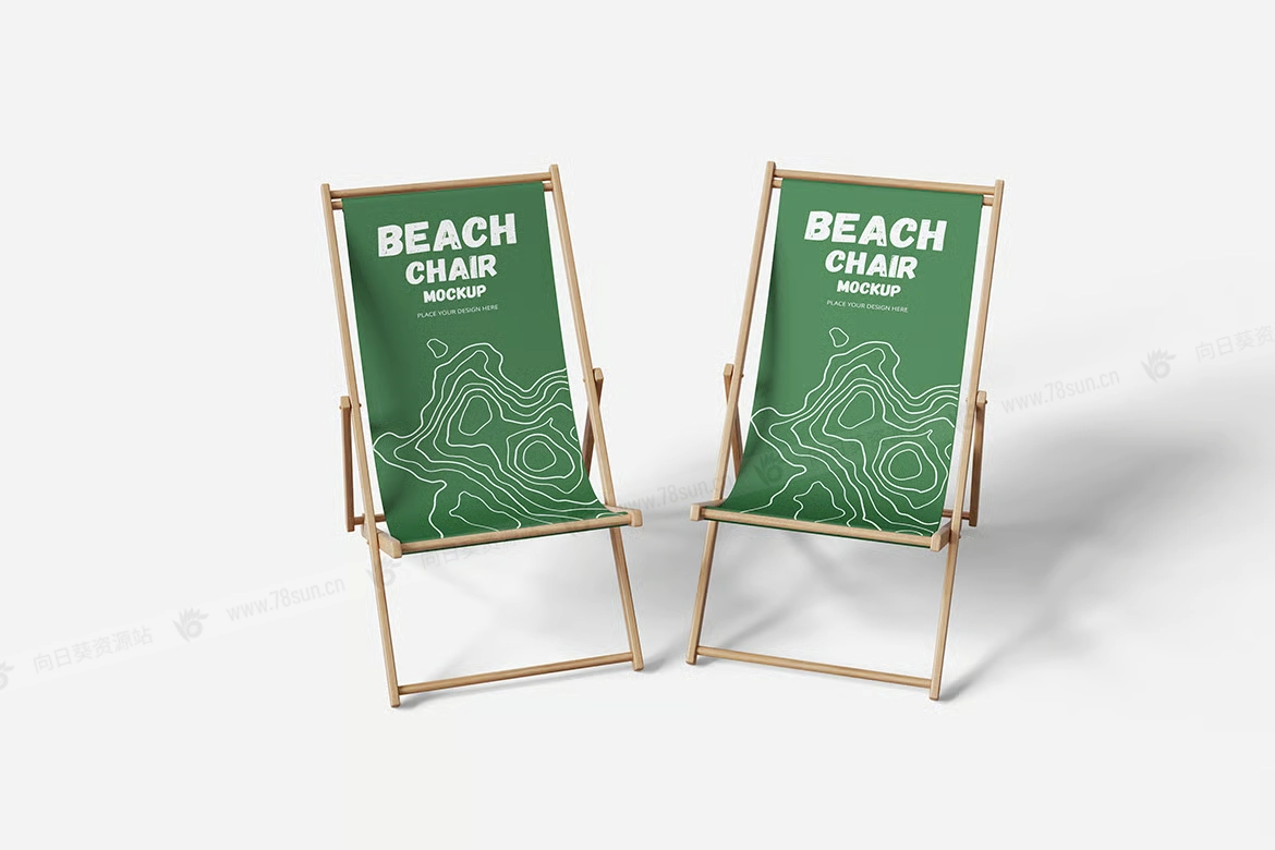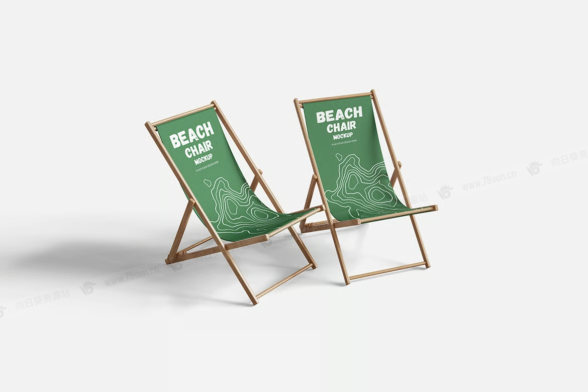 可折叠沙滩椅子品牌VI效果图展示智能贴图psd设计样机。用智能对象替换你的设计很容易。双击智能图层,复制粘贴你的艺术作品,保存,完成任务!