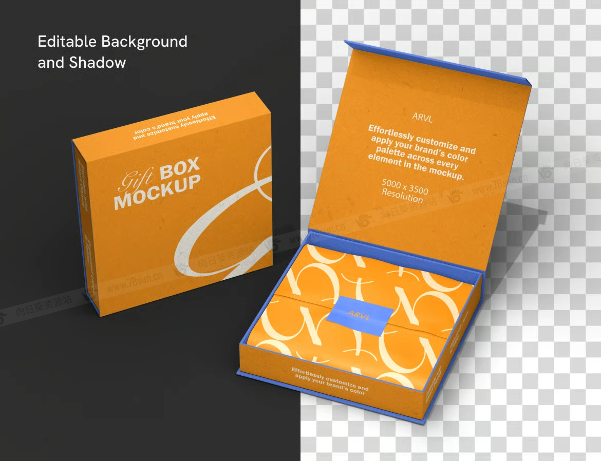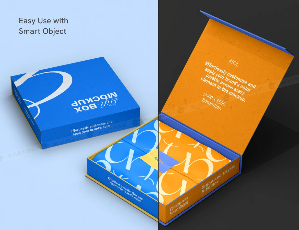 磁吸翻盖礼品盒品牌VI效果图展示智能贴图psd设计样机,