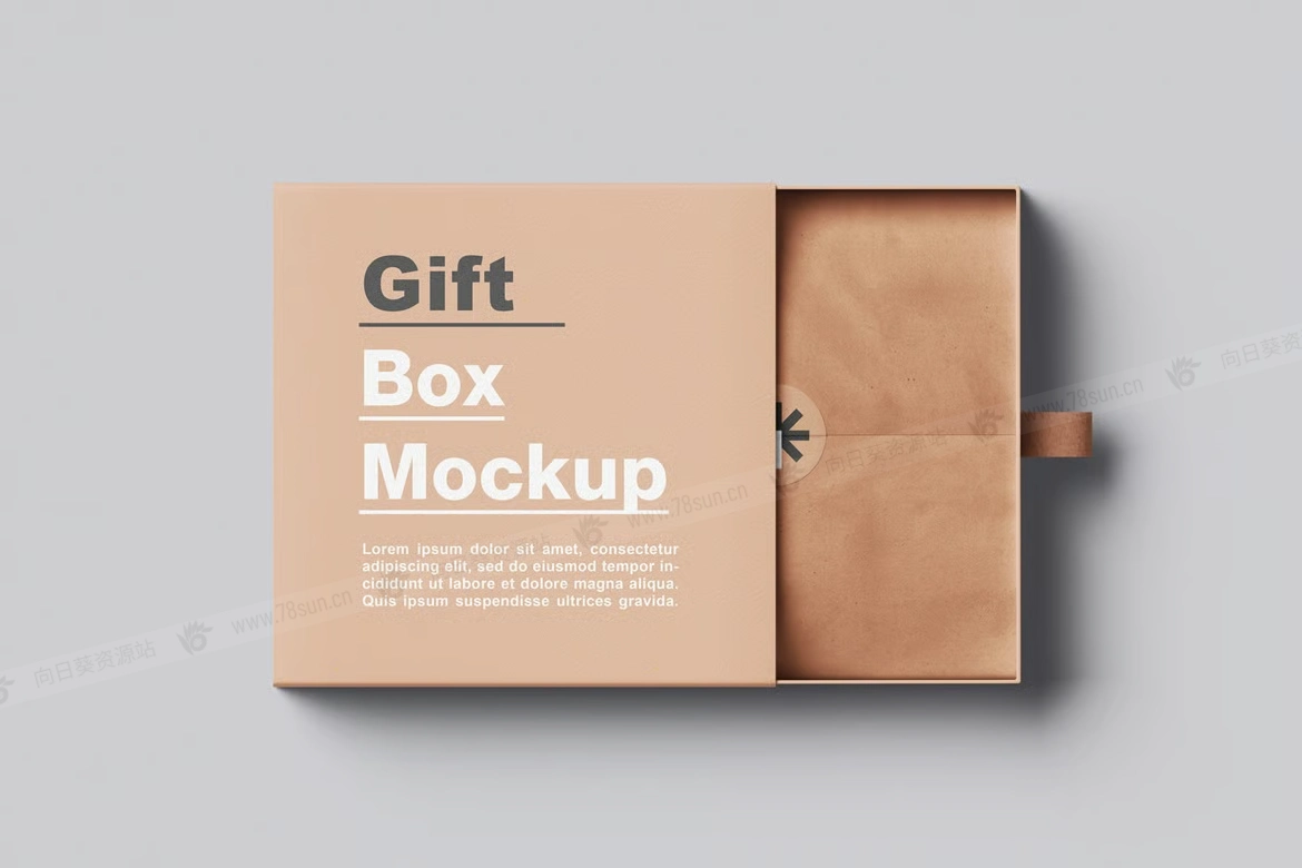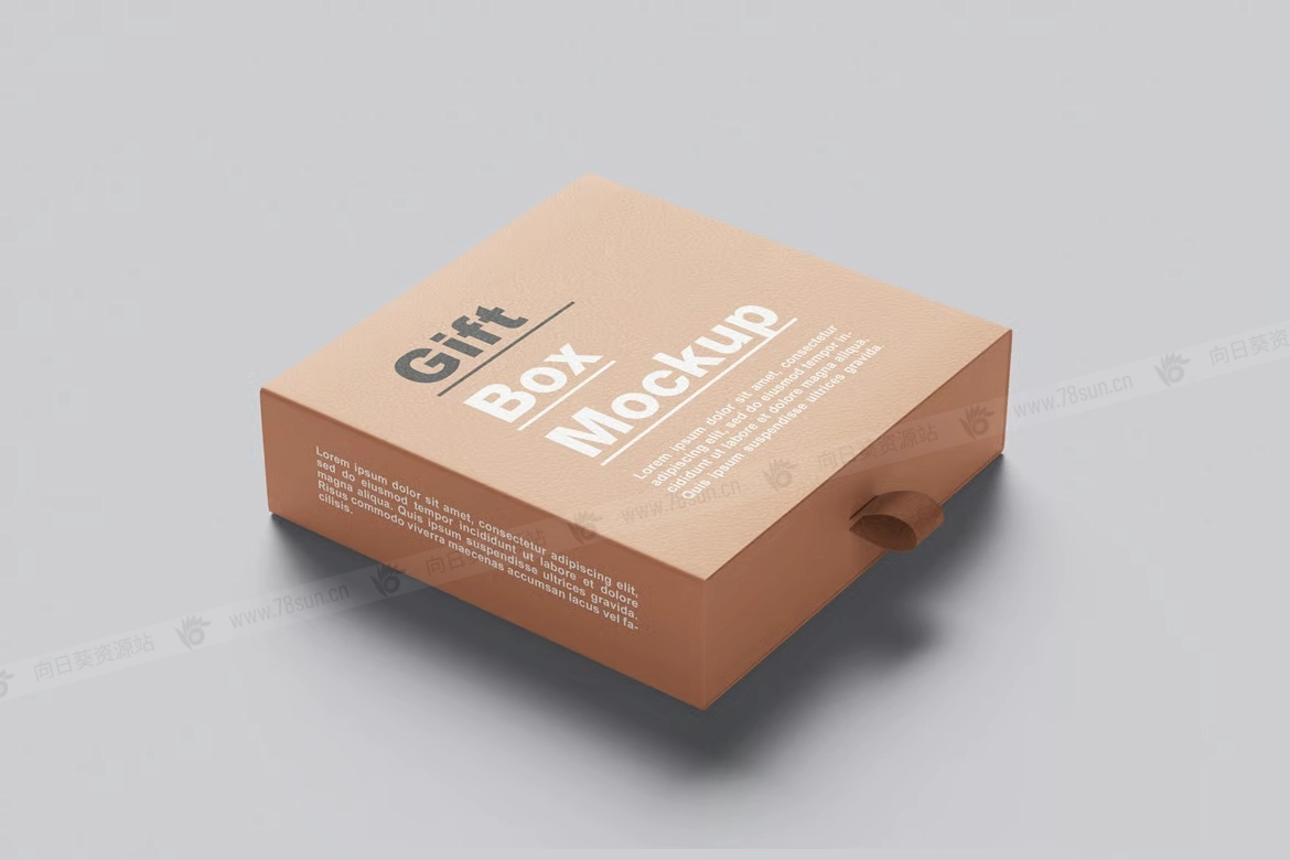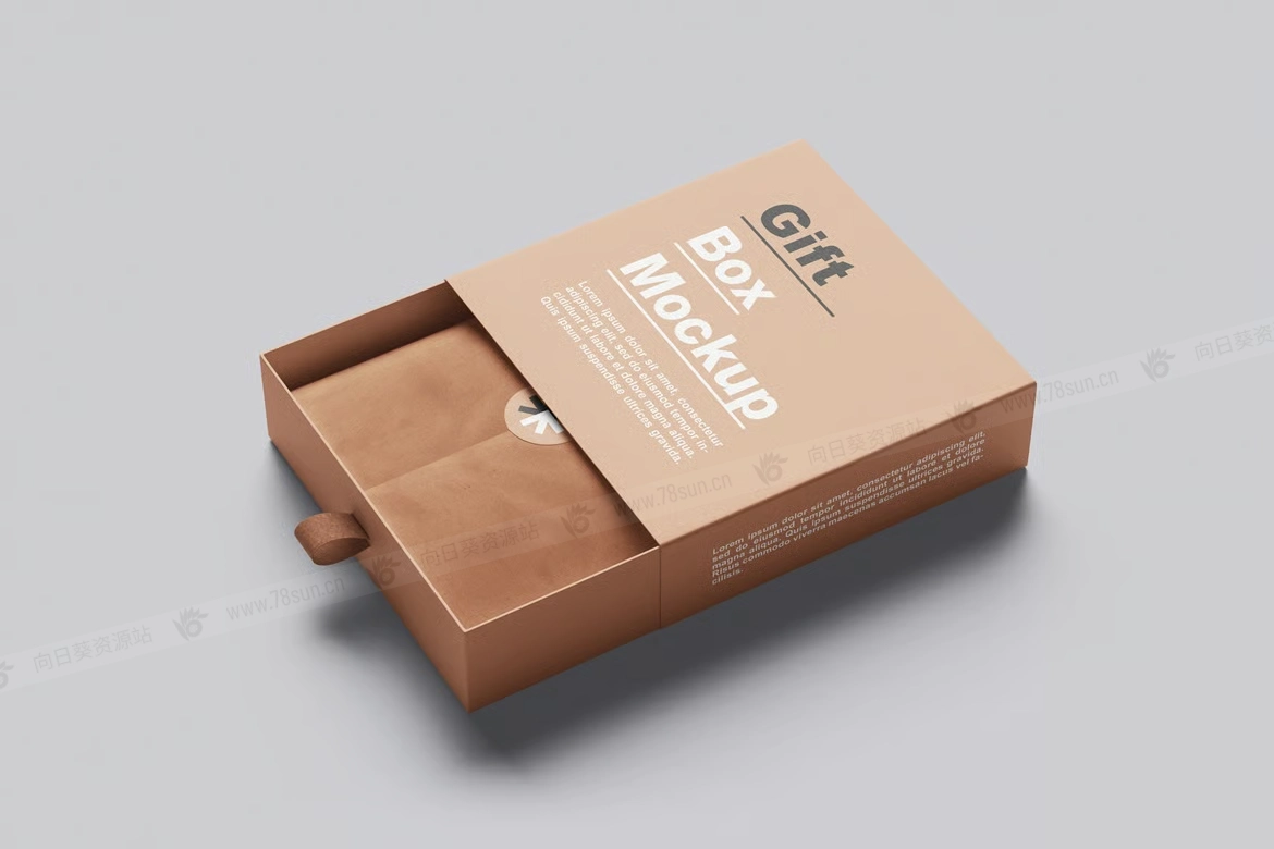 滑盒滑动抽屉礼品纸盒子品牌VI效果图展示智能贴图psd设计样机,这个模型包含4个带有分层良好的PSD文件,并且还采用了智能对象功能,这意味着你可以在几秒钟内轻松快速地用自己的设计替换当前设计。