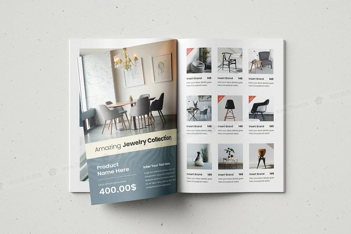 室内设计家具产品目录小册子杂志宣传册画册indd docx设计模板。完全可定制,您可以快速轻松地调整颜色、文字和布局,完美契合品牌。