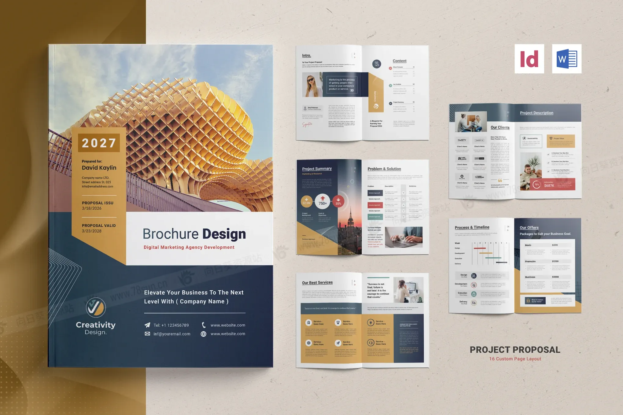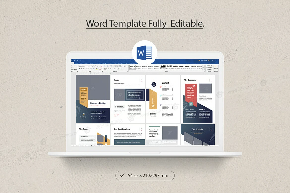 公司简介项目提案小册子杂志宣传册画册indd docx设计模板,所有内容都可以编辑,颜色可以一键切换。