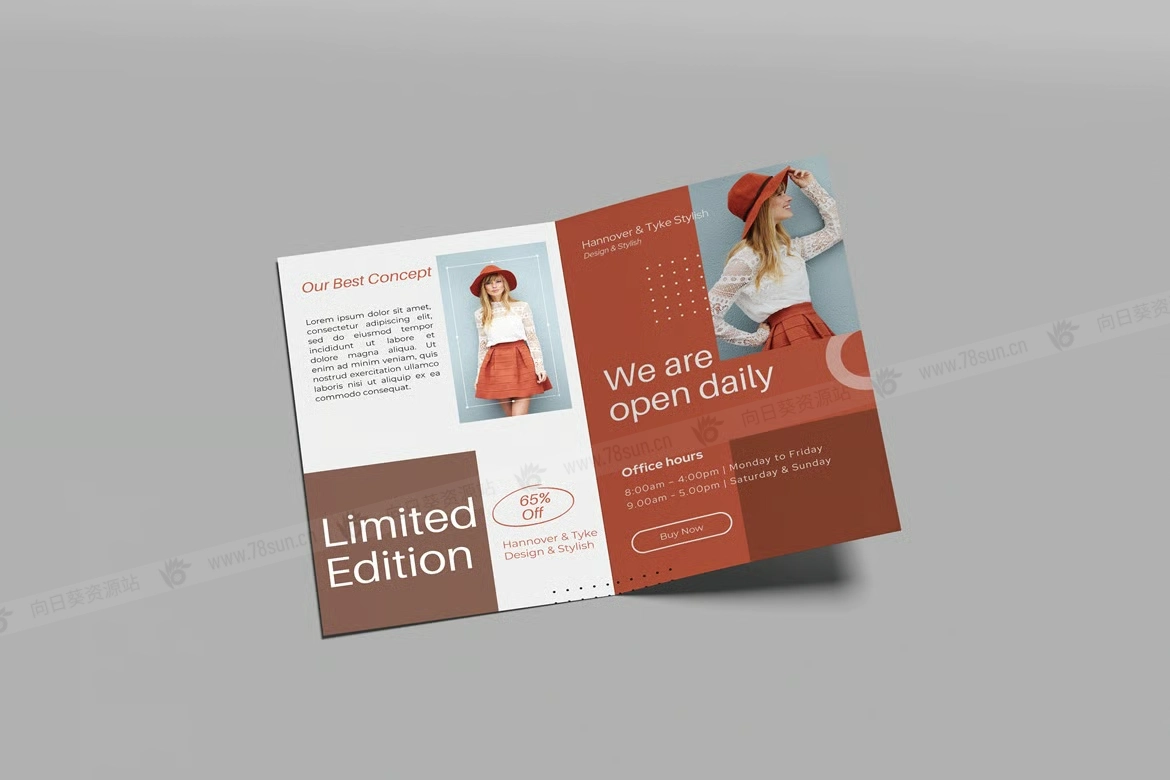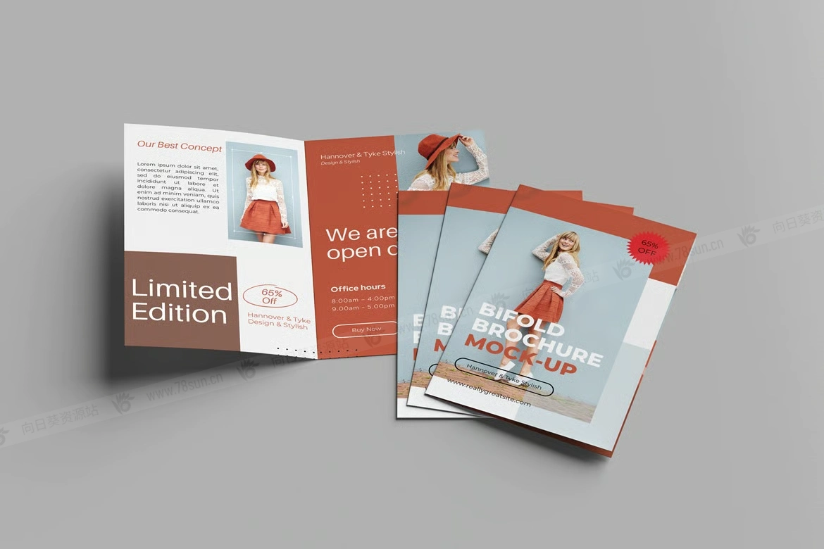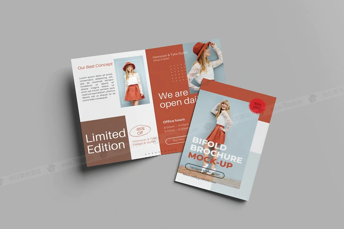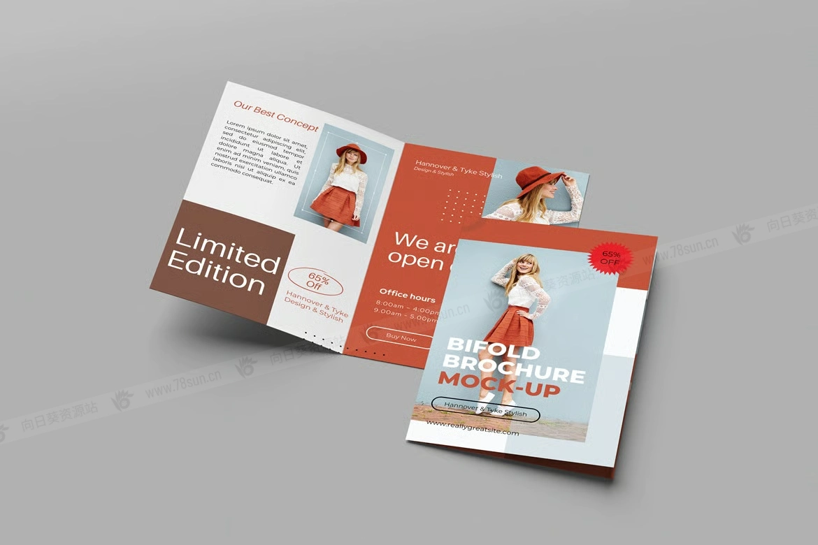 双折页宣传册小册子品牌VI效果图展示智能贴图psd设计样机。该PSD文件使用Smart-Object智能对象功能,方便快速更改模型内容。非常简单!你只需双击智能对象,粘贴你的作品,保存,就可以完成了。