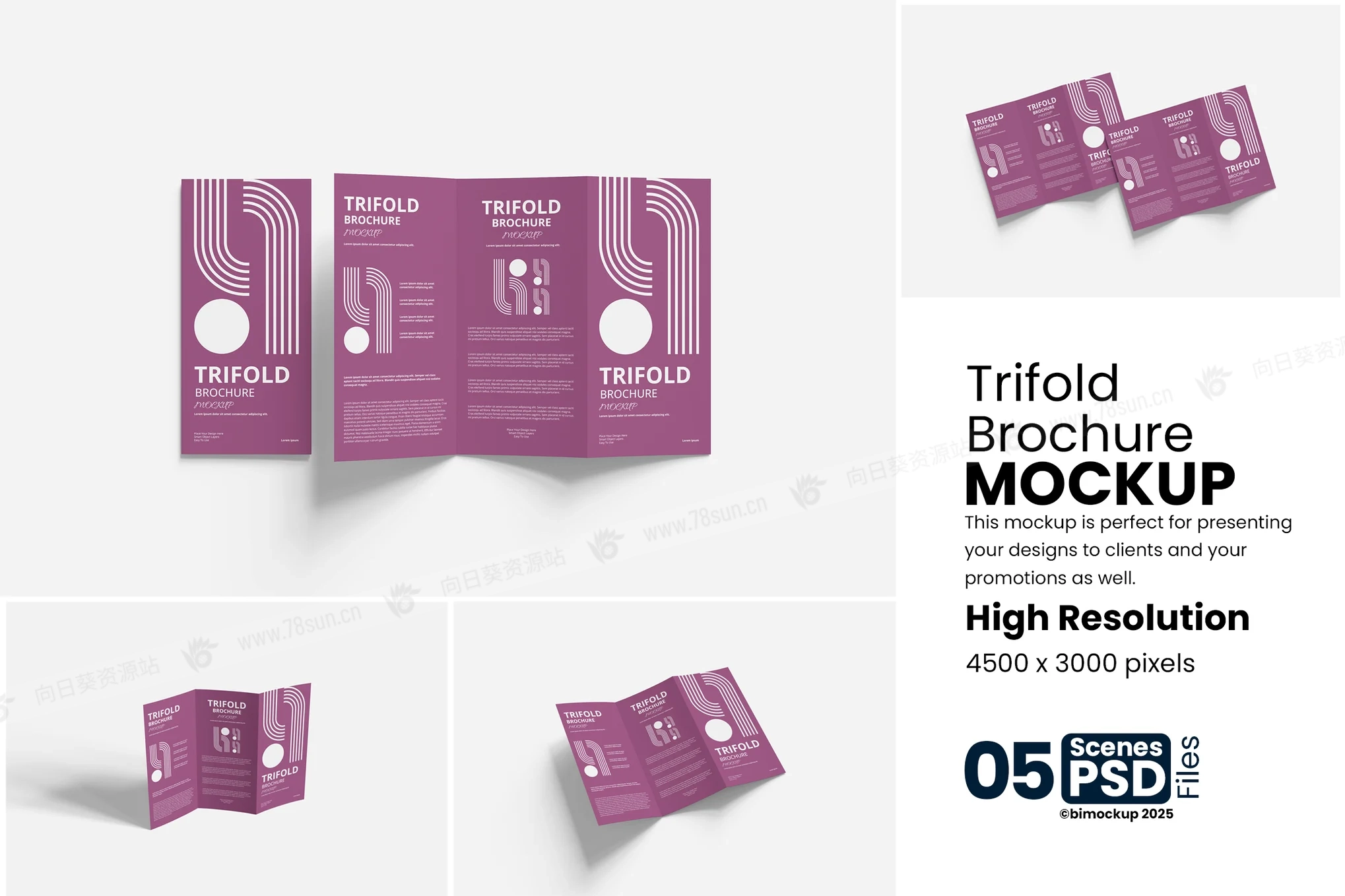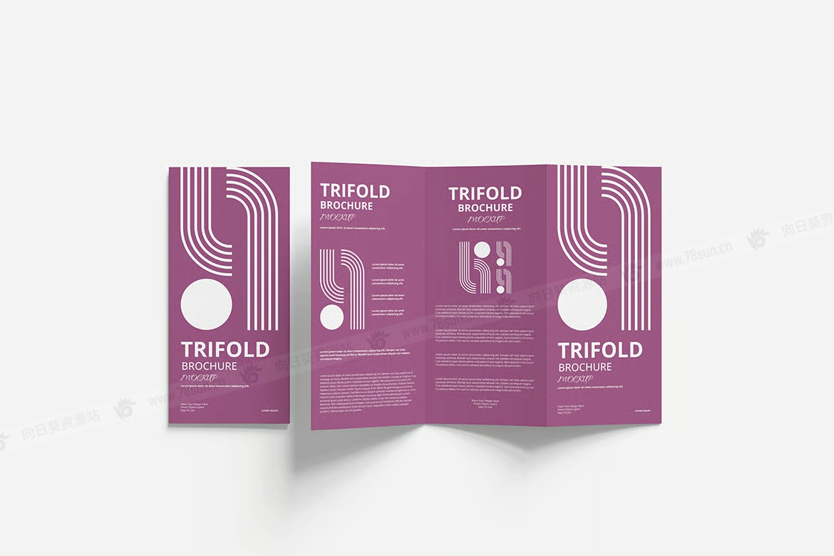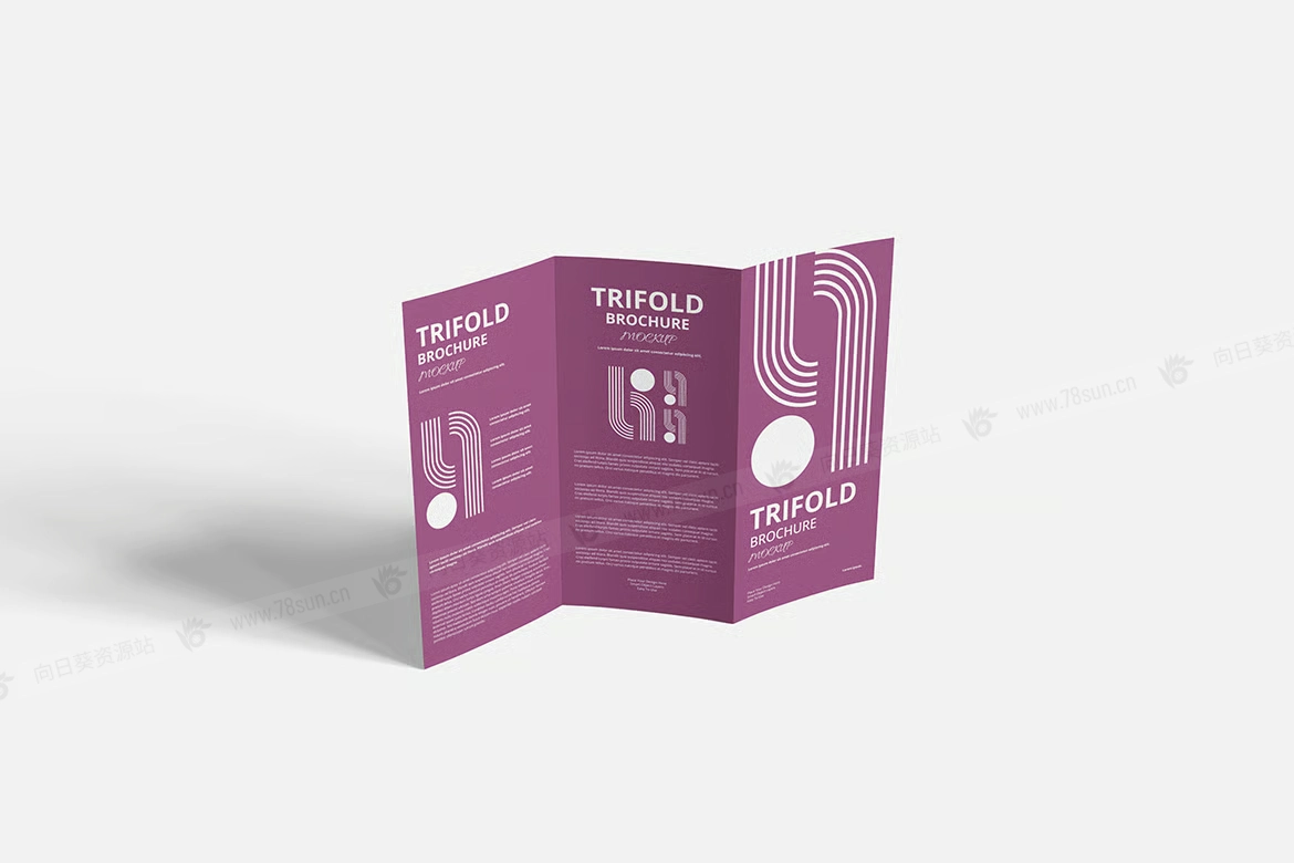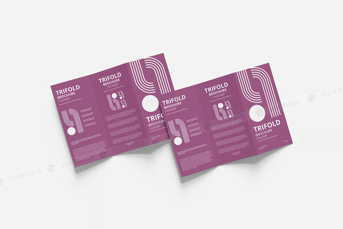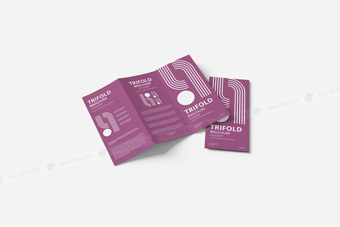 三折页产品宣传小册子品牌VI效果图展示智能贴图psd设计样机。你可以用智能物体功能轻松快速地替换设计。提供PSD Photoshop格式,并具备智能对象功能,帮助你在几秒钟内用自己的设计替换现有设计。