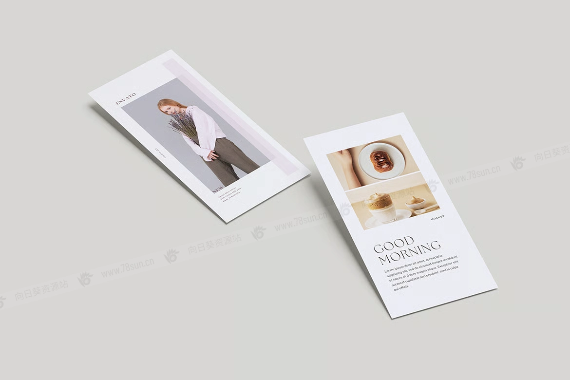 DL宣传单品牌VI效果图展示智能贴图psd设计样机。该模型包含4个带有分层良好PSD文件, 这个模型还采用了智能物体功能,这意味着你可以轻松快速地改变电流 只需几秒钟即可自行设计。