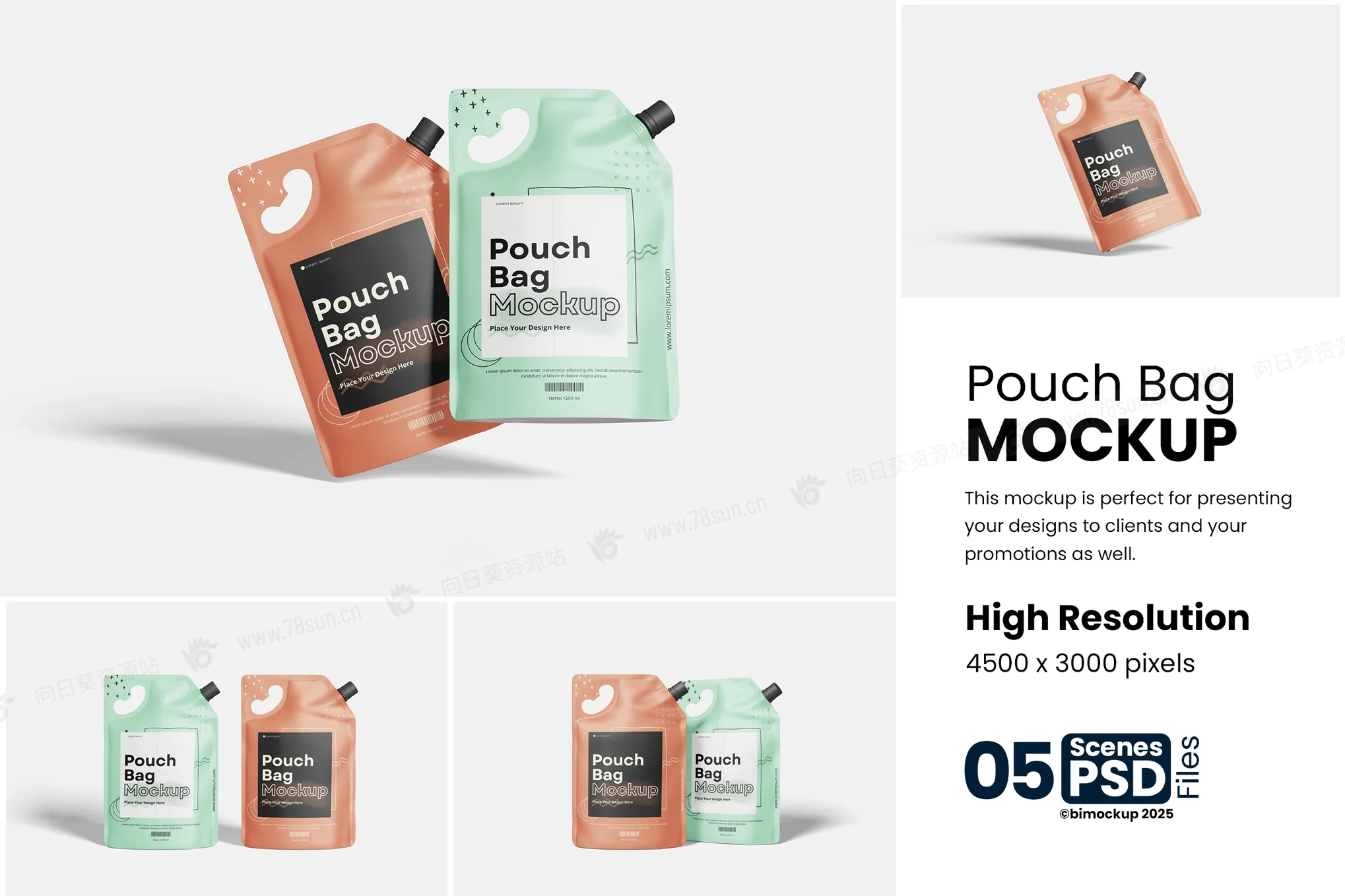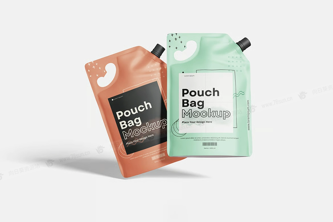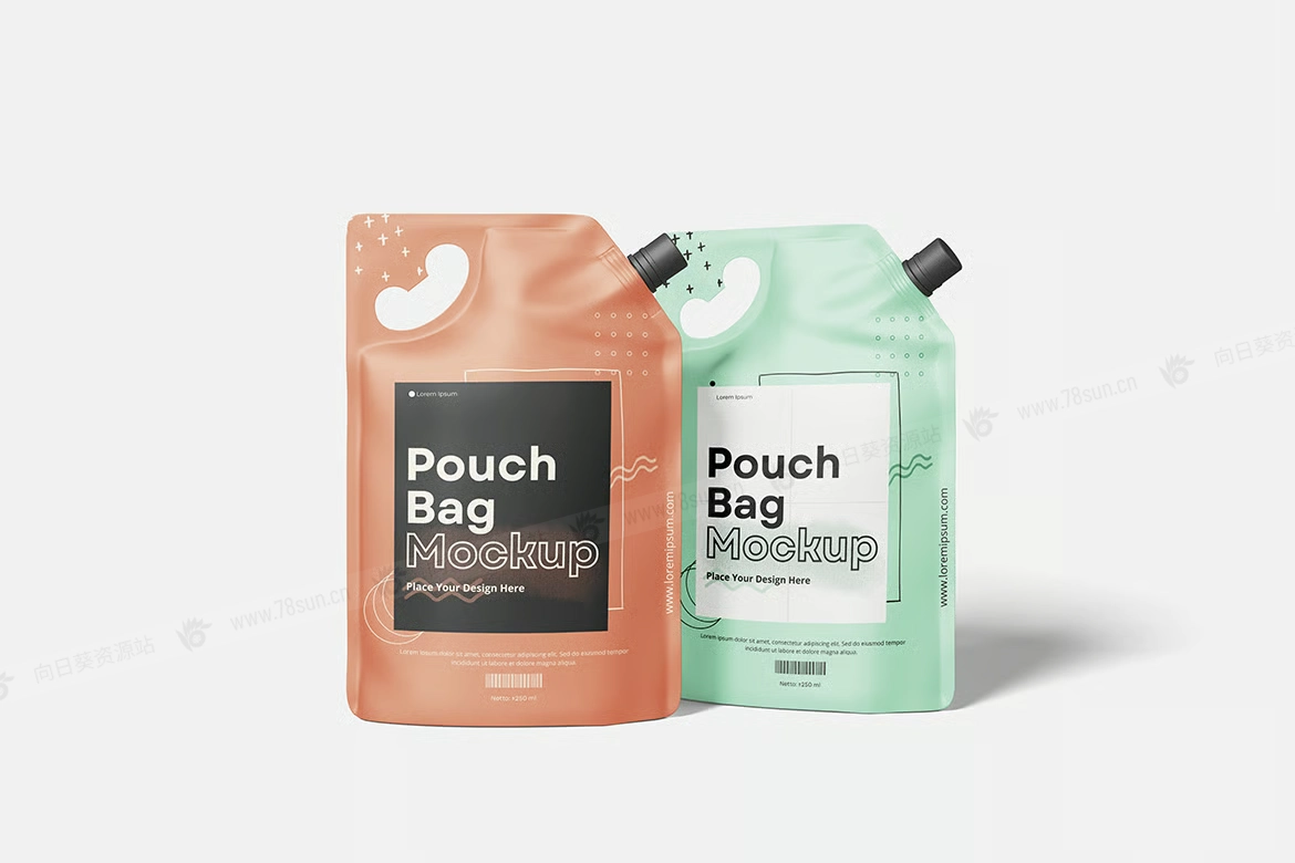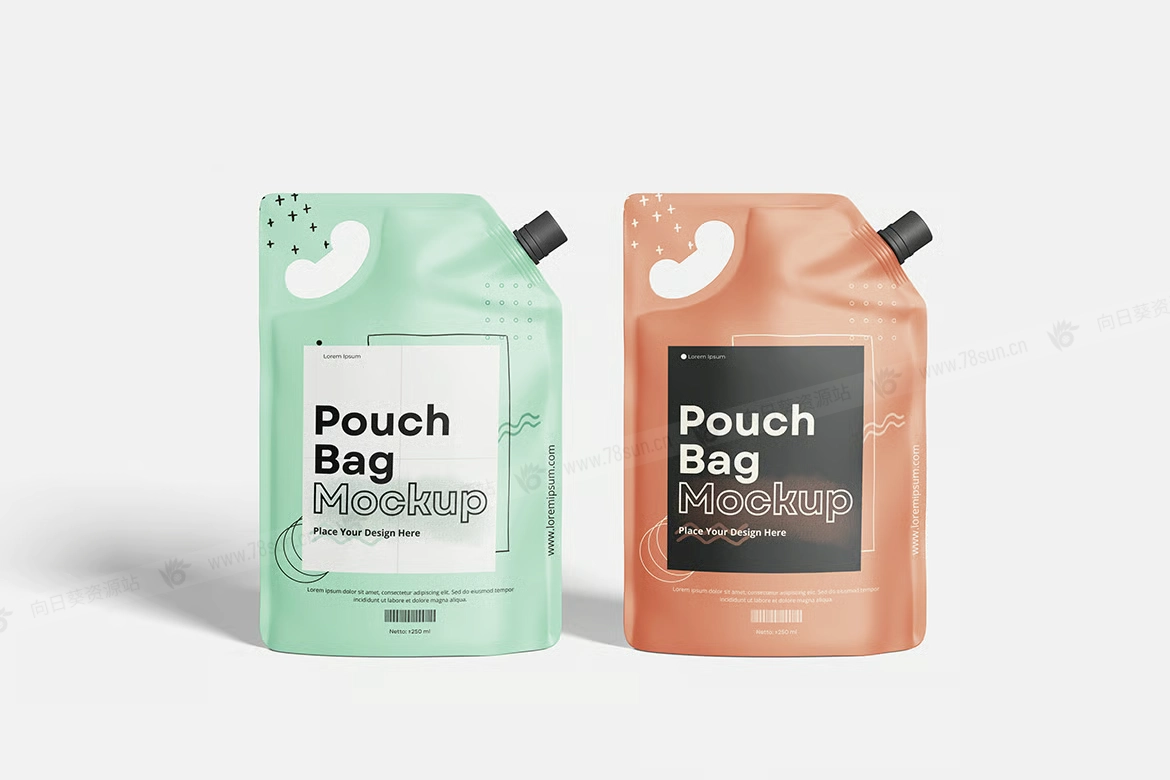 食品化妆品吸嘴袋品牌VI效果图展示智能贴图psd设计样机。你可以用智能物体功能轻松快速地替换设计。提供PSD Photoshop格式,并具备智能对象功能,帮助你在几秒钟内用自己的设计替换现有设计。