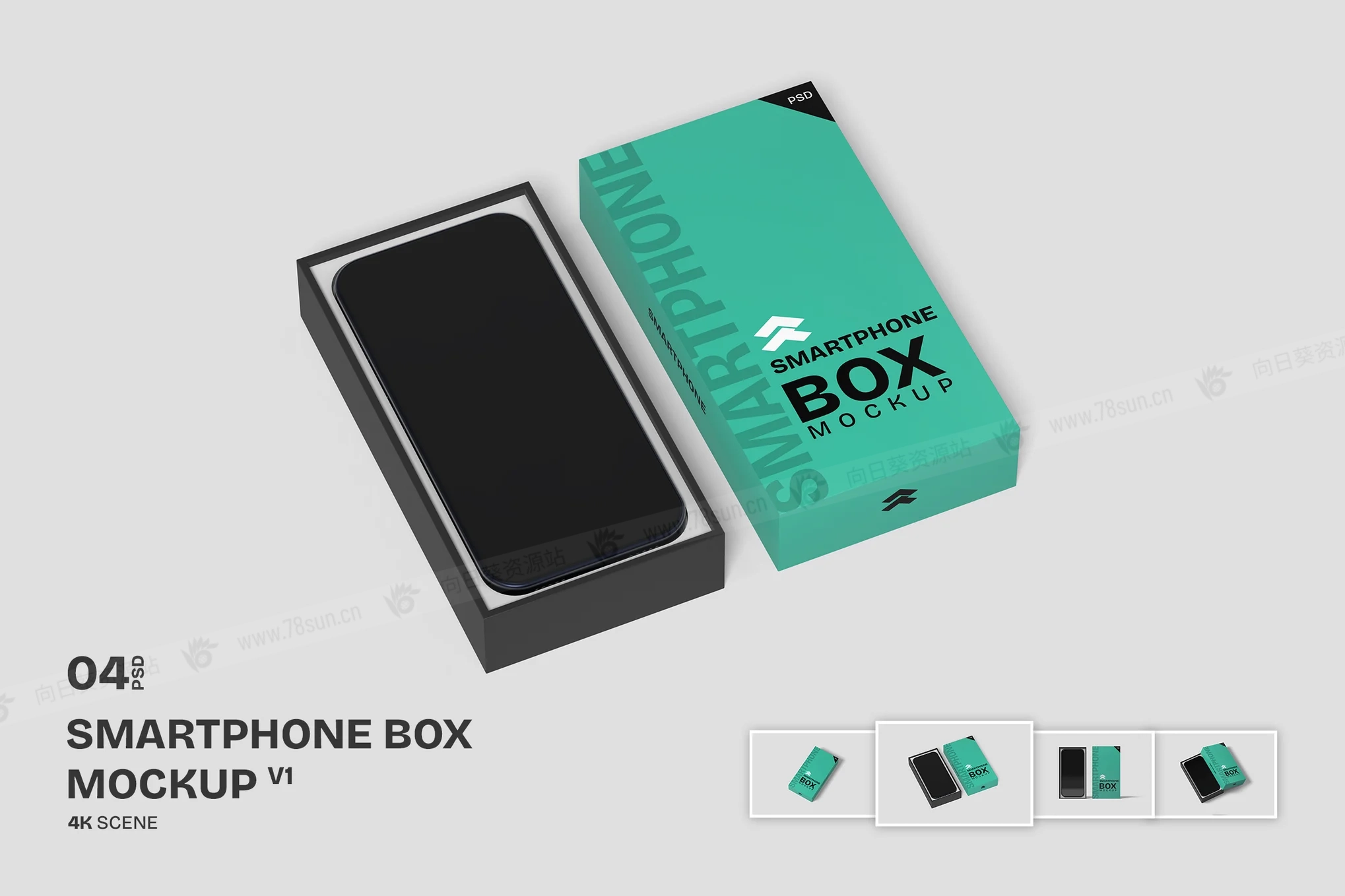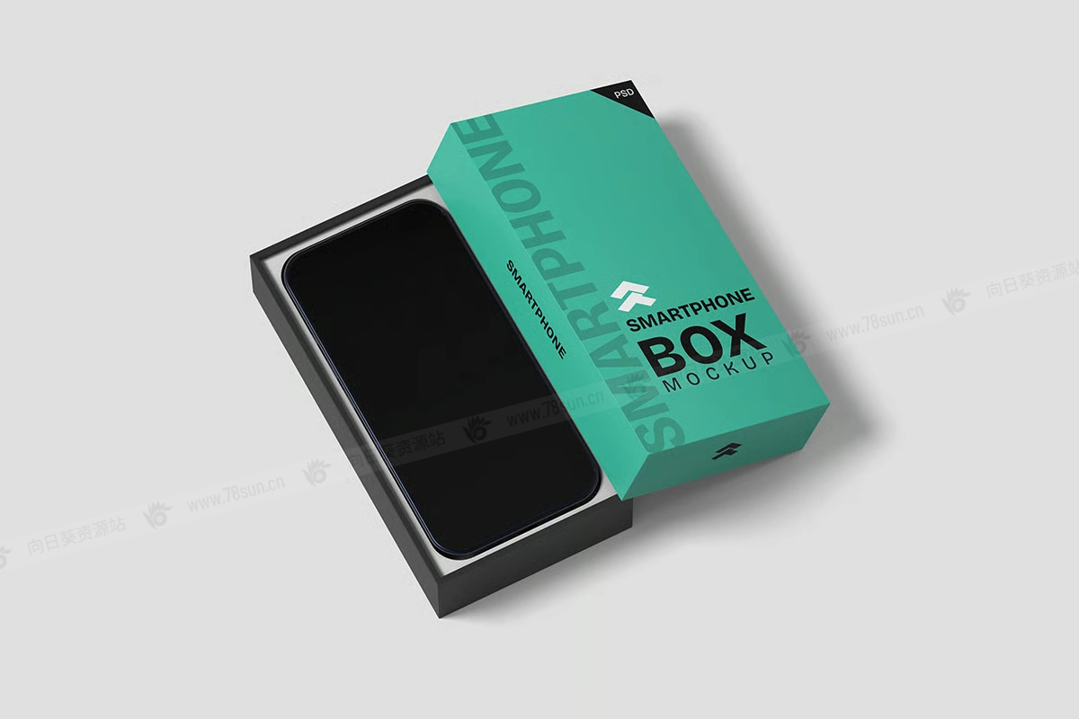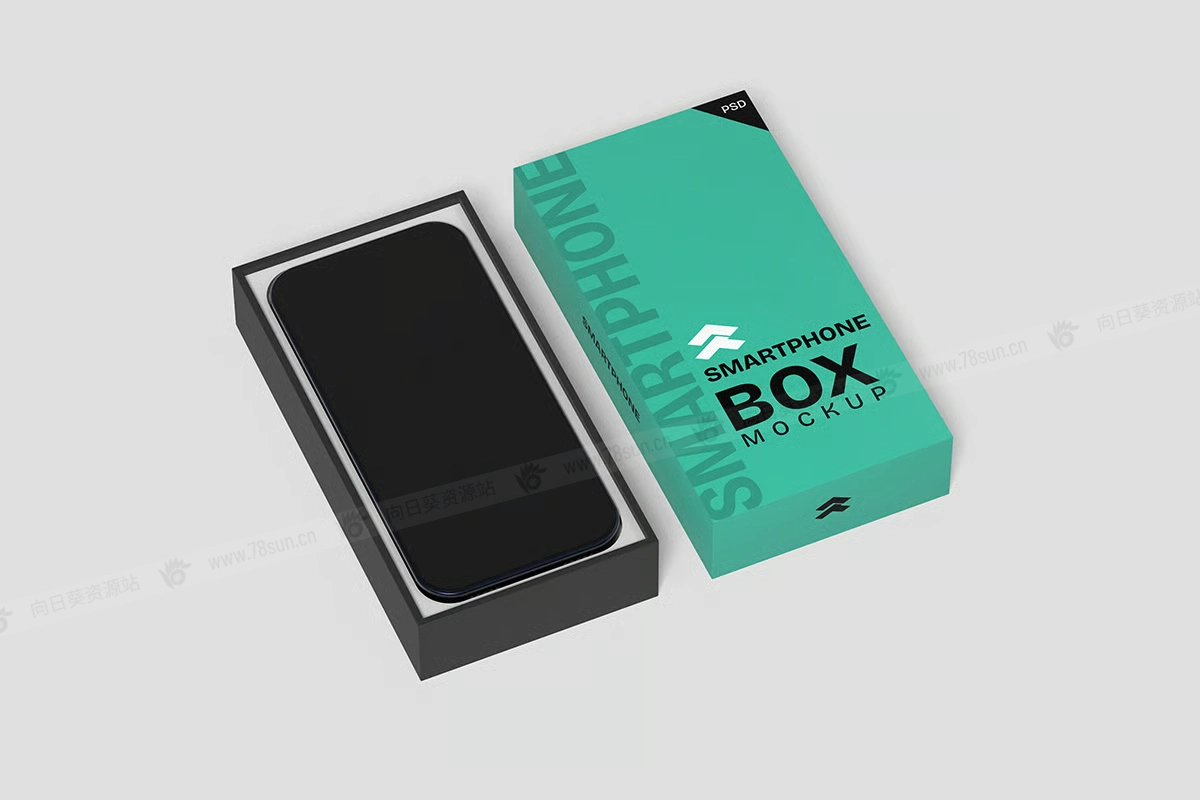 智能手机包装纸盒子品牌VI效果图展示智能贴图psd设计样机,