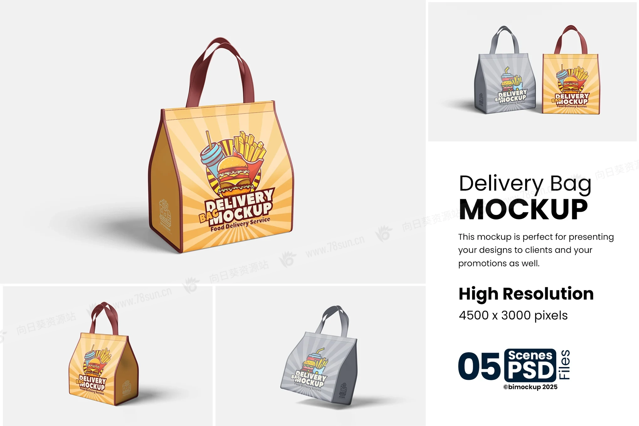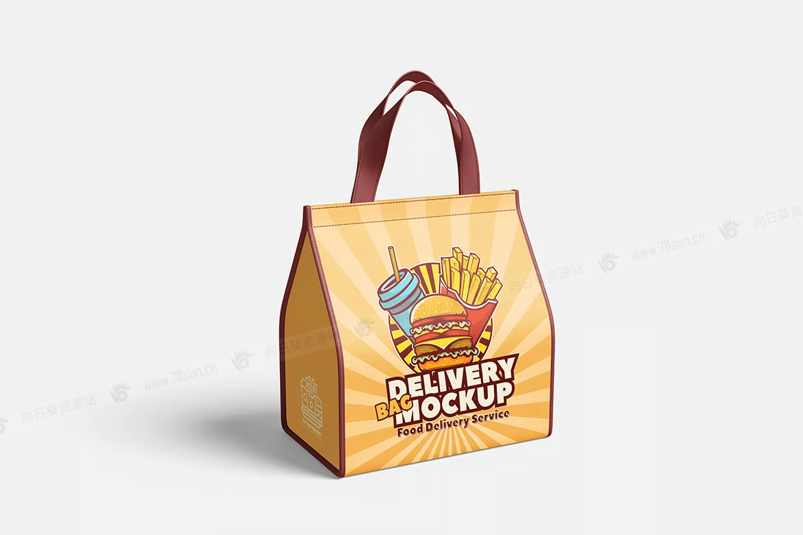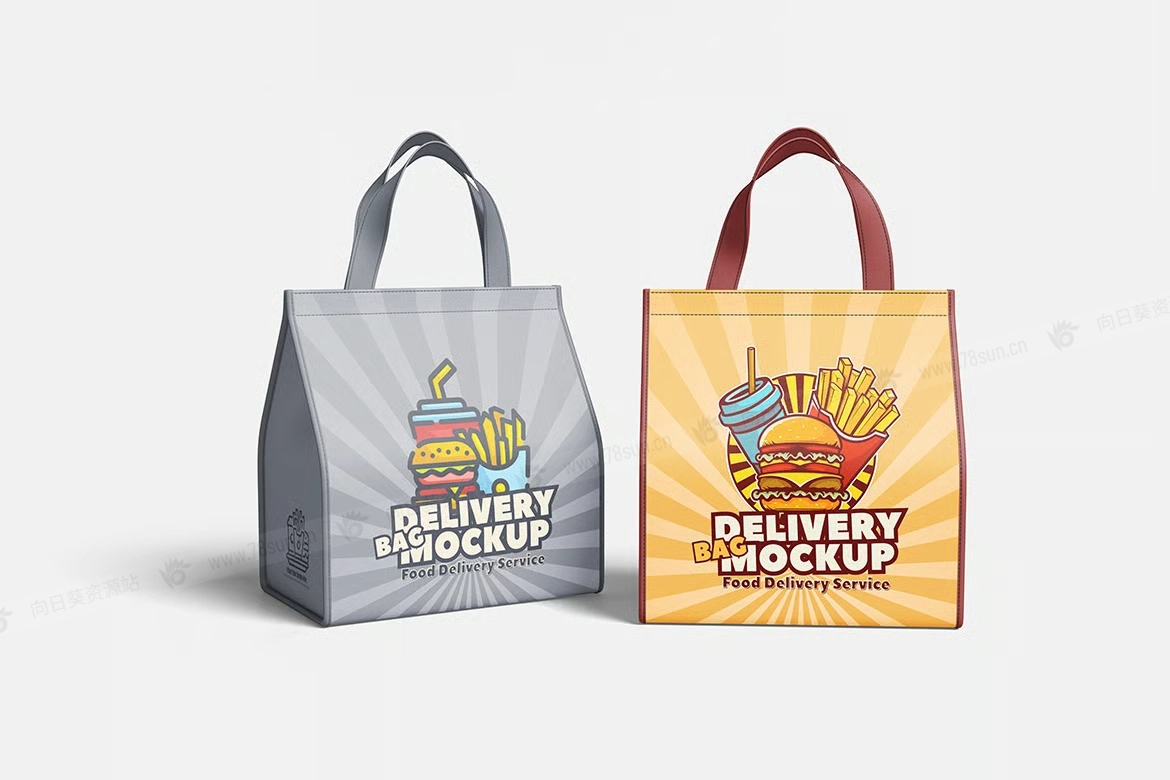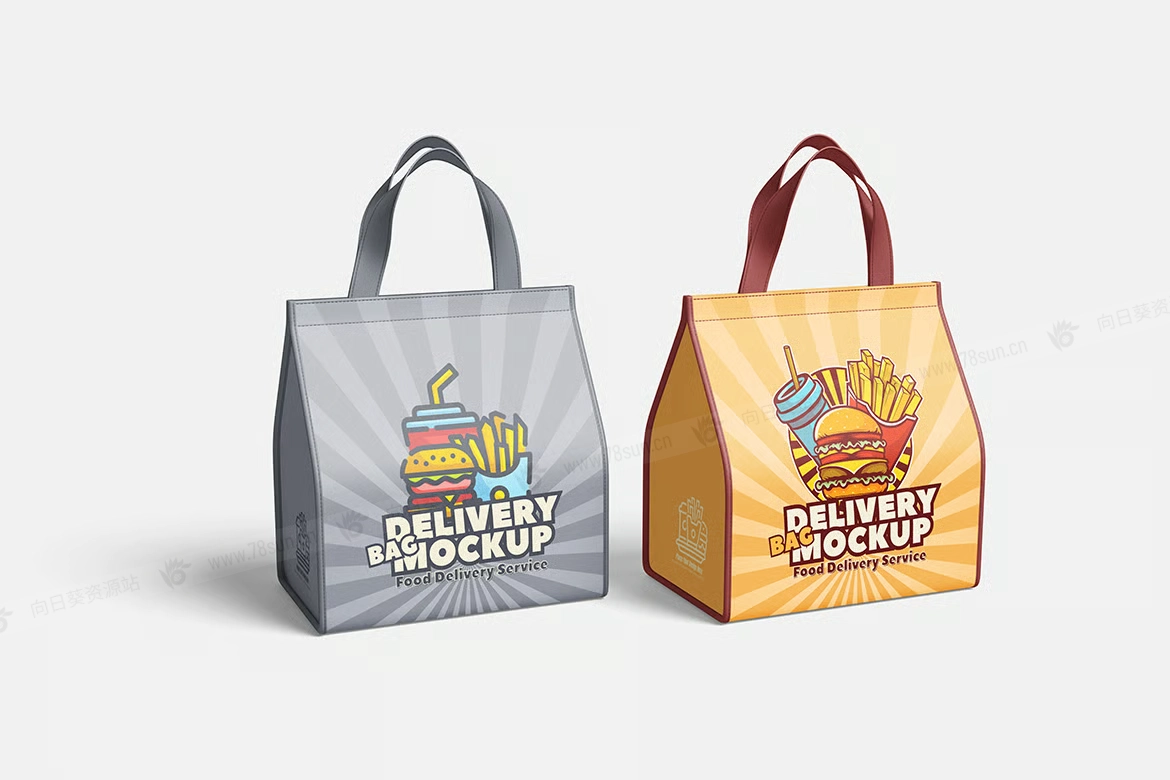 高品质外卖配送袋品牌VI效果图展示智能贴图psd设计样机。你可以用智能物体功能轻松快速地替换设计。提供PSD Photoshop格式,并具备智能对象功能,帮助你在几秒钟内用自己的设计替换现有设计。