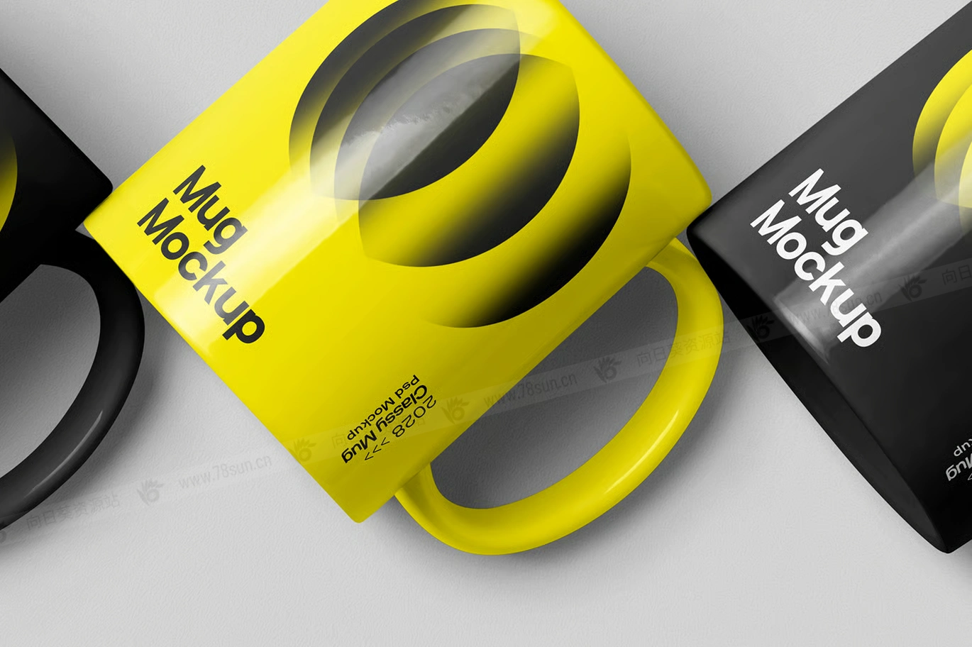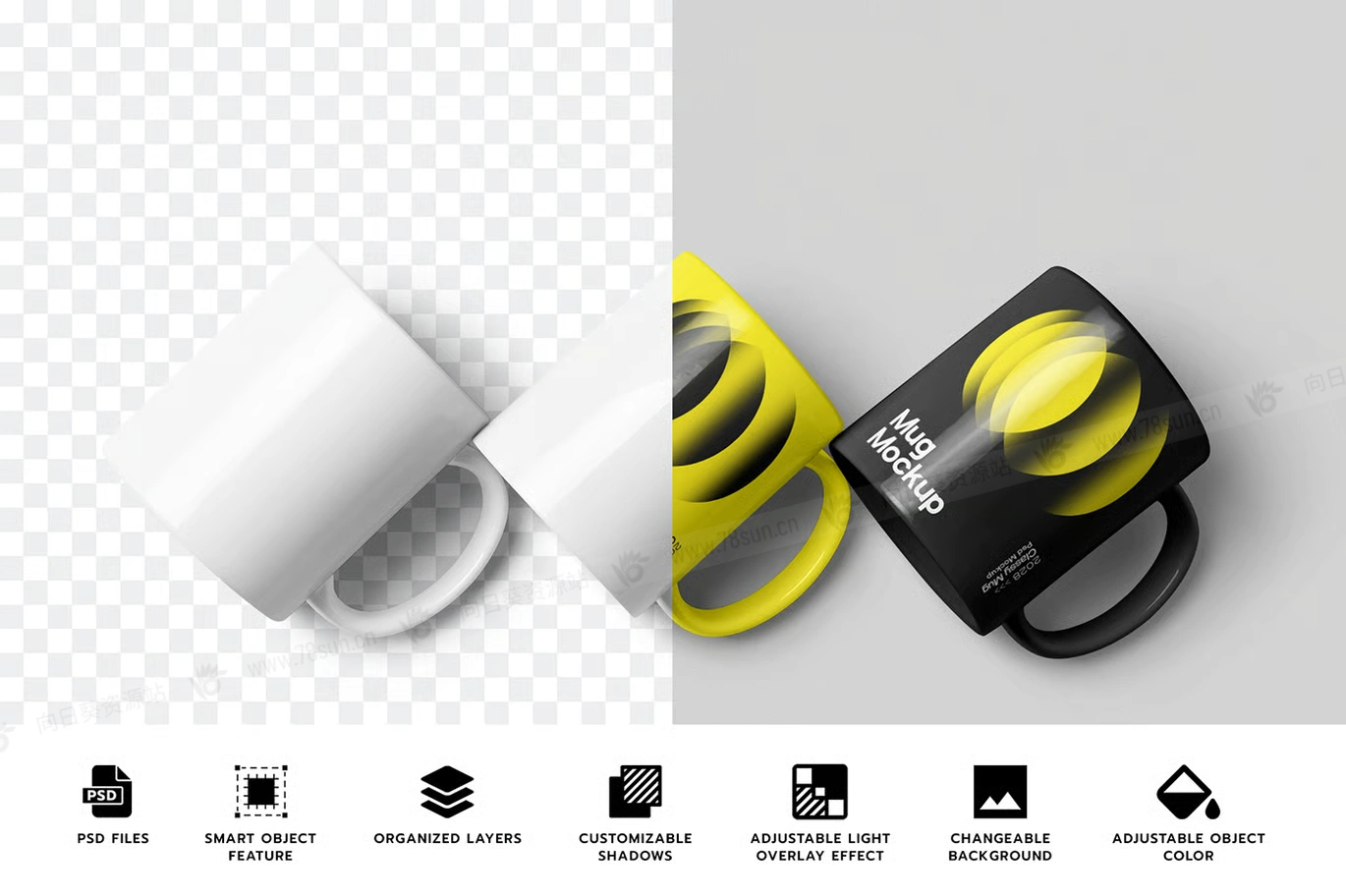 陶瓷马克杯品牌VI效果图展示智能贴图psd设计样机,