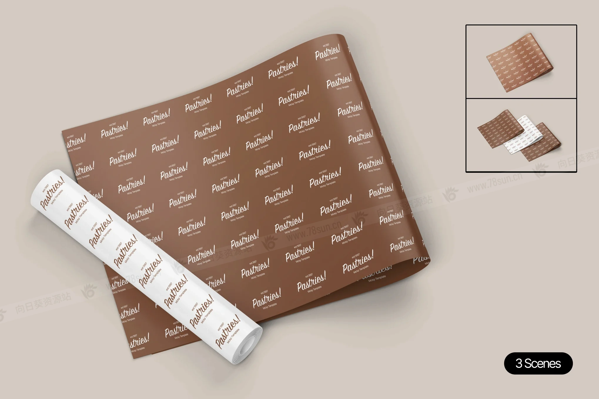 礼品包装纸品牌VI效果图展示智能贴图psd设计样机。只需轻点一下,你就能使用这个模板,分层良好,随时可用。