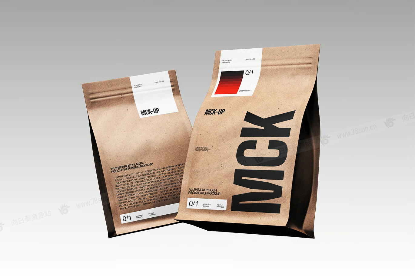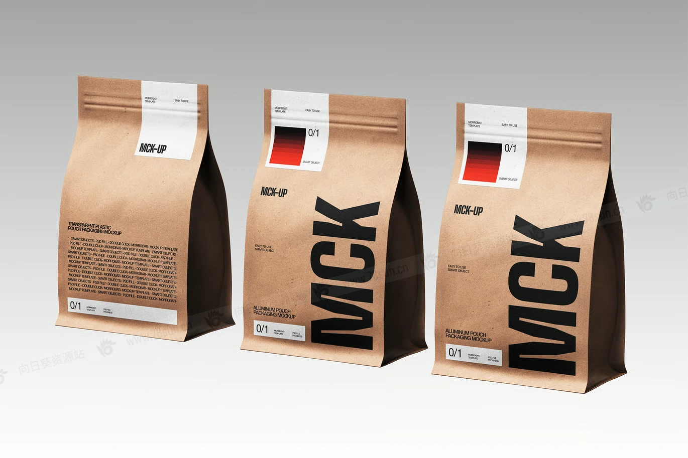 牛皮纸咖啡袋站立式拉链锁袋品牌VI效果图展示智能贴图psd设计样机。自定义颜色,用智能图层更新设计,就可以开始了。