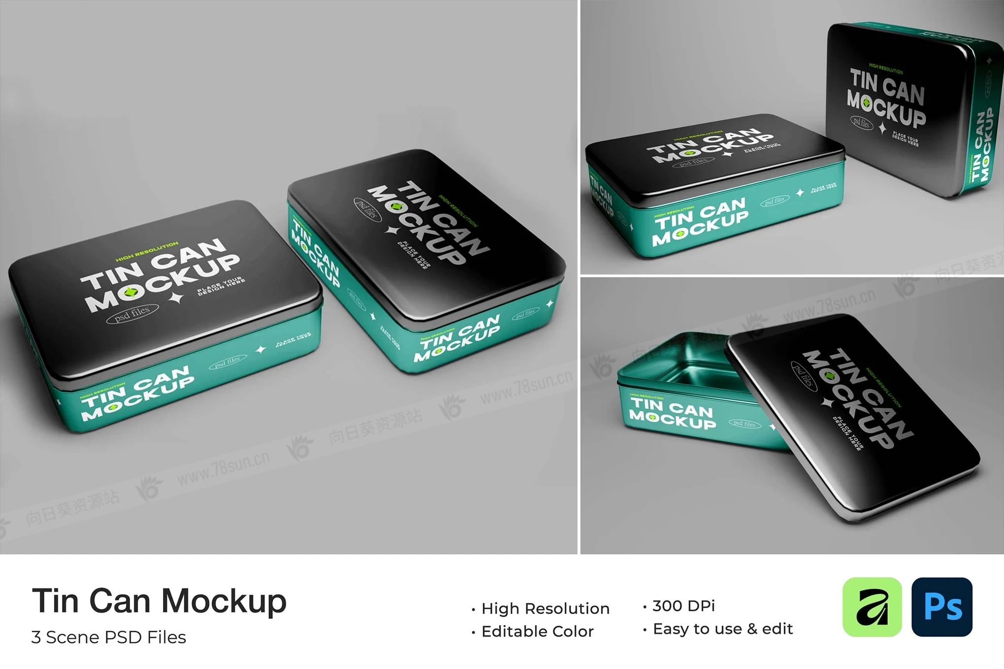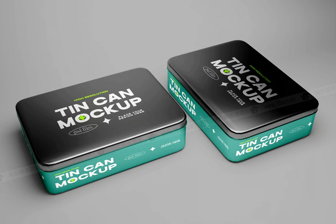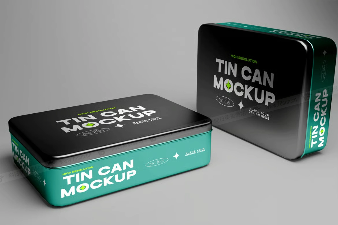 饼干零食锡罐品牌VI效果图展示智能贴图psd设计样机,