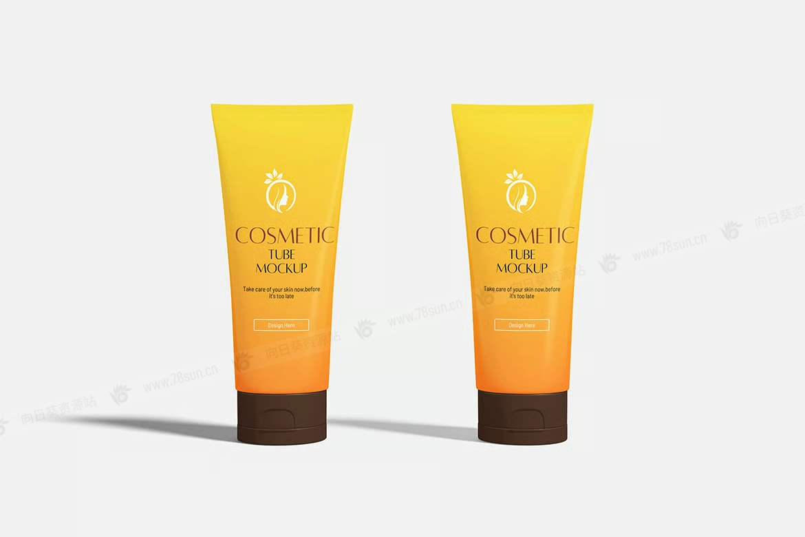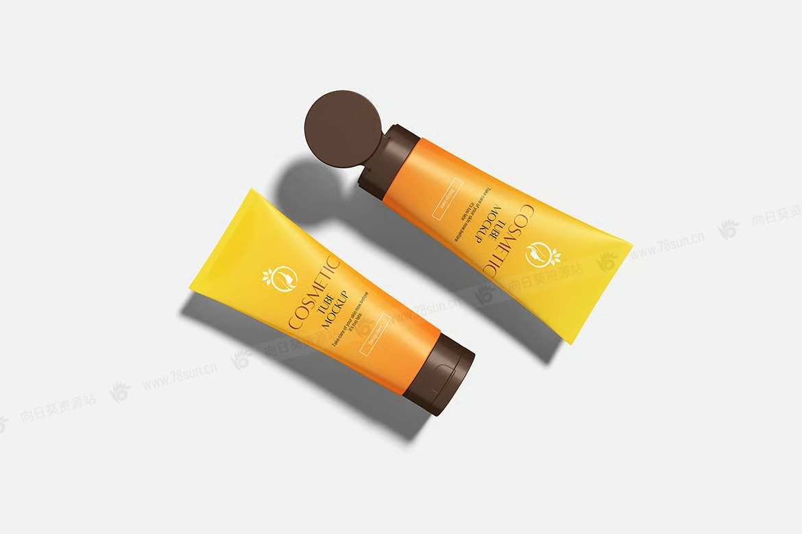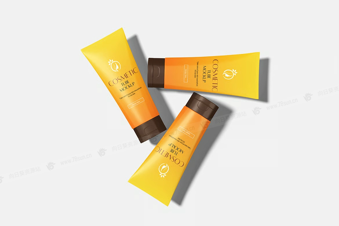 化妆品护手霜洗面奶软管品牌VI效果图展示智能贴图psd设计样机。你可以用智能物体功能轻松快速地替换设计。提供PSD Photoshop格式,并具备智能对象功能,帮助你在几秒钟内用自己的设计替换现有设计。