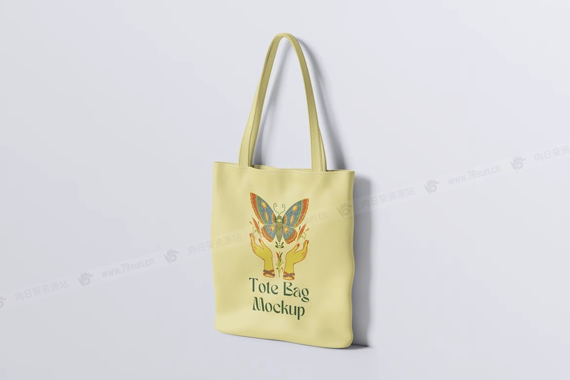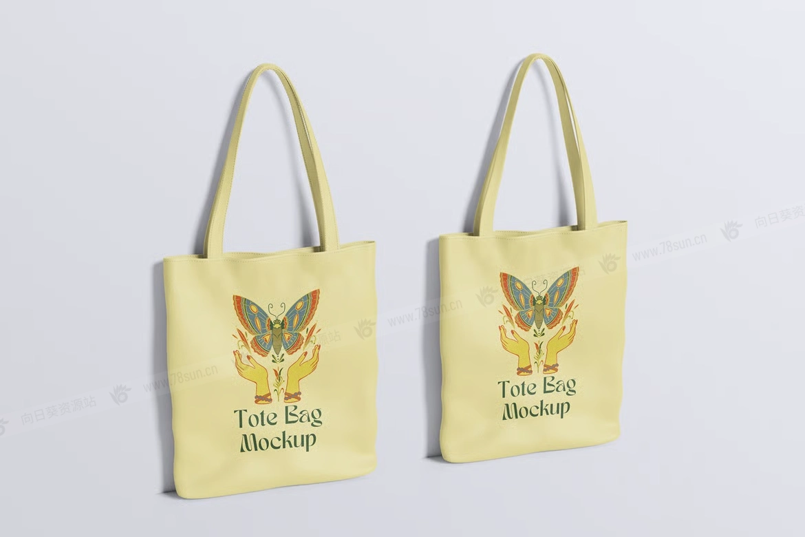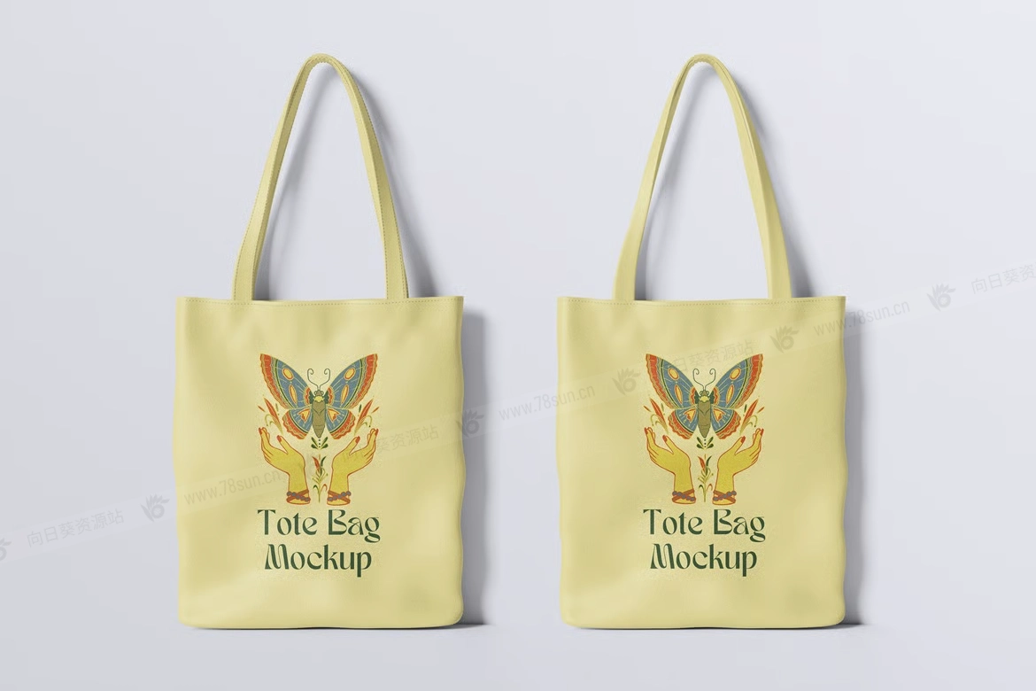 高品质手提袋购物袋品牌VI效果图展示智能贴图psd设计样机,这个模型包含4个带有分层良好的PSD文件,并且还采用了智能对象功能,这意味着你可以在几秒钟内轻松快速地用自己的设计替换当前设计。
