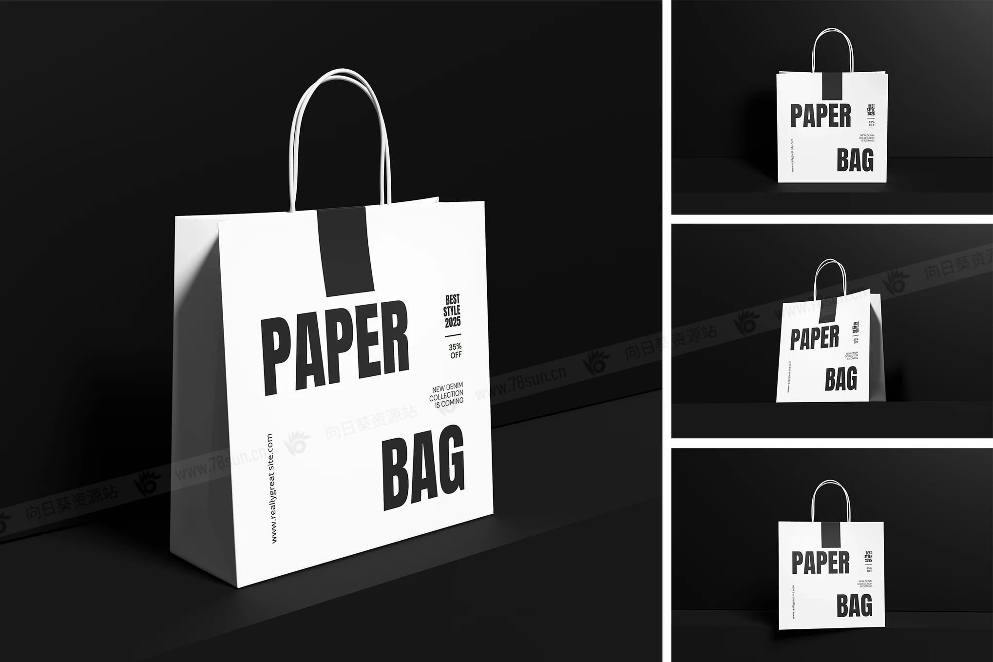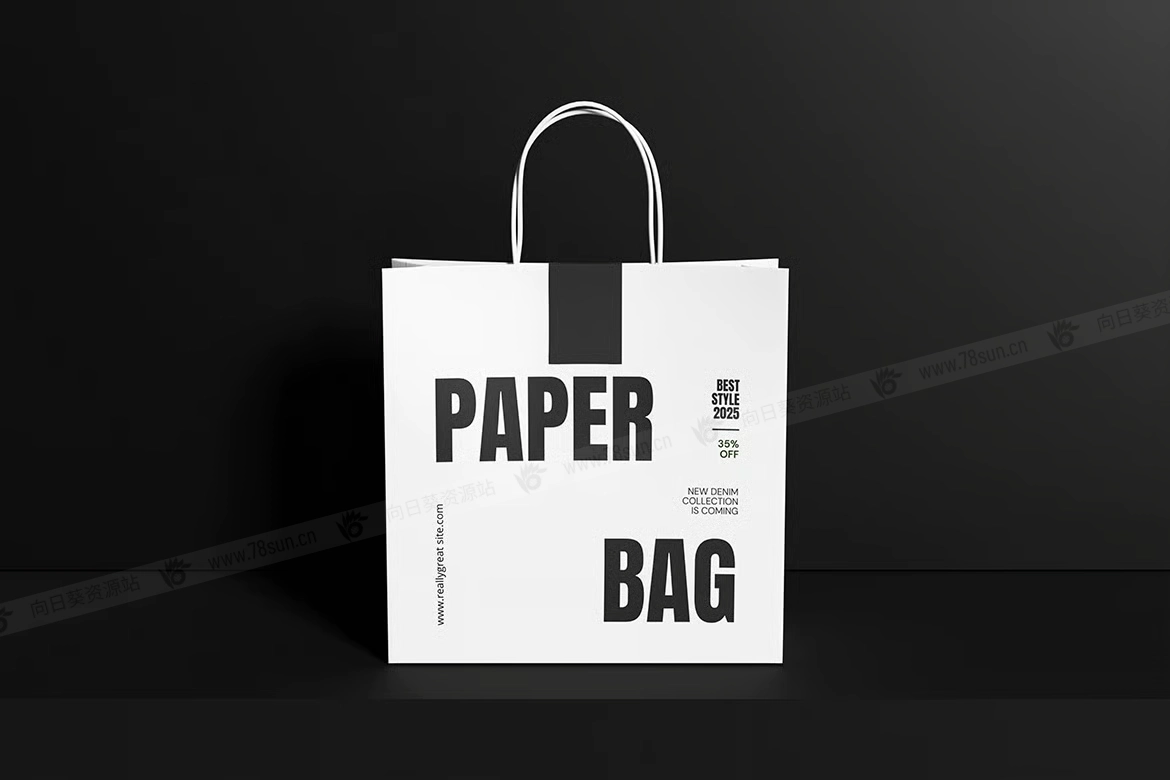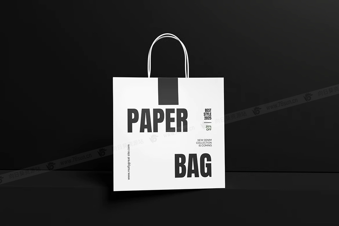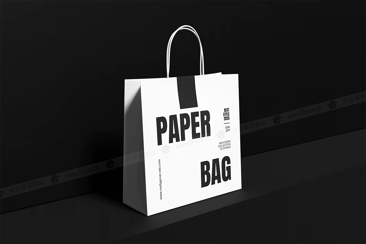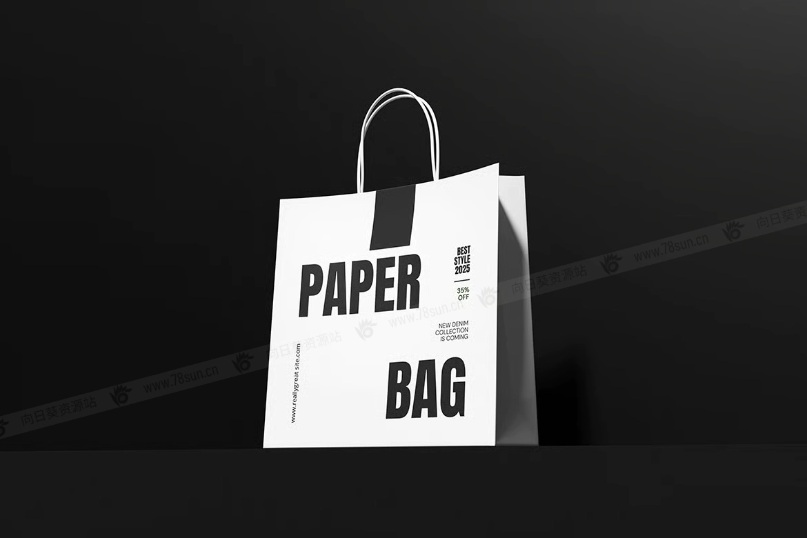 纸质手提袋购物袋品牌VI效果图展示智能贴图psd设计样机,这个模型包含4个带有分层良好的PSD文件,并且还采用了智能对象功能,这意味着你可以在几秒钟内轻松快速地用自己的设计替换当前设计。