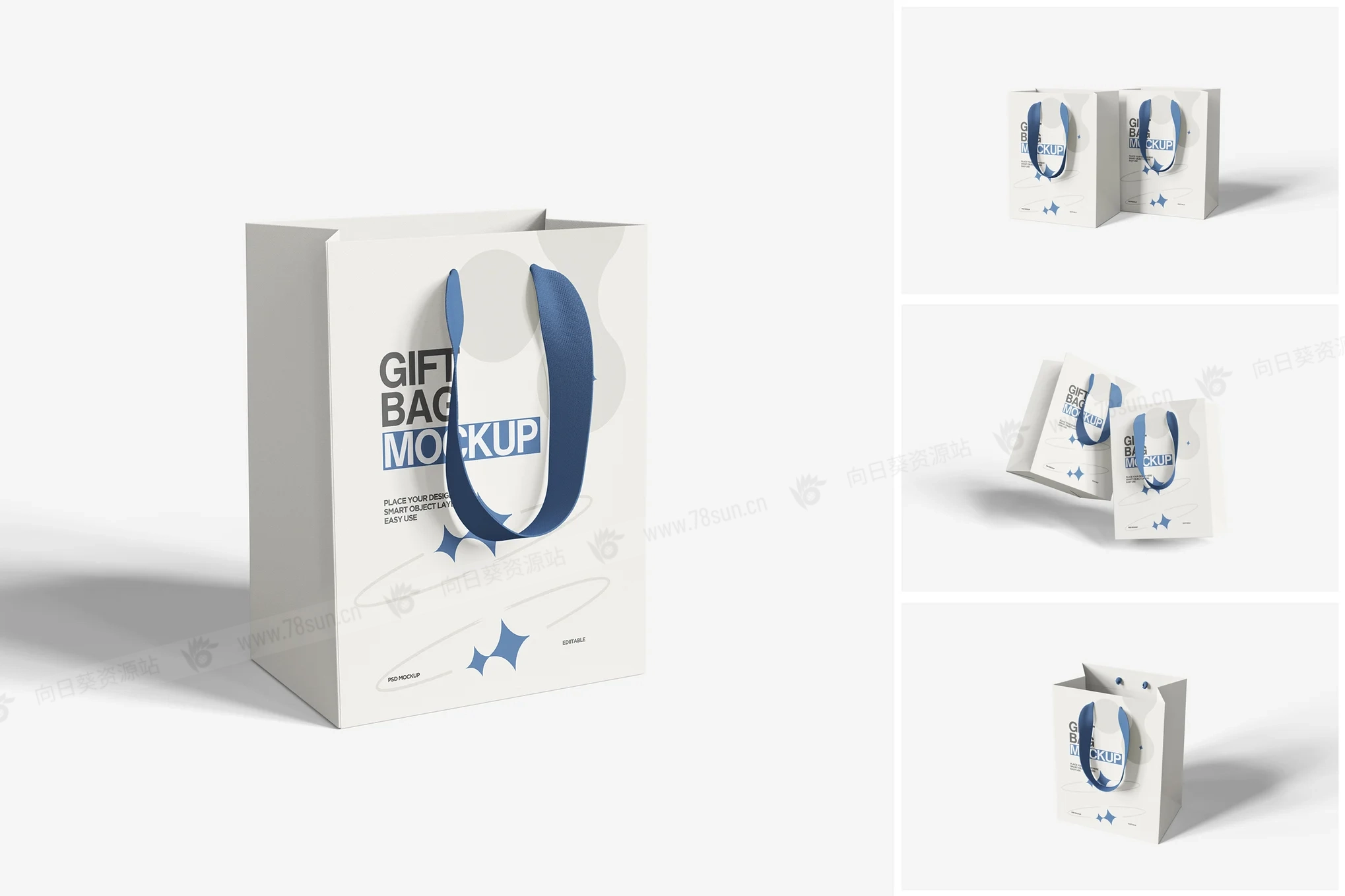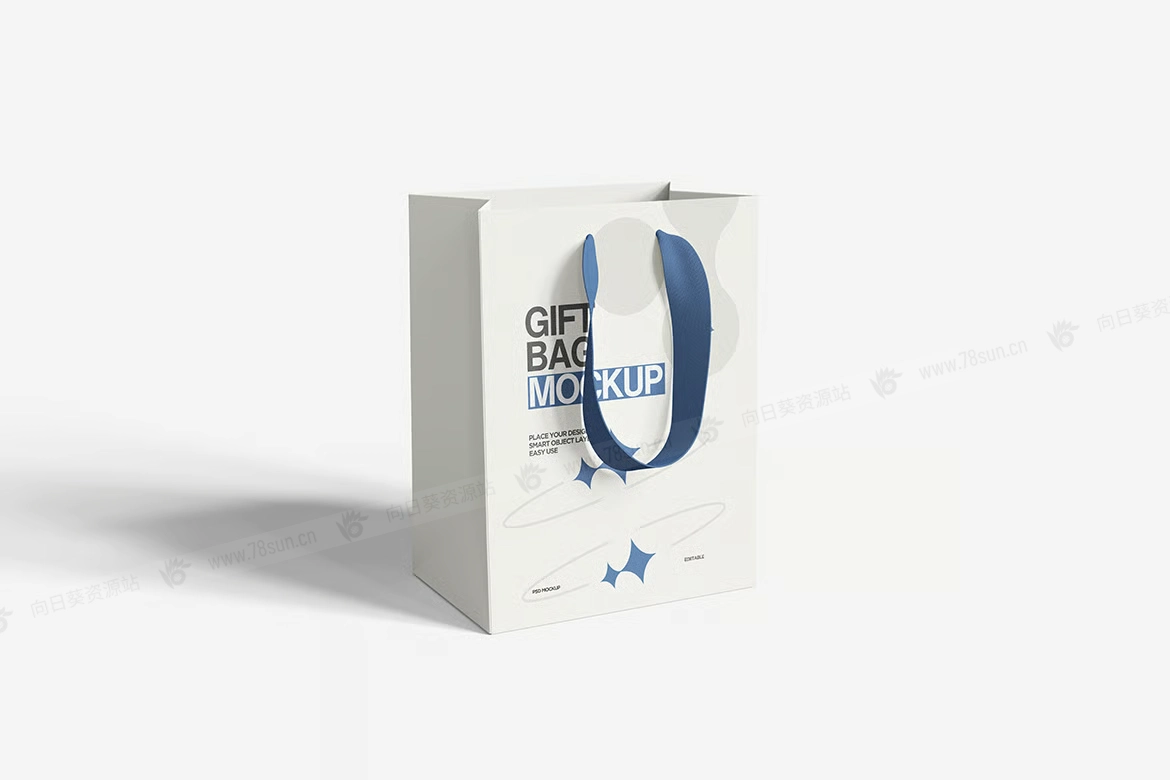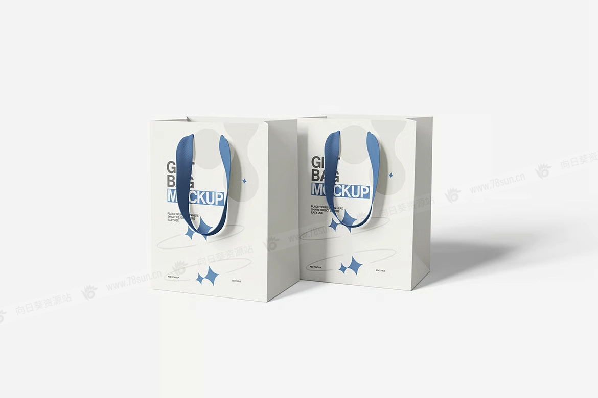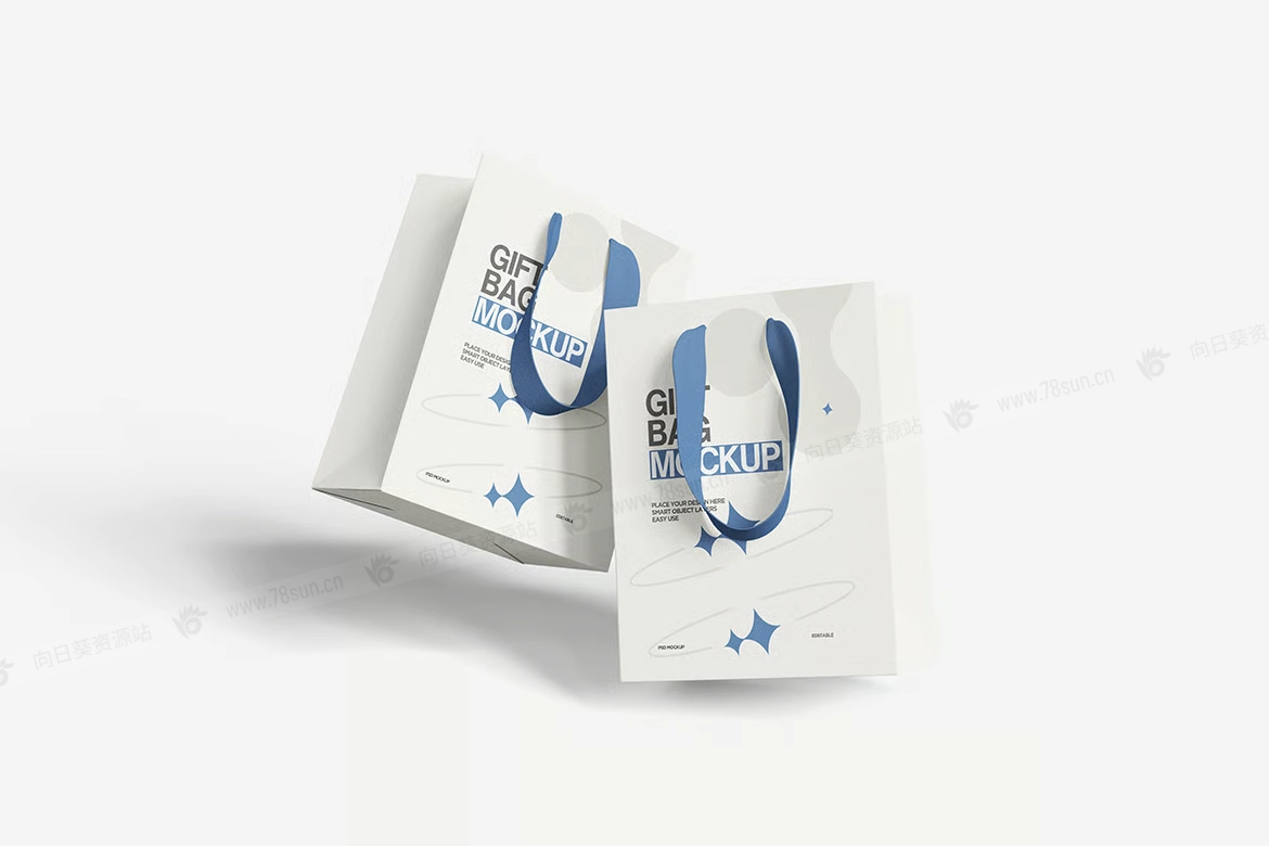 纸质手提袋购物袋品牌VI效果图展示智能贴图psd设计样机。用智能对象轻松替换你的设计,双击智能图层,复制粘贴你的艺术作品,保存完毕!
