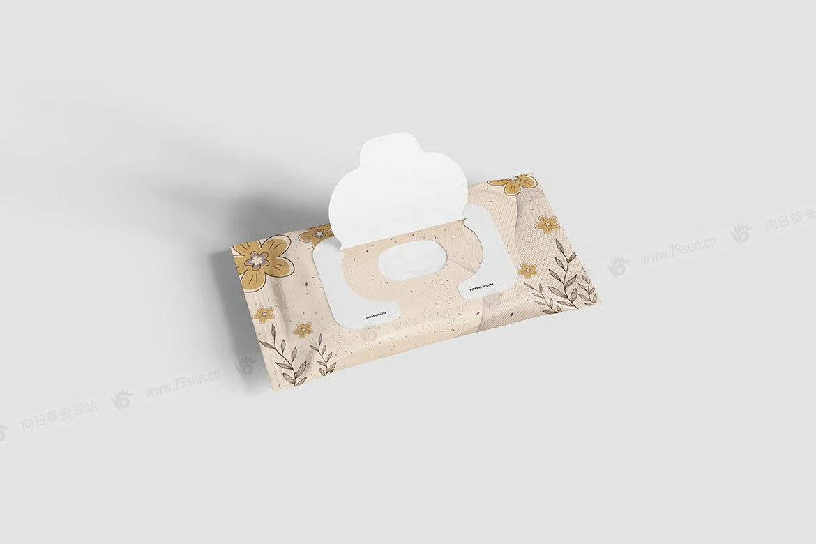 湿巾纸包装品牌VI效果图展示智能贴图psd设计样机。你可以用智能物体功能轻松快速地替换设计。提供PSD Photoshop格式,并具备智能对象功能,帮助你在几秒钟内用自己的设计替换现有设计。