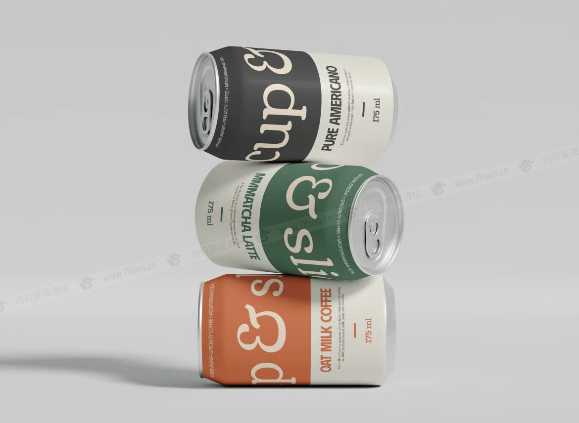 汽水饮料易拉罐头品牌VI效果图展示智能贴图psd设计样机,