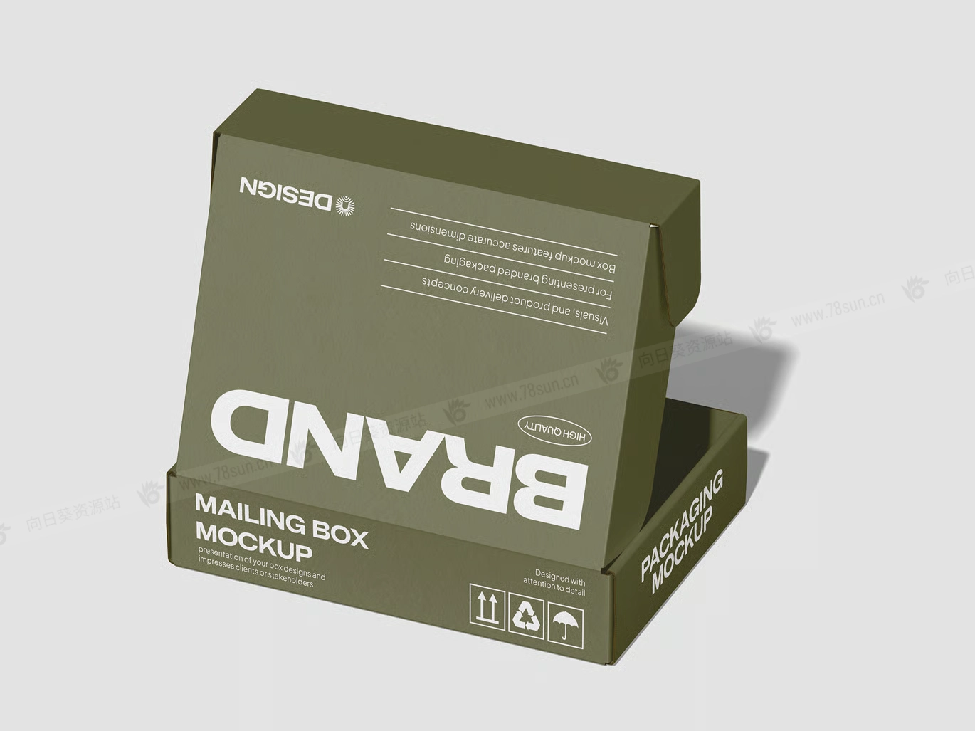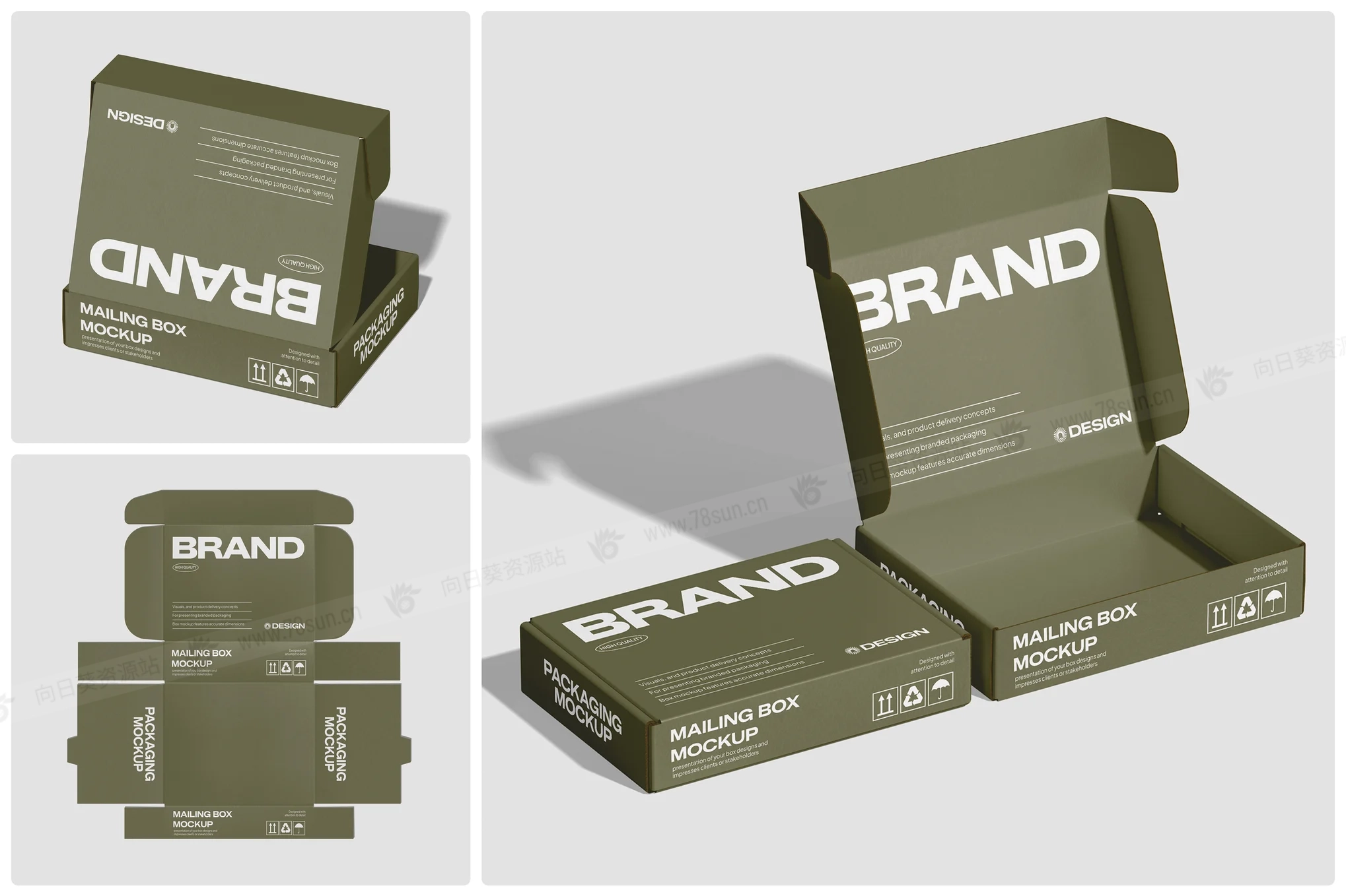 • 逼真的纸板纹理、阴影和高光