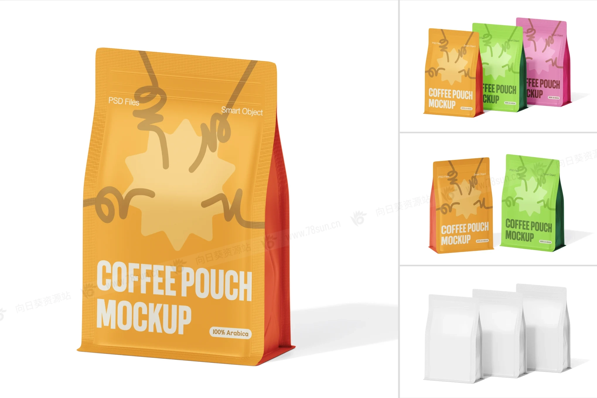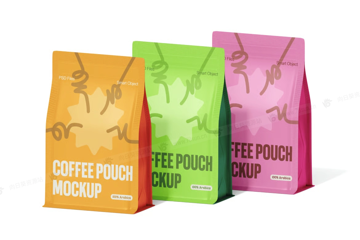 站立式拉链锁袋品牌VI效果图展示智能贴图psd设计样机,包含3个高质量的PSD模型