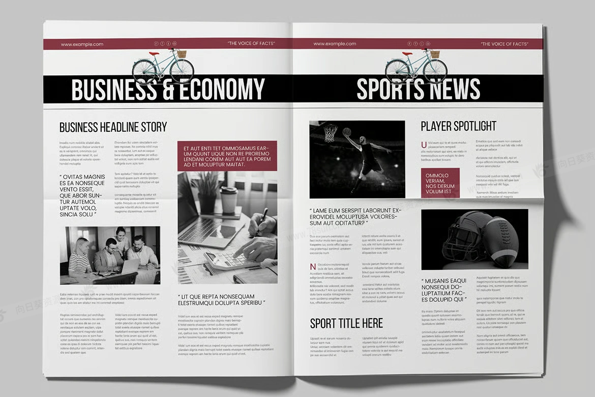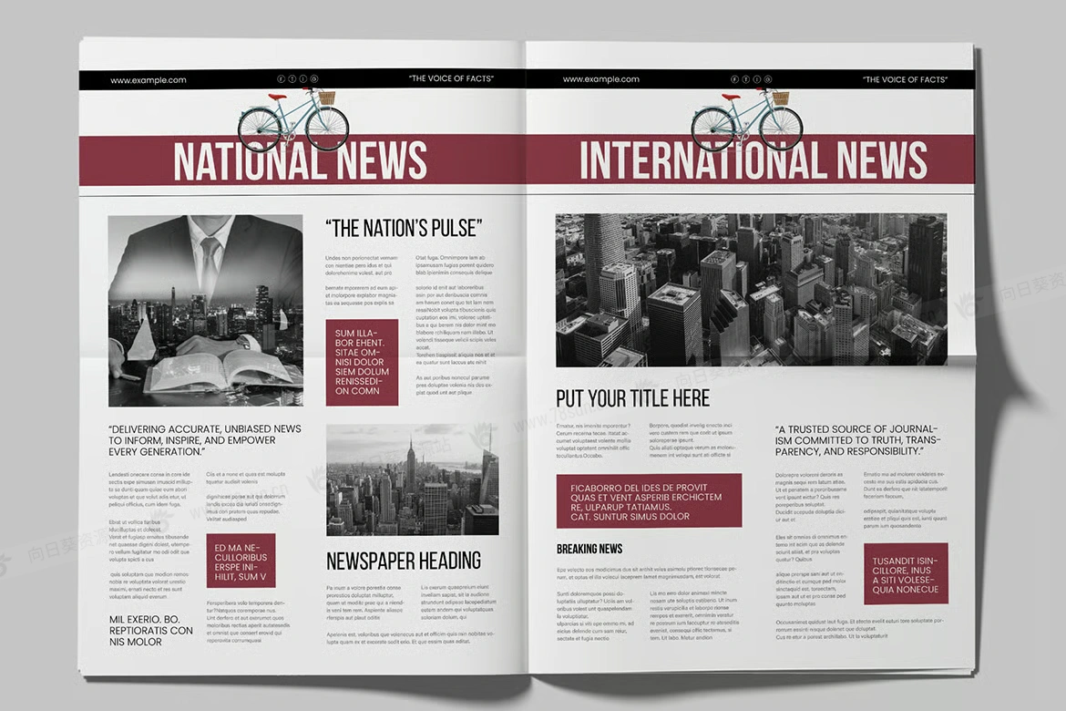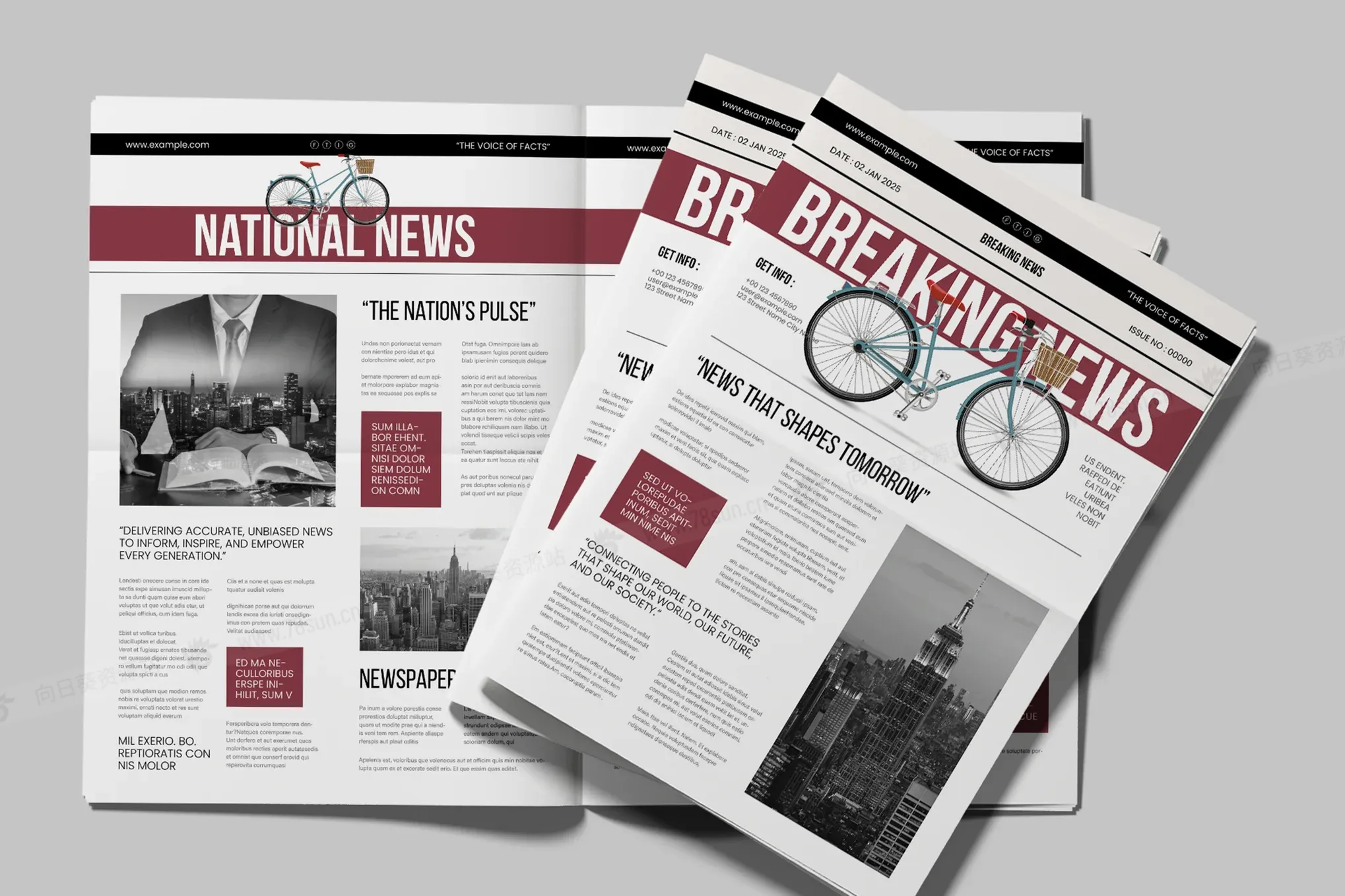 商务新闻报纸公告宣传时事通讯杂志画册indd设计模板。它采用经典的栏目网格、强劲的标题和均衡的排版,高效组织文章、图片和广告。该模板非常适合每日或每周出版物,确保专业的呈现、便捷导航和一致的视觉层级,便于印刷发行。