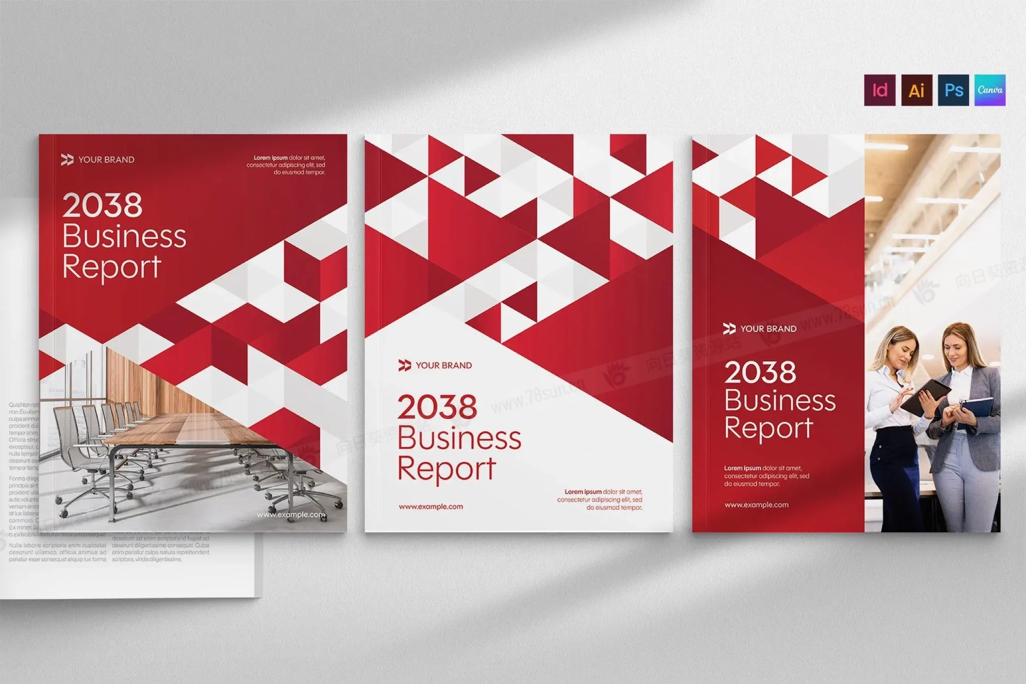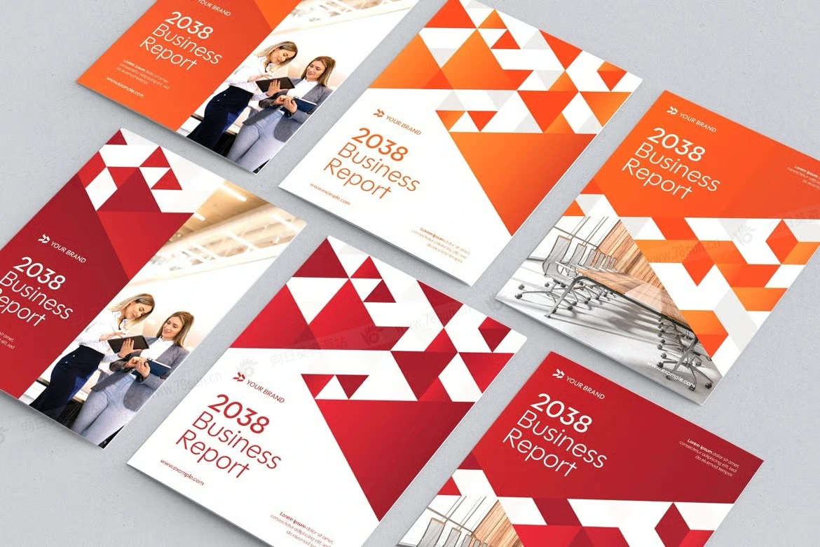 几何图形小册子杂志宣传册画册海报封面psd ai indd设计模板——一款现代且富有创意的企业报告、公司简介、传单和海报首页封面设计。支持Canva、Illustrator AI、InDesign IDML/INDD、Photoshop PSD和矢量EPS。