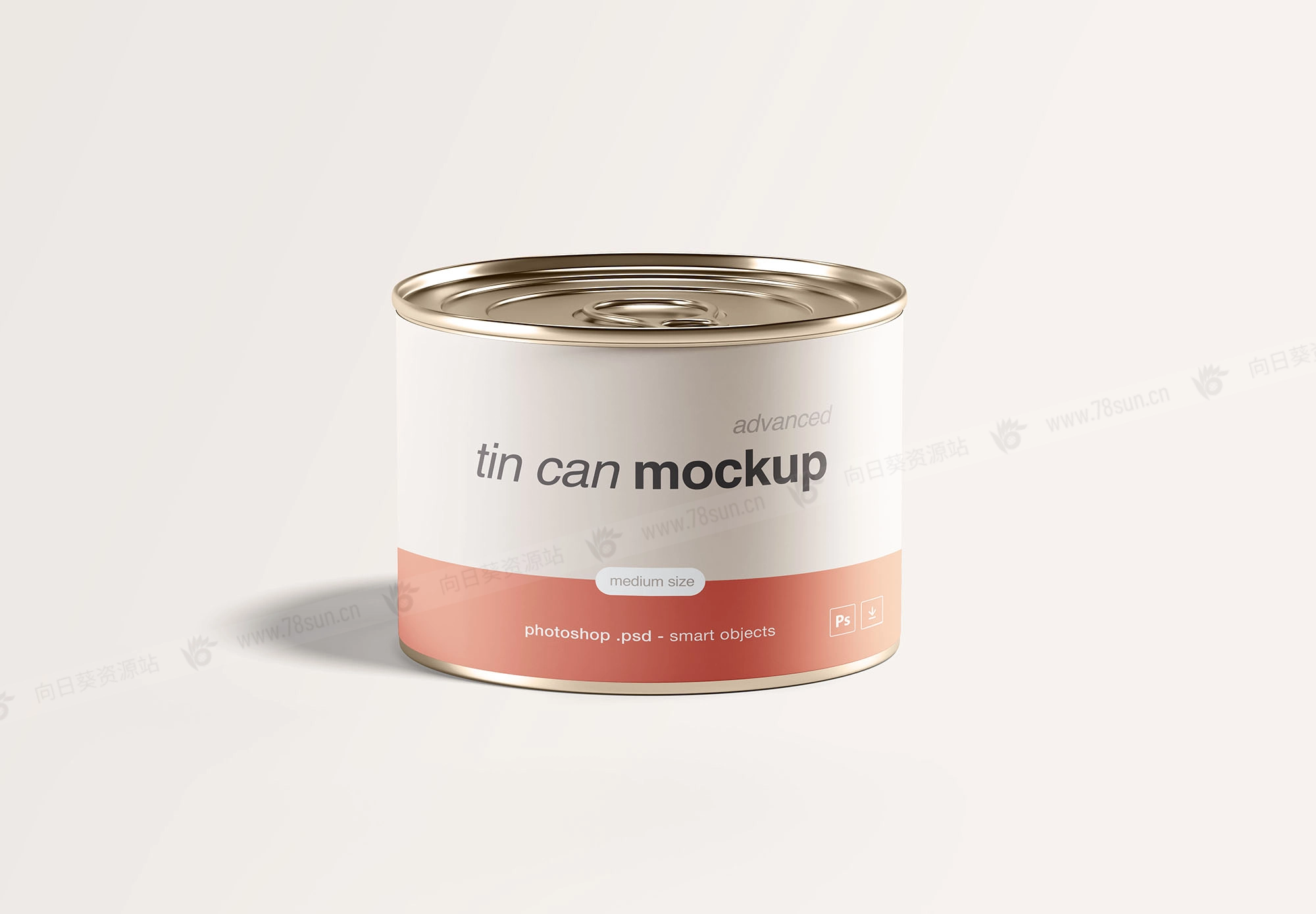 一个中号铁罐是我们今天的模型模板。一个PSD Photoshop文件,可以通过智能对象图层轻松自定义。通过这个图形,你可以控制标签设计、铁罐金属颜色、背景光、背景填充,以及前光、高光和反射。