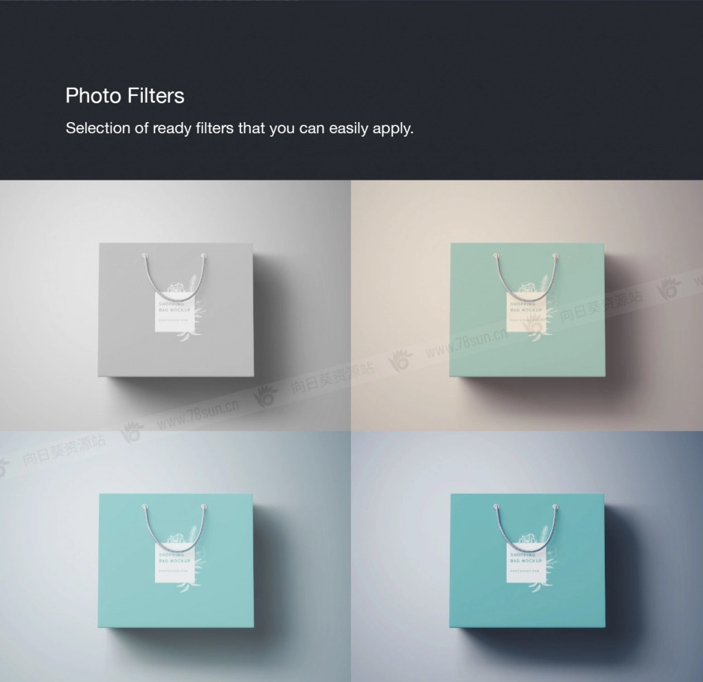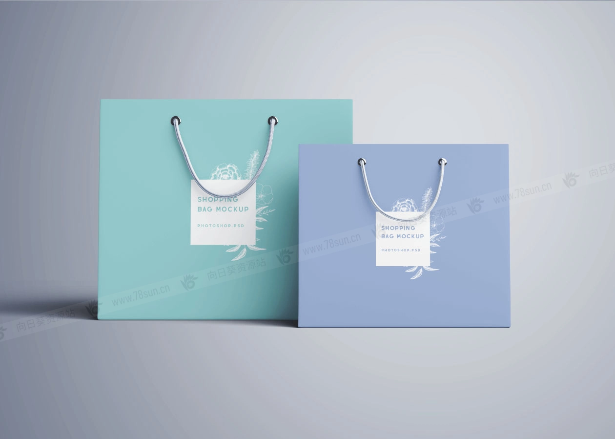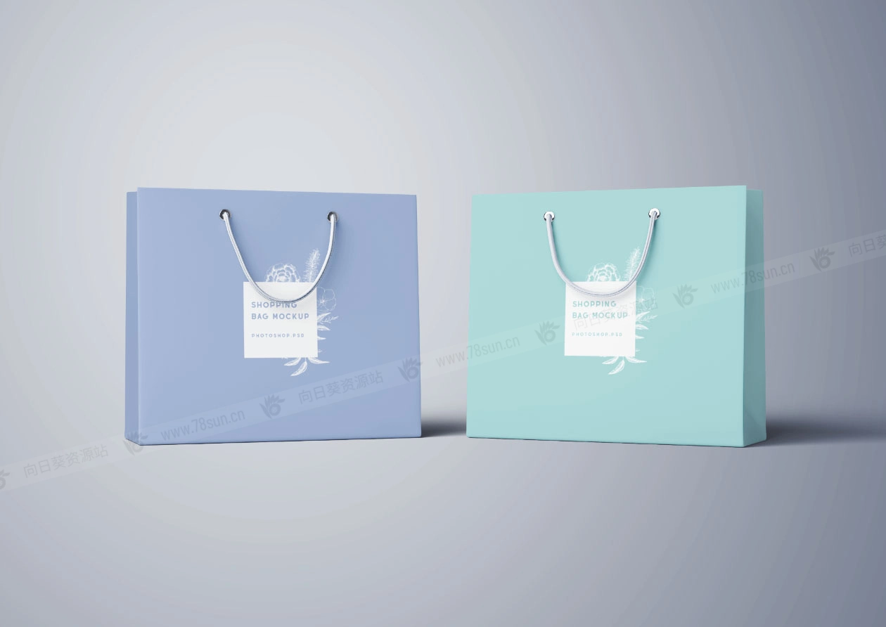 7个Photoshop购物袋样模板;多角度和透视视角,为你所有的展示需求提供多样的设计选择。